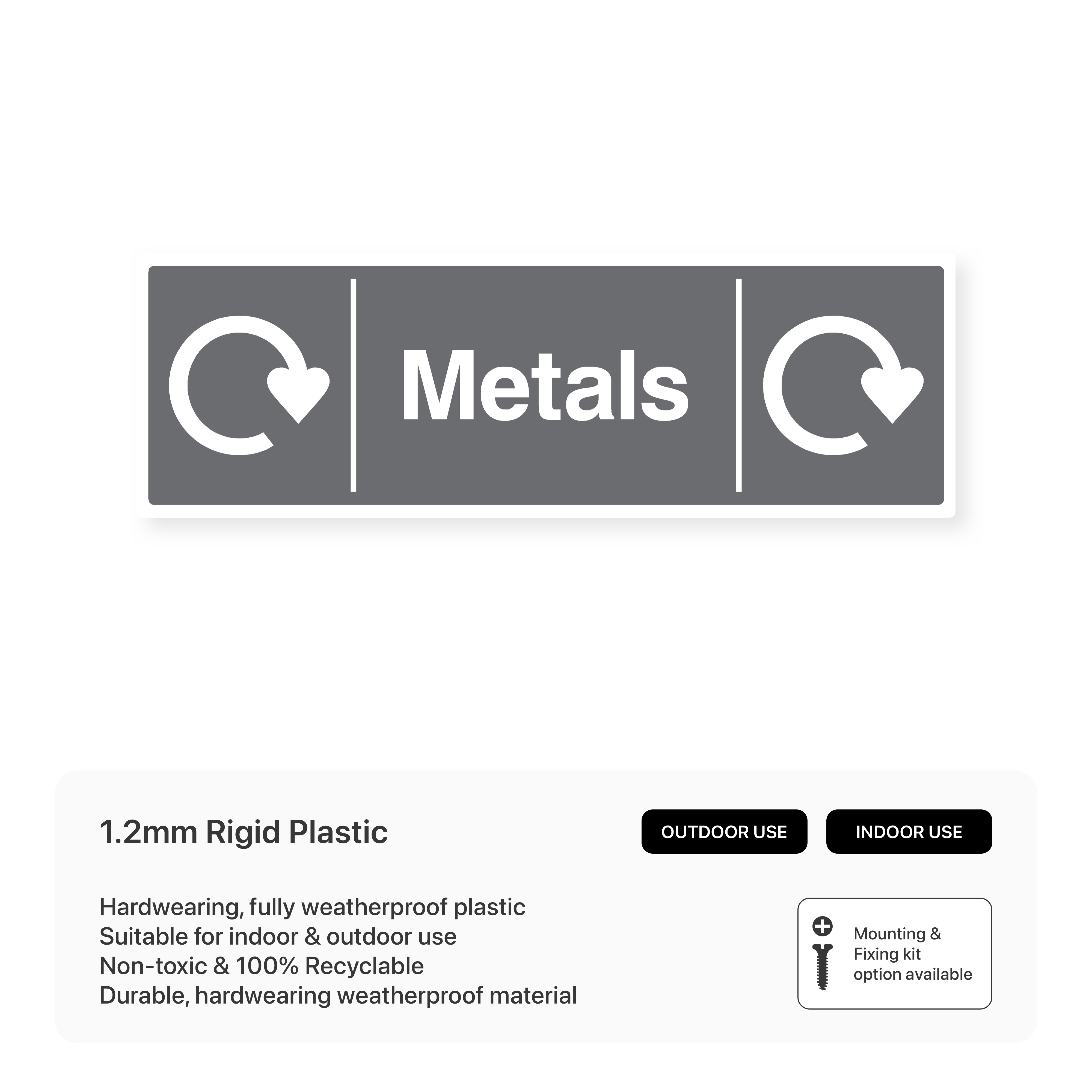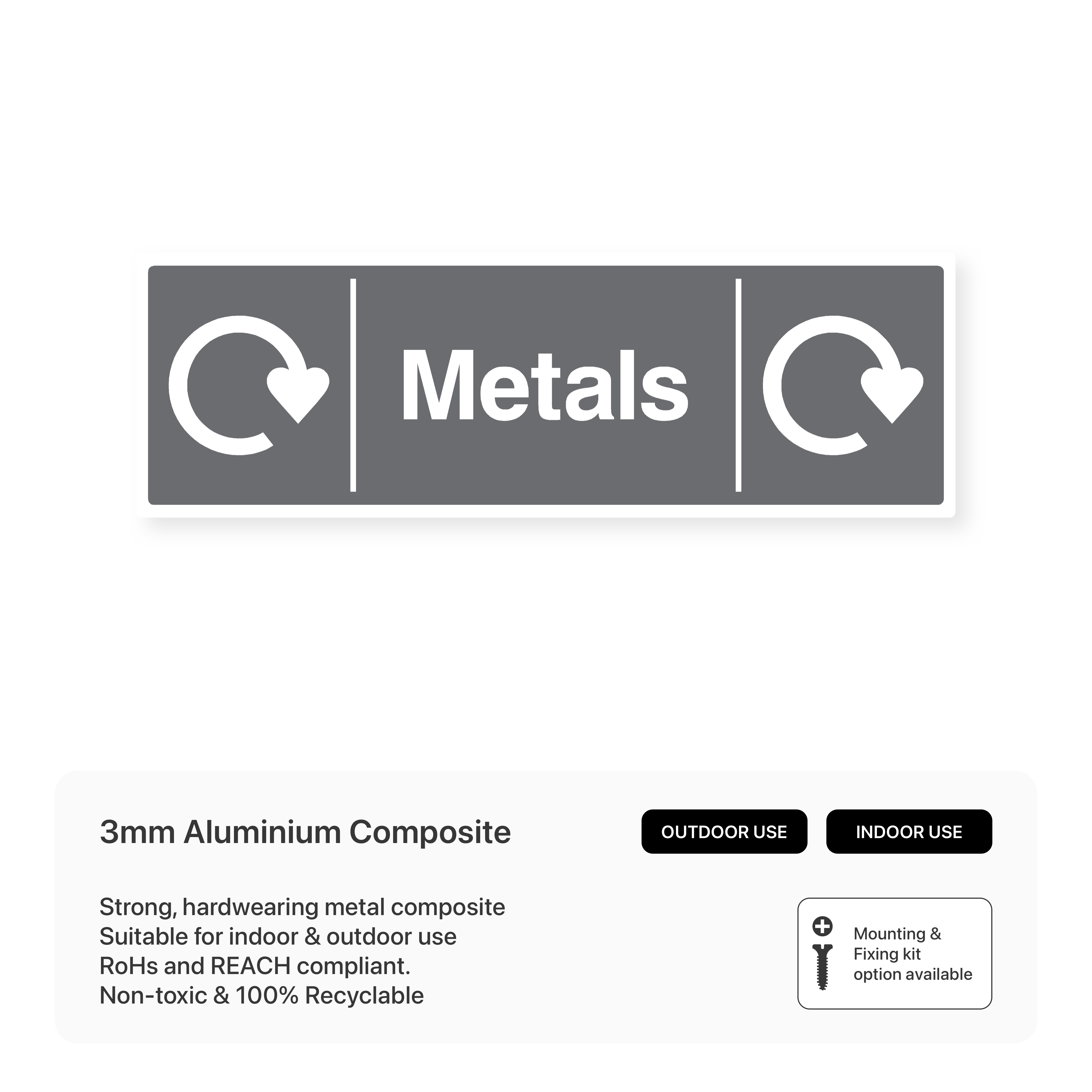 Metals - Recycling: Encourage recycling of metals with this informative sign. Help reduce waste and conserve resources by directing metals to the correct recycling bins.