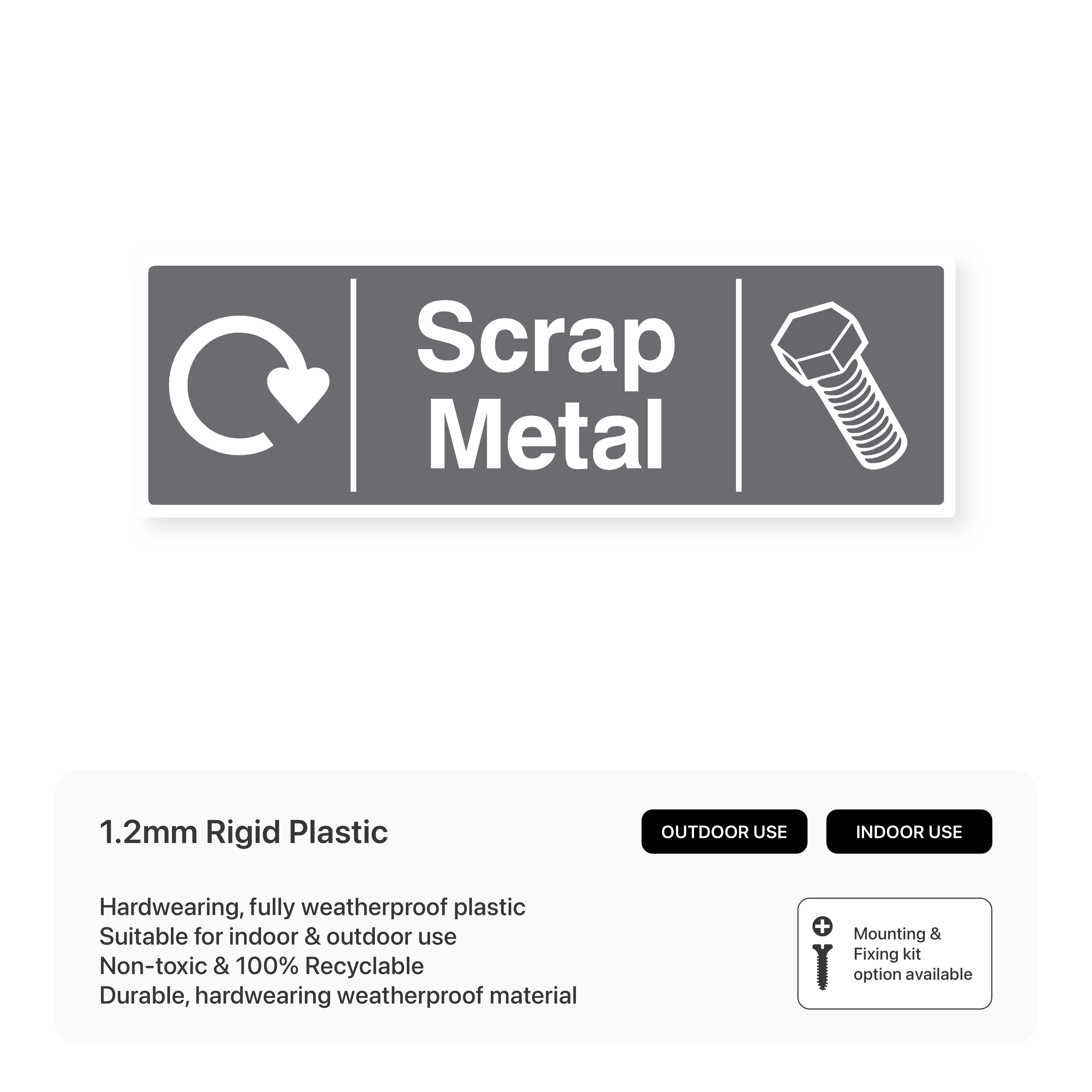 Scrap Metal - Recycling: Encourage recycling of scrap metal with this informative sign. Help reduce waste and conserve resources by directing scrap metal to designated recycling points or collection bins.