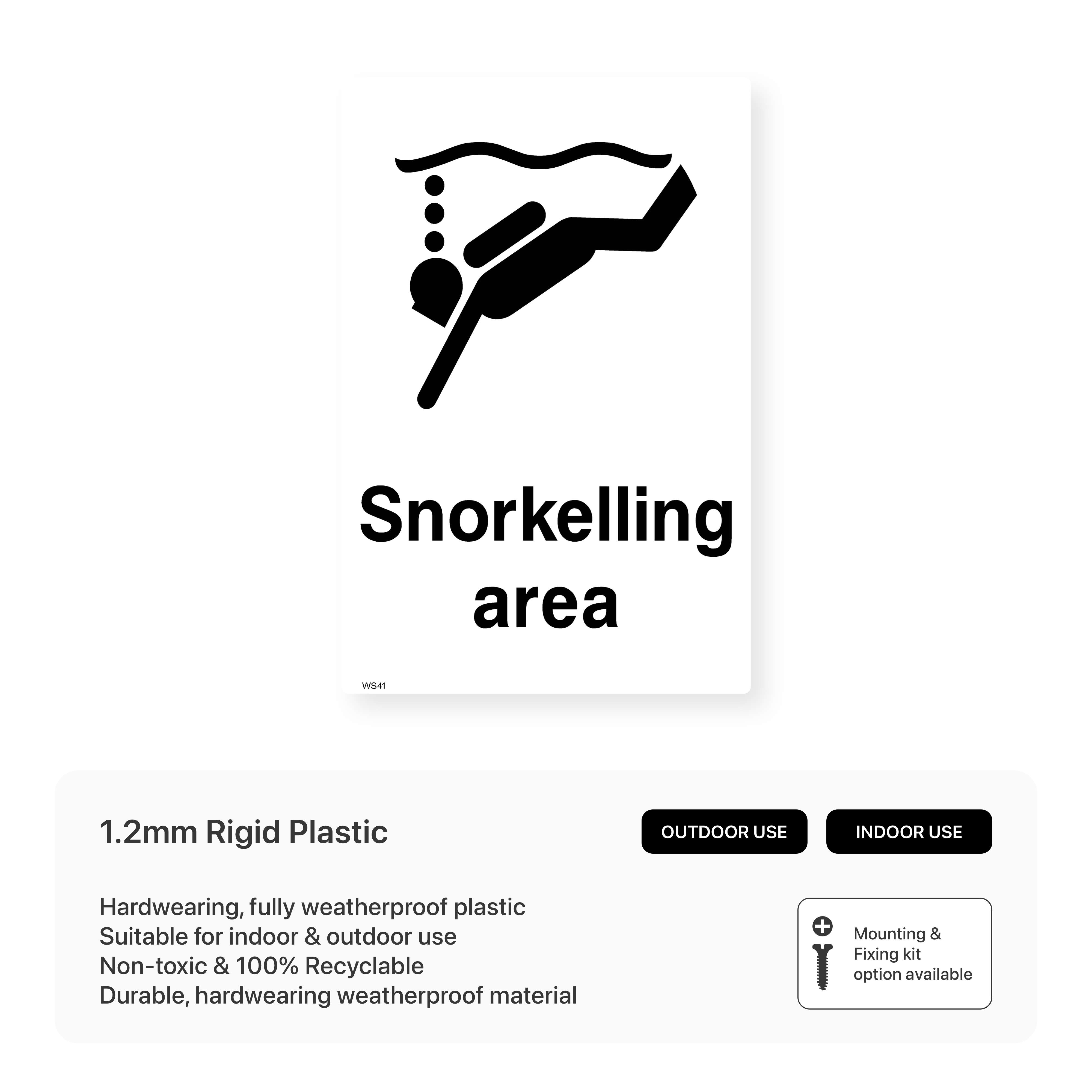 Clearly mark snorkelling zones and promote safety with our "Snorkelling Area" sign. Alerts other water users to the presence of snorkelers, reducing the risk of accidents. Available in various sizes to suit different beaches and coastal areas.