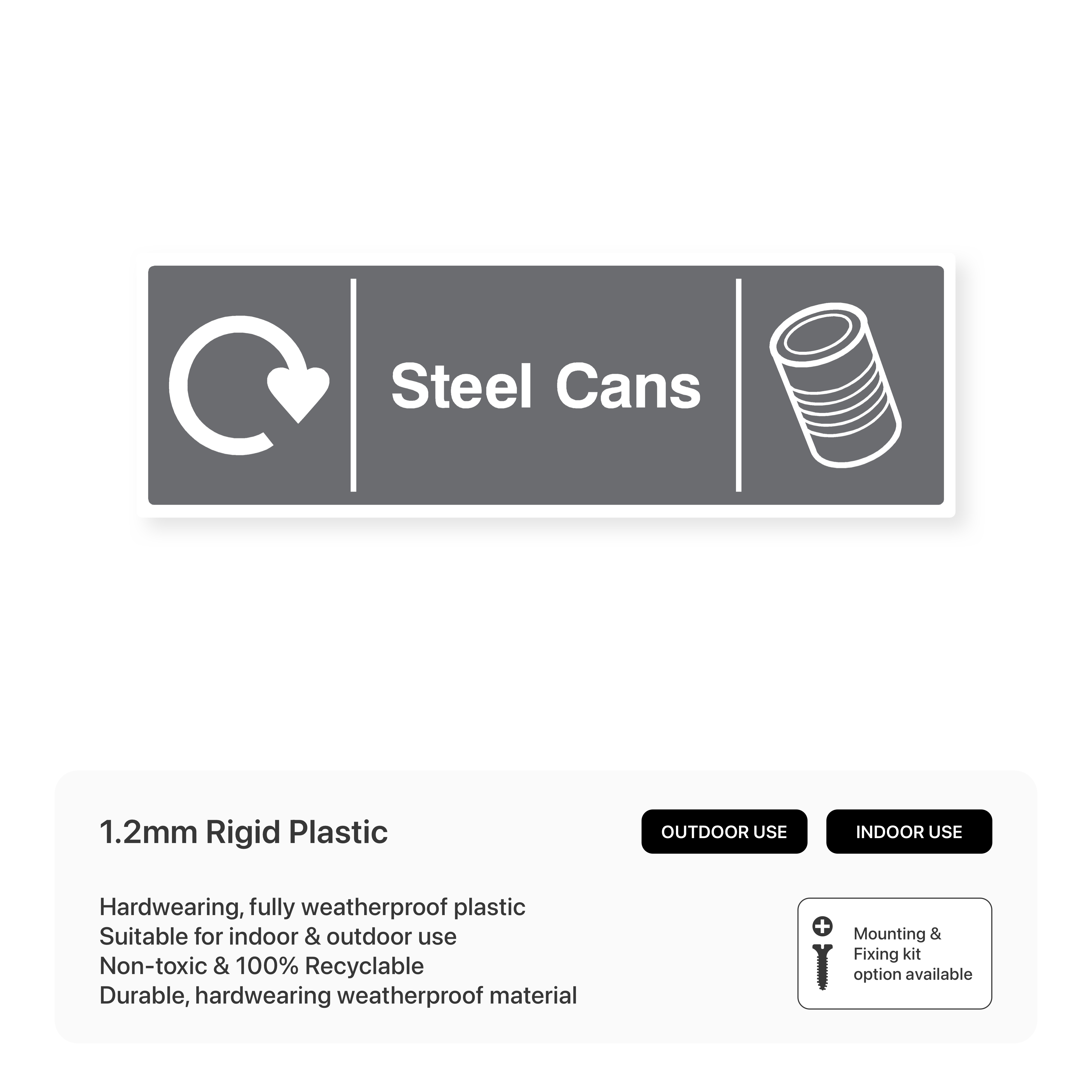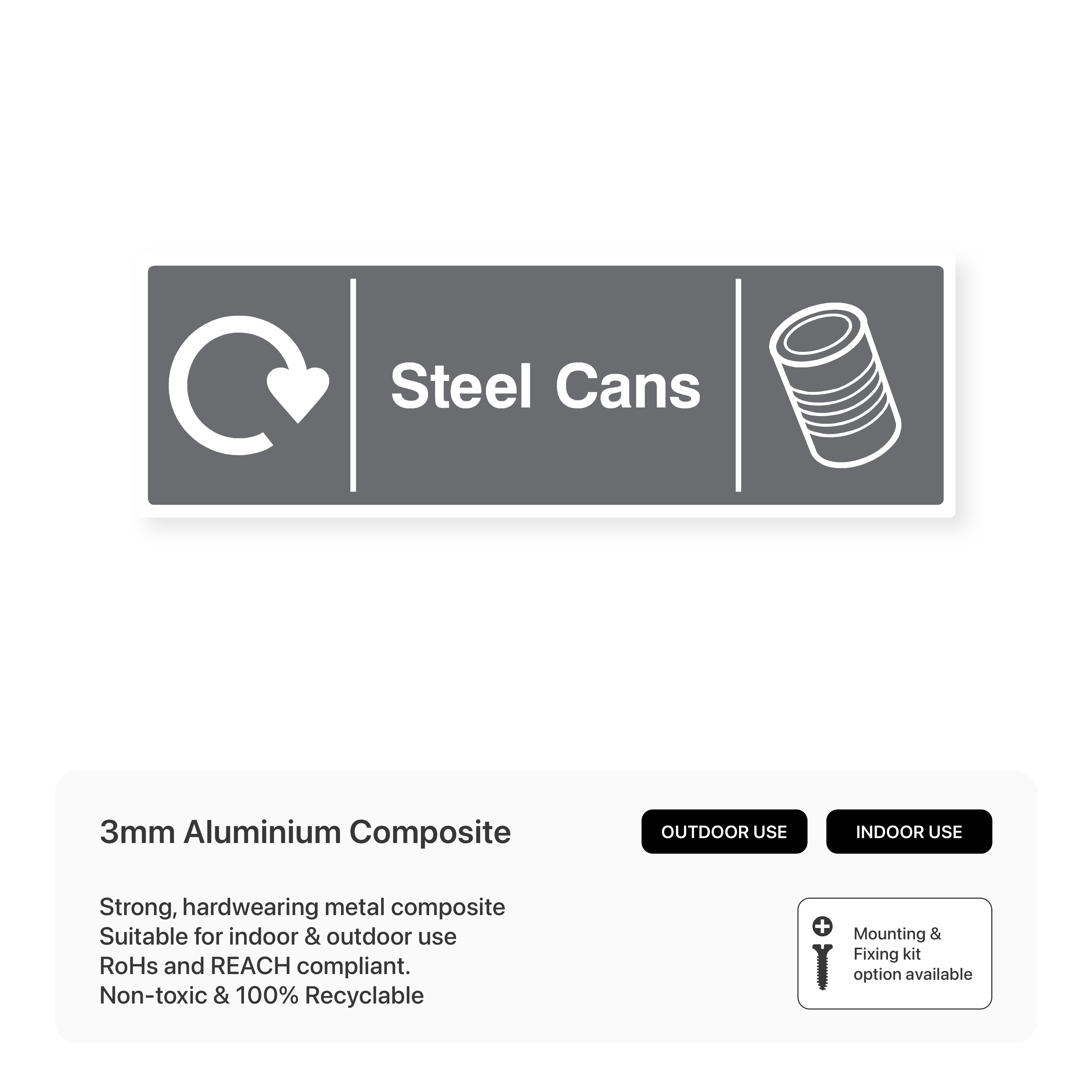Steel Cans - Recycling: Encourage recycling of steel cans with this informative sign. Help reduce waste and conserve resources by directing steel cans to the correct recycling bins.