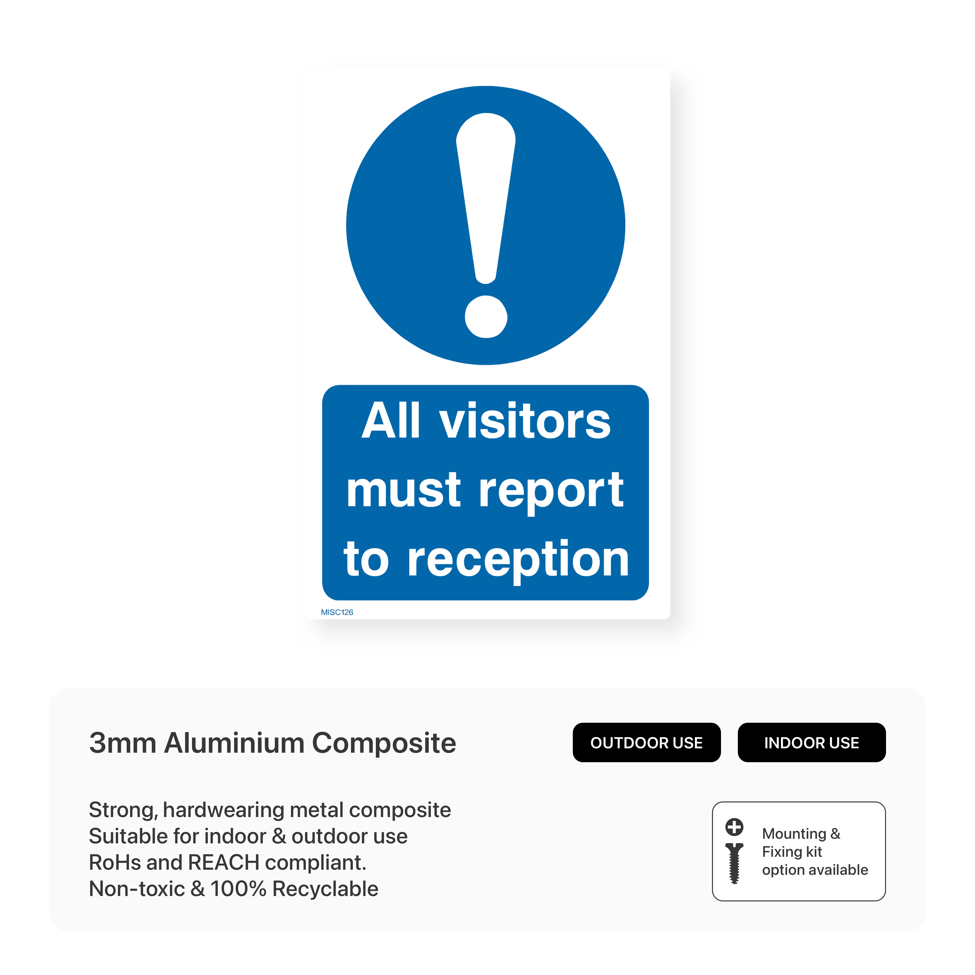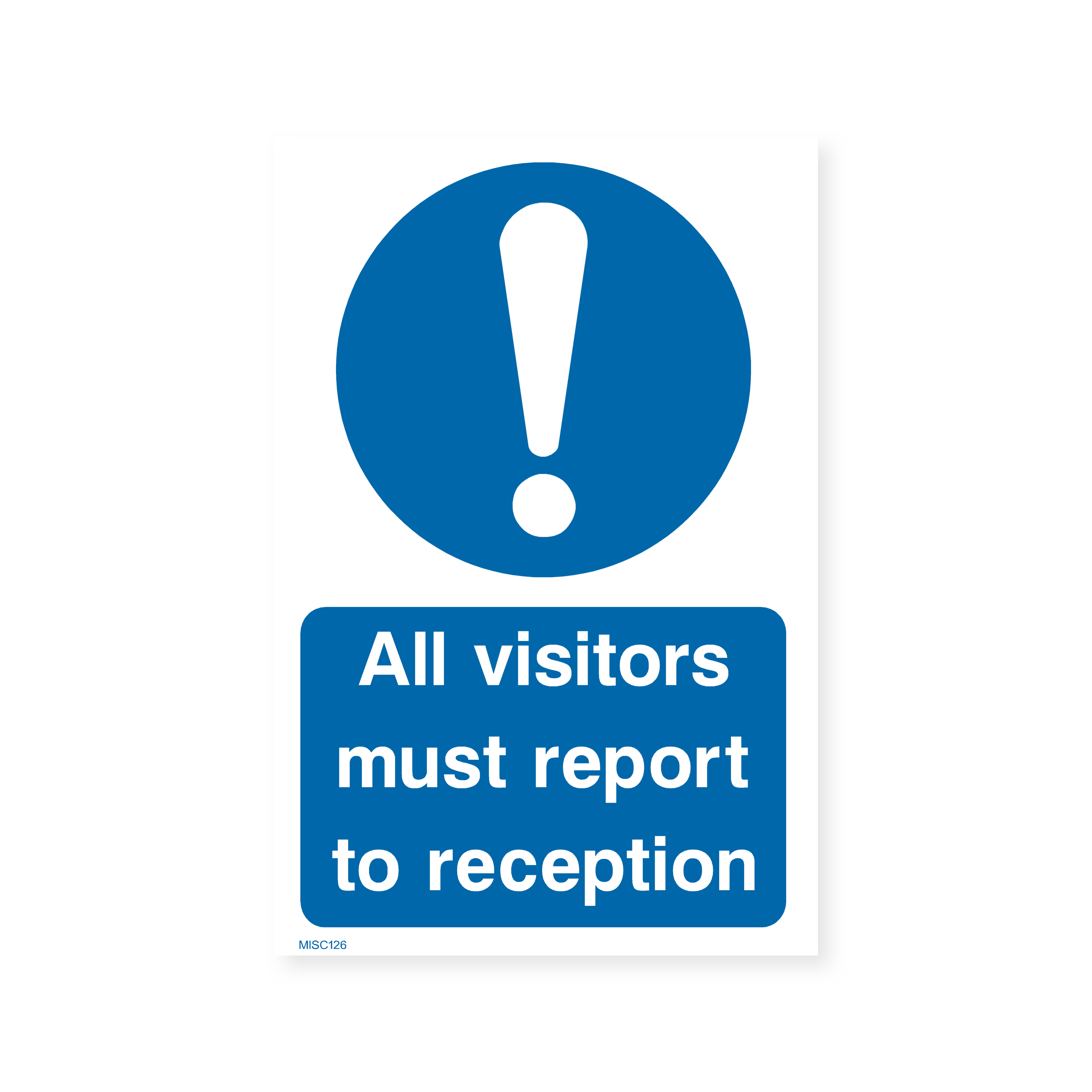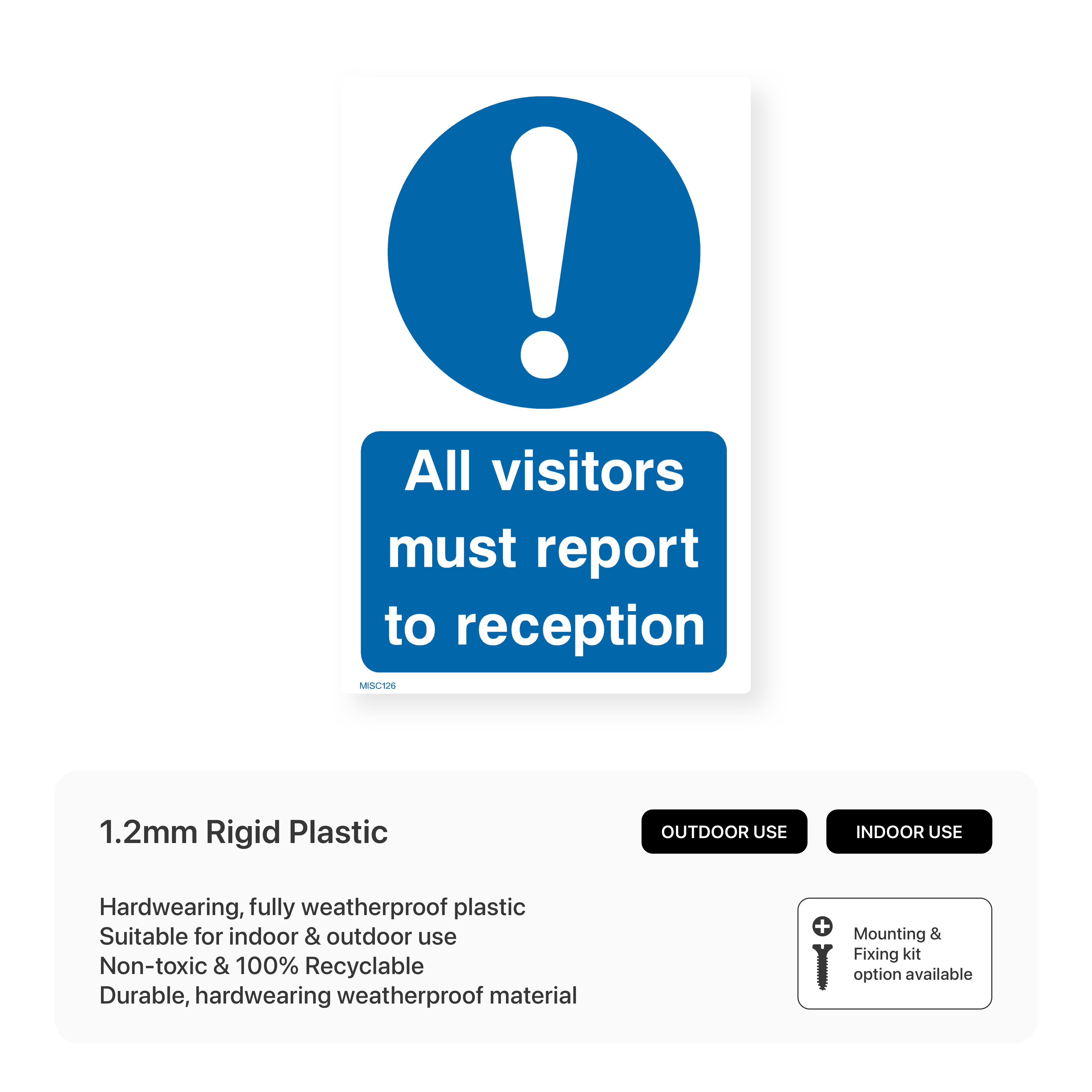 Guide visitors and maintain security with our "All Visitors Must Report to Reception" signs. Clearly communicate your visitor policy and ensure a smooth check-in process.
