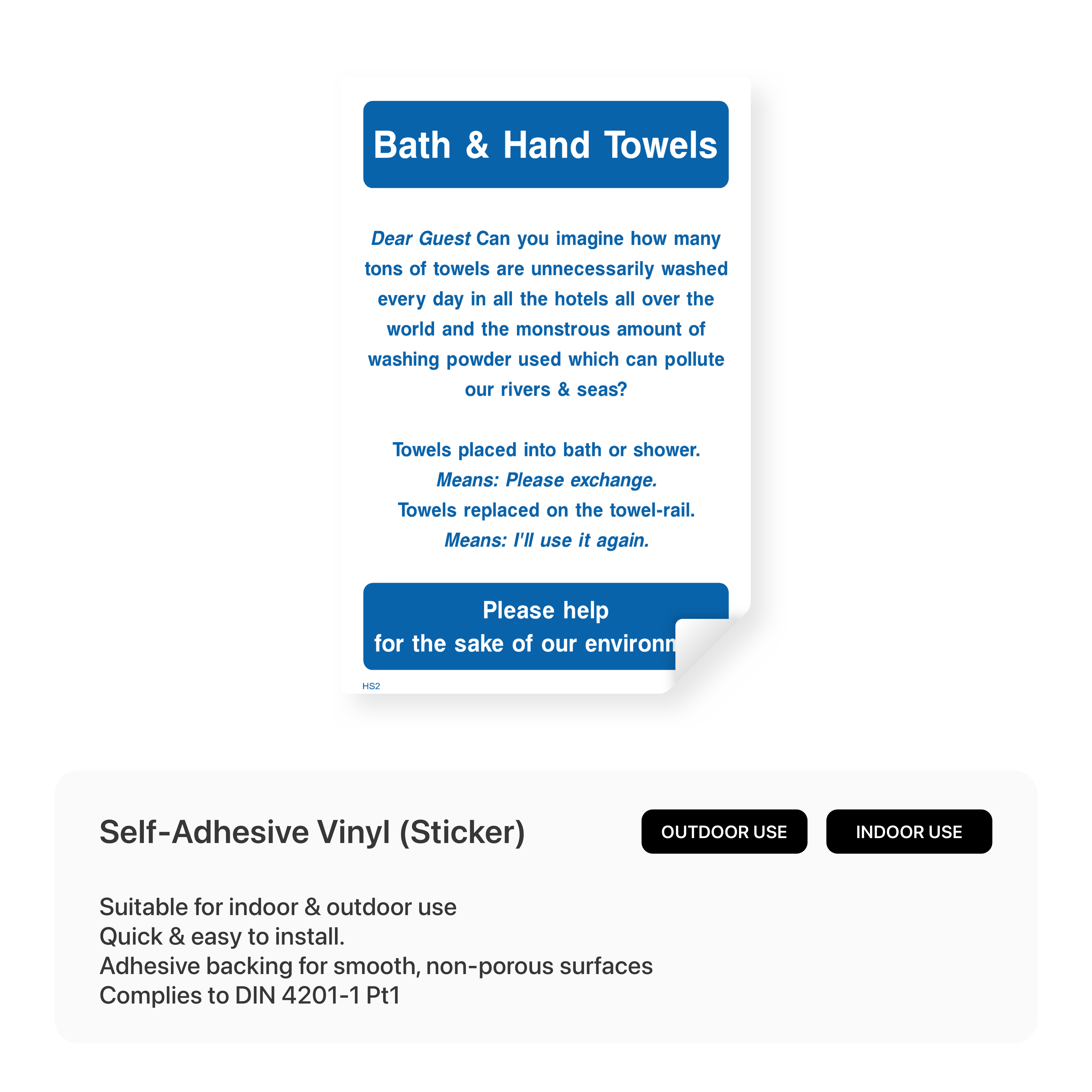 Clearly identify the location of bath and hand towels with this sign. Help guests easily find the amenities they need for a comfortable stay.