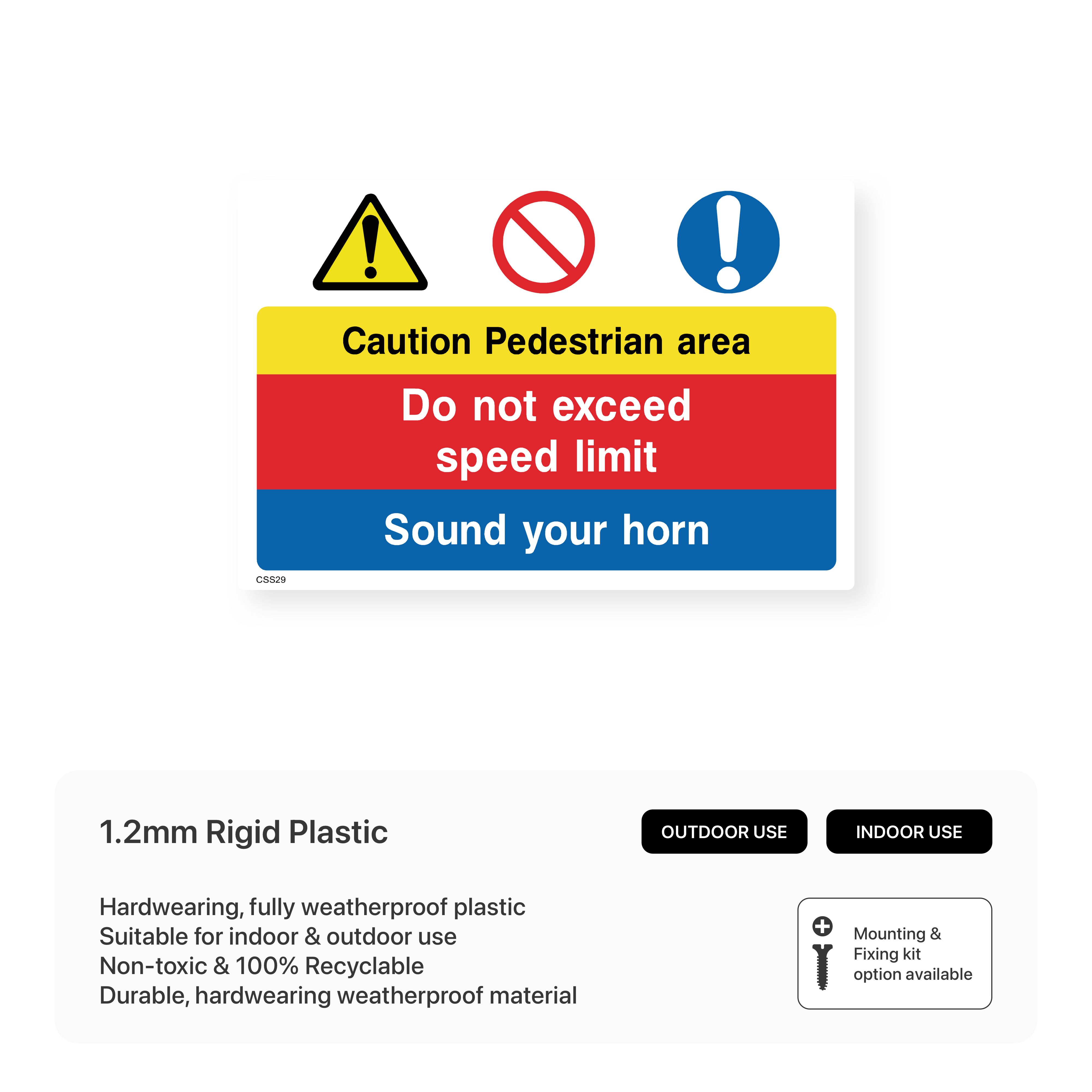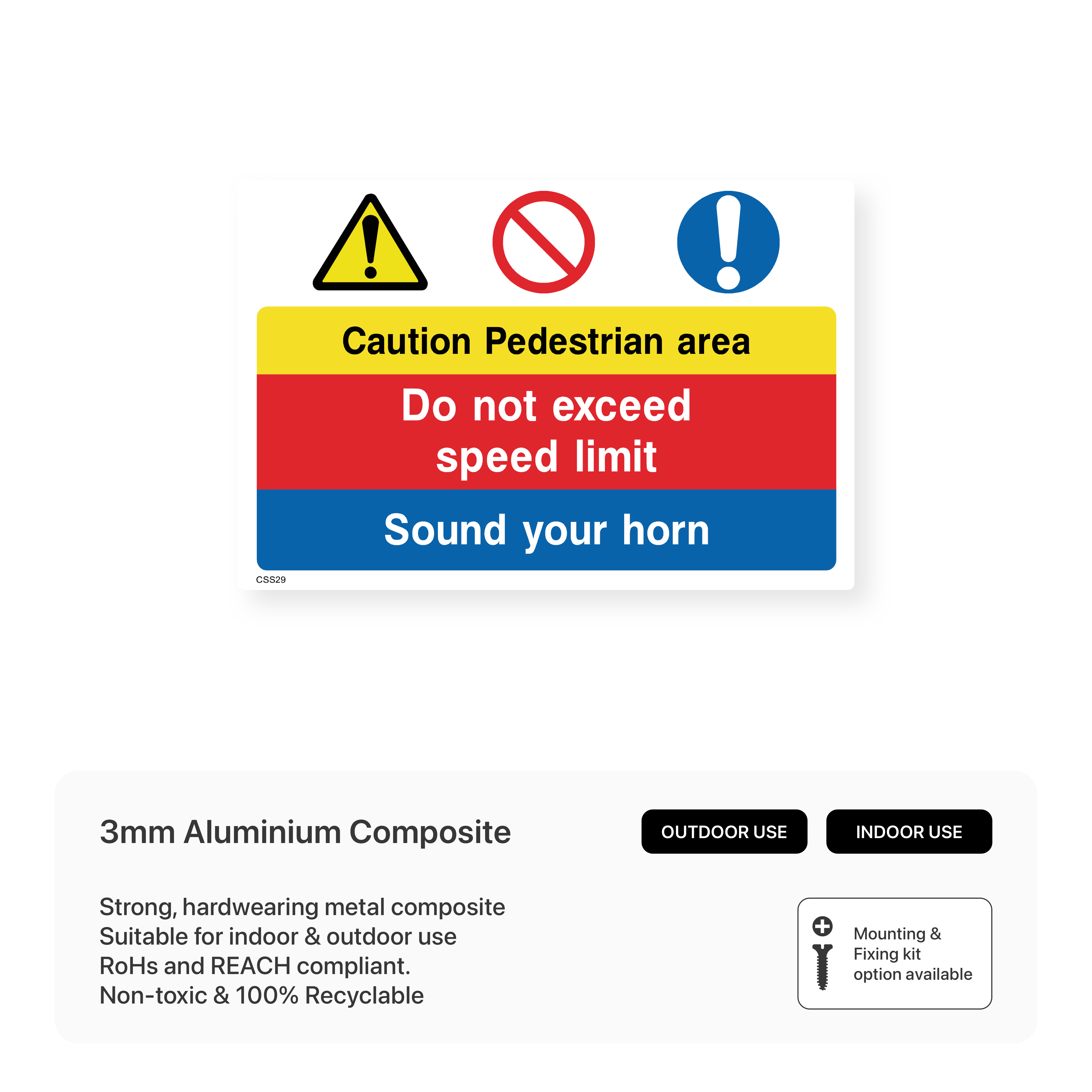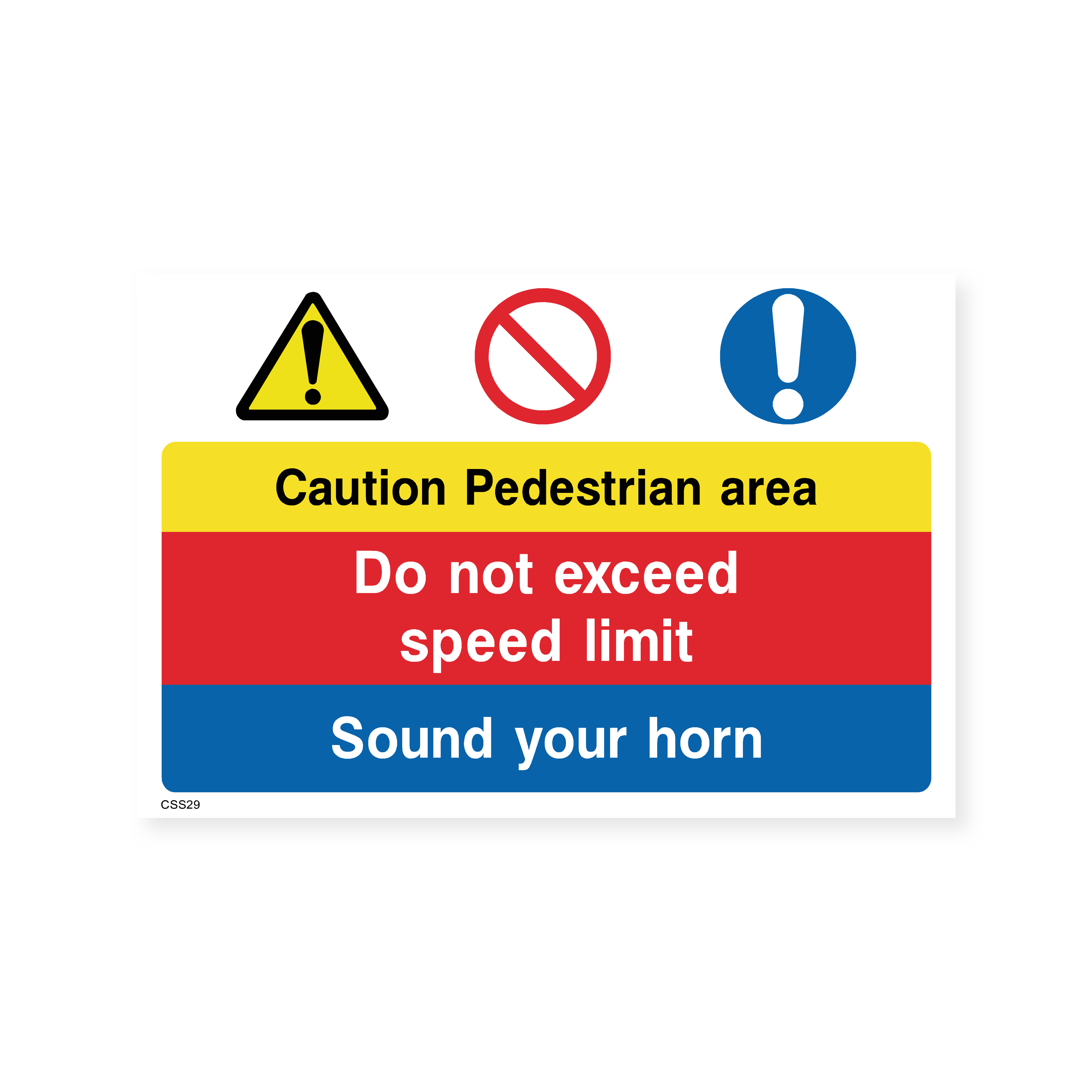 Prioritise pedestrian safety with our "Caution pedestrian area" sign. Clearly mark designated walkways and areas where pedestrians may be present to alert drivers and equipment operators, reducing the risk of accidents.