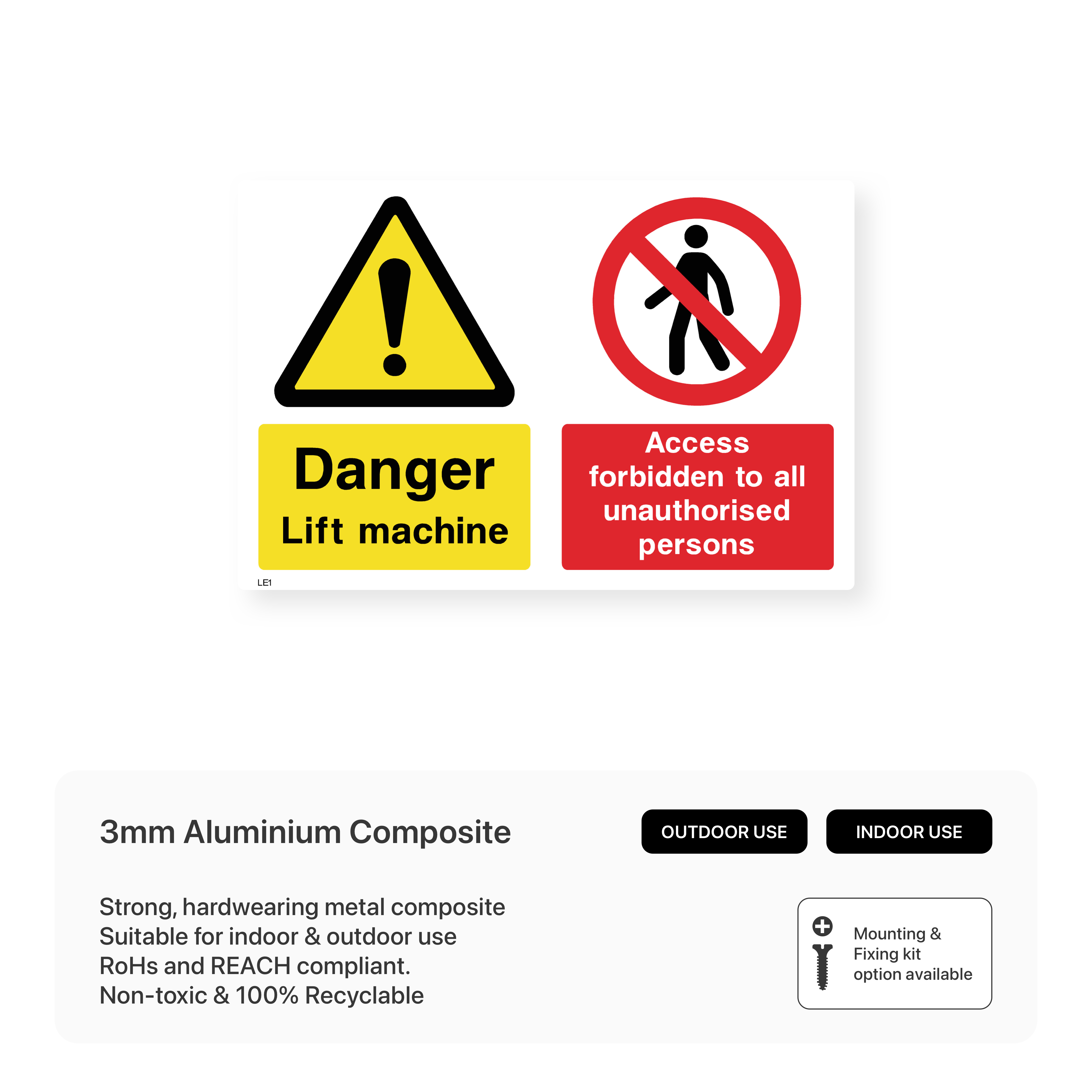 Ensure authorised access only to lift machinery with this clear and compliant warning sign. Available in multiple sizes and durable materials, this sign is essential for maintaining safety and preventing accidents in lift maintenance areas.
