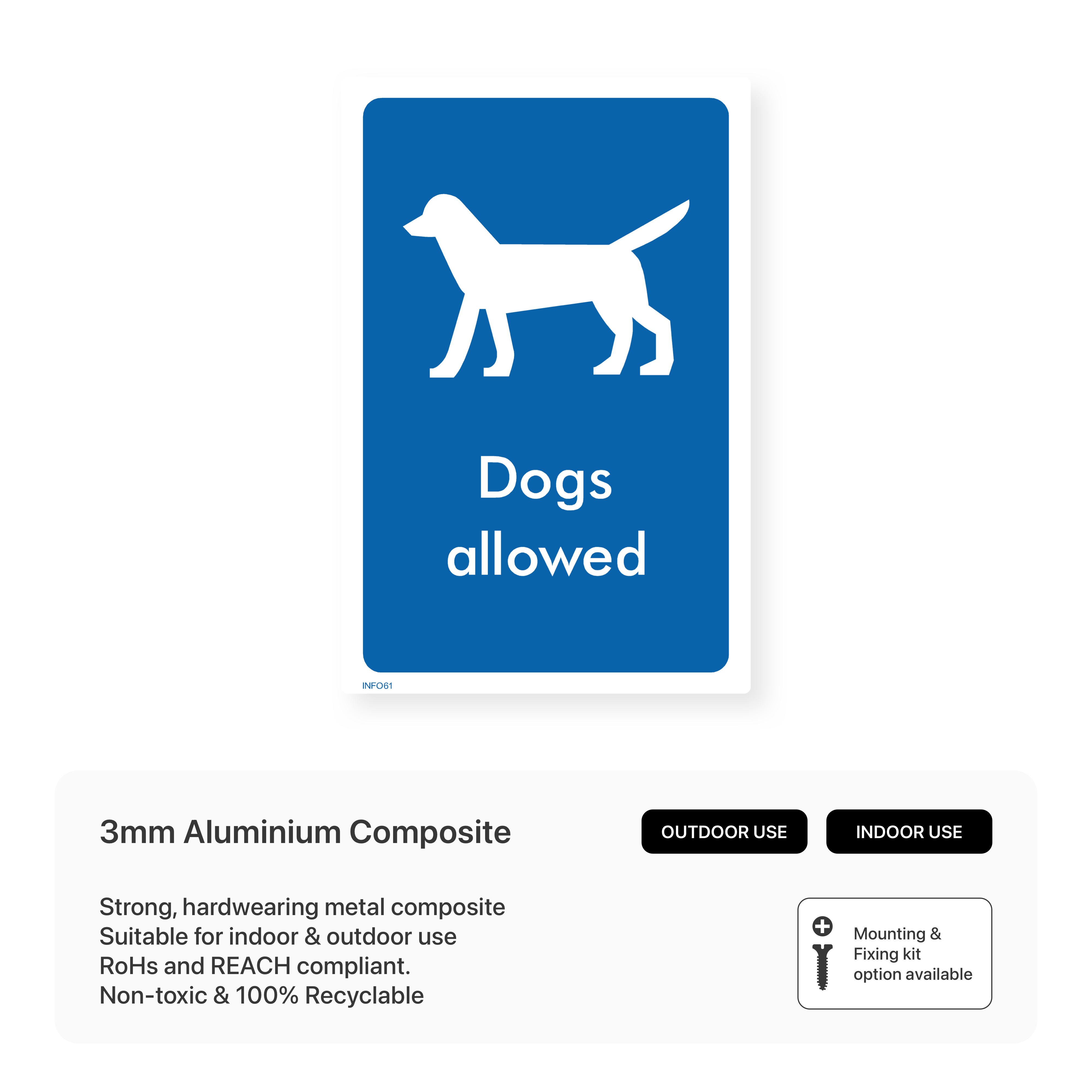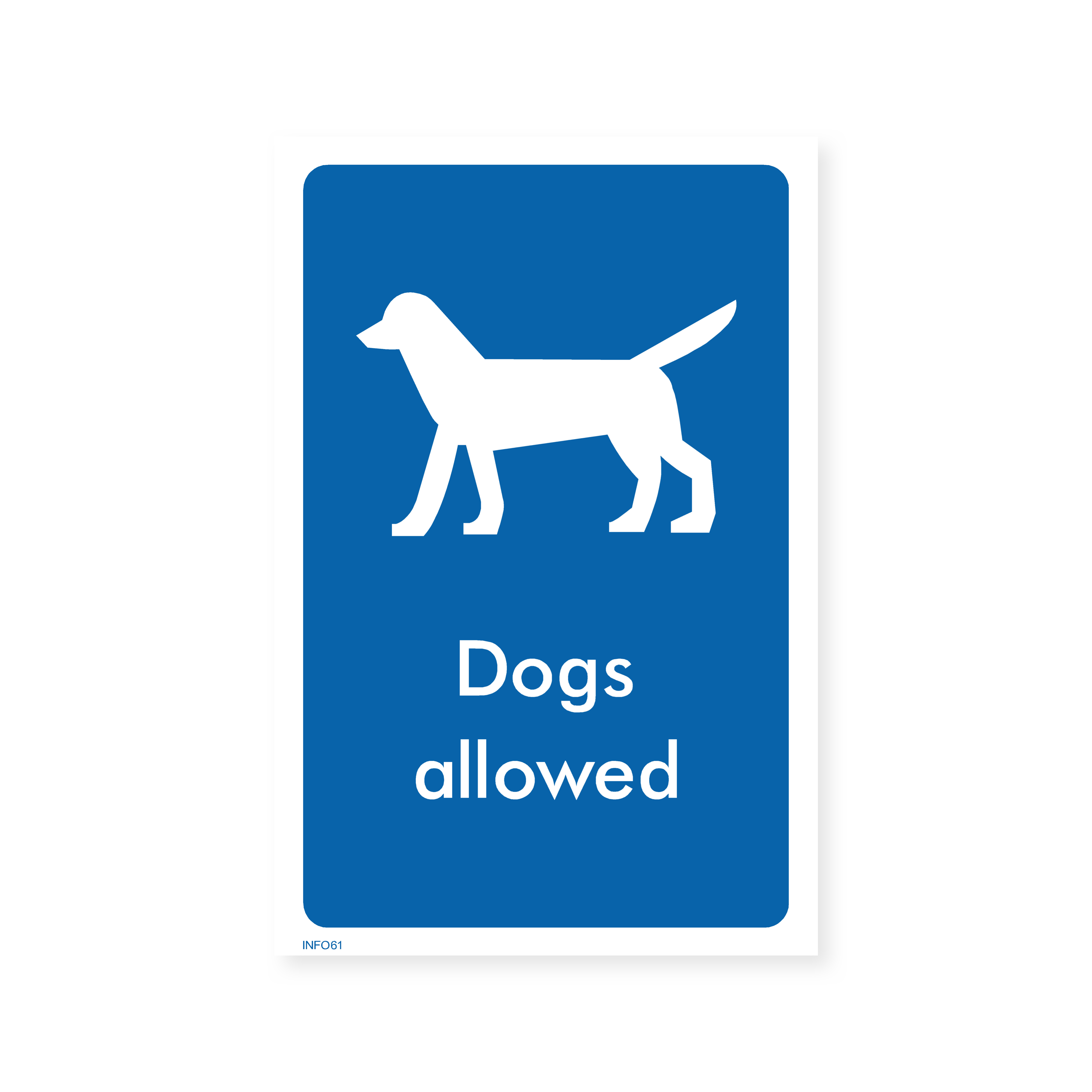 Inform pet owners of pet-friendly areas with our "Dogs allowed" sign. This sign welcomes dogs and their owners, creating an inclusive environment for all.