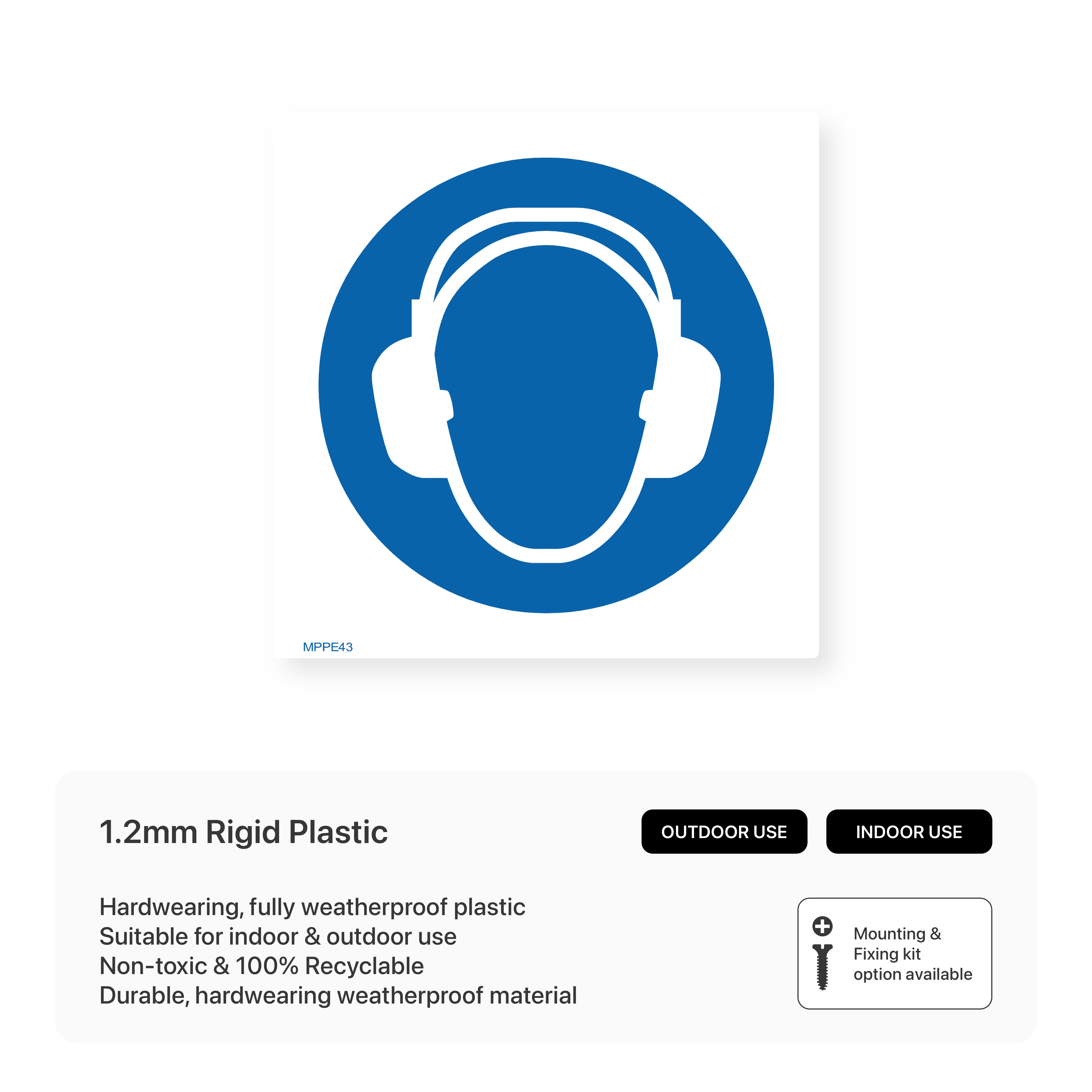 Protect your employees' hearing with our "Ear Protection Symbol" square sign. This widely recognized symbol clearly indicates the mandatory use of ear protection in designated areas to prevent hearing damage. Choose from various sizes and materials to suit your specific needs and ensure a safe workplace.