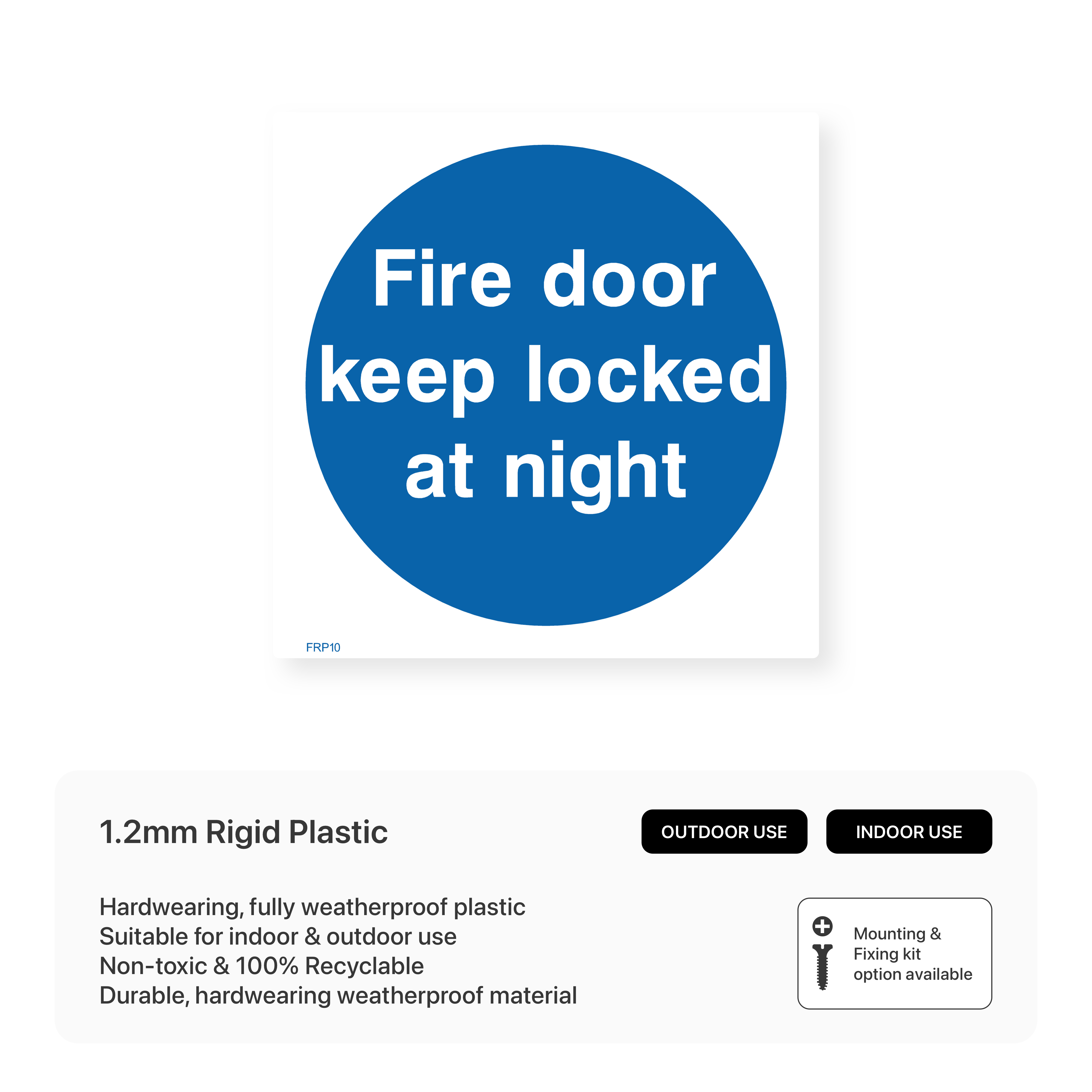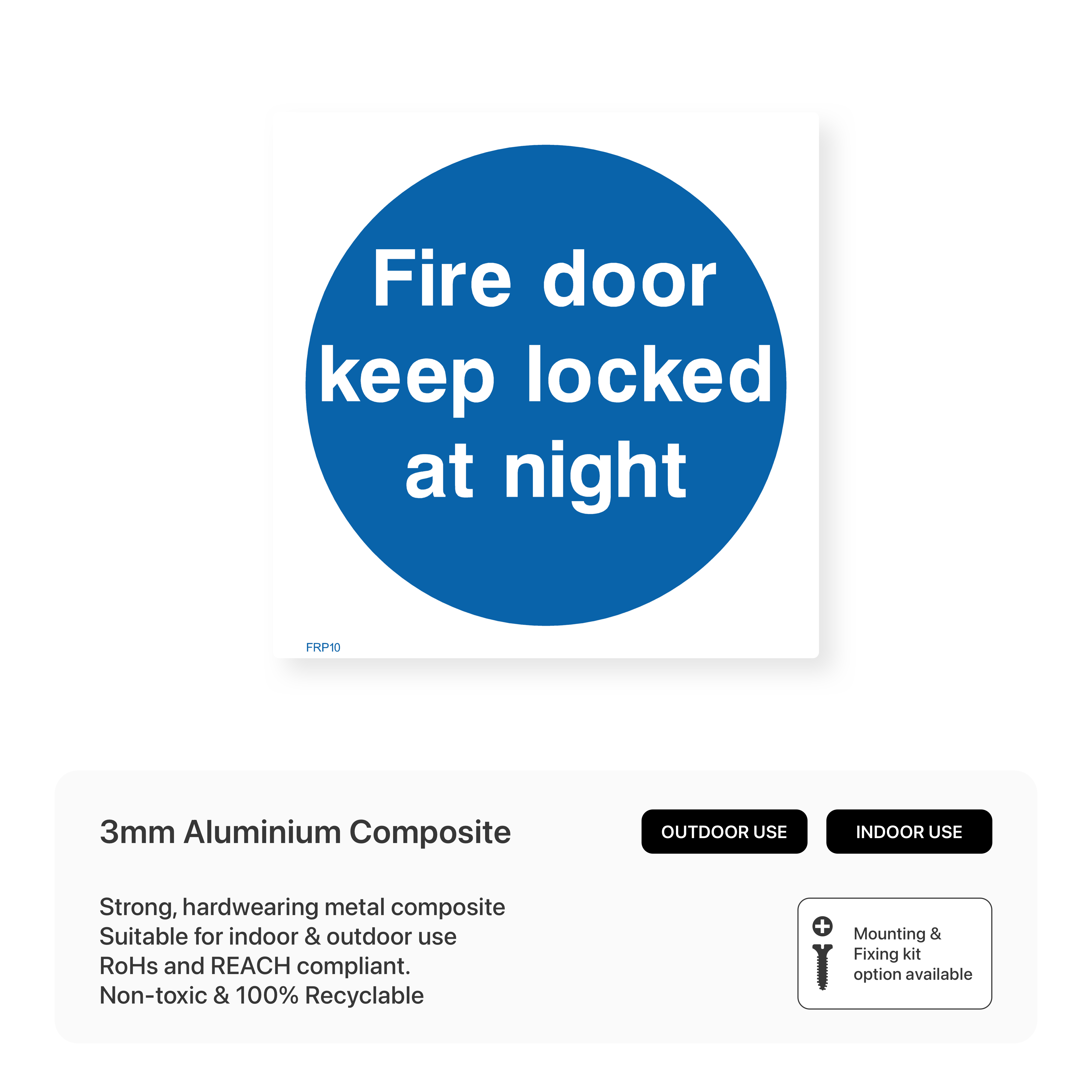 Enhance security and fire safety with our "Fire door keep locked at night" sign. This sign reminds individuals to lock the fire door after hours, preventing unauthorized access and containing fires.