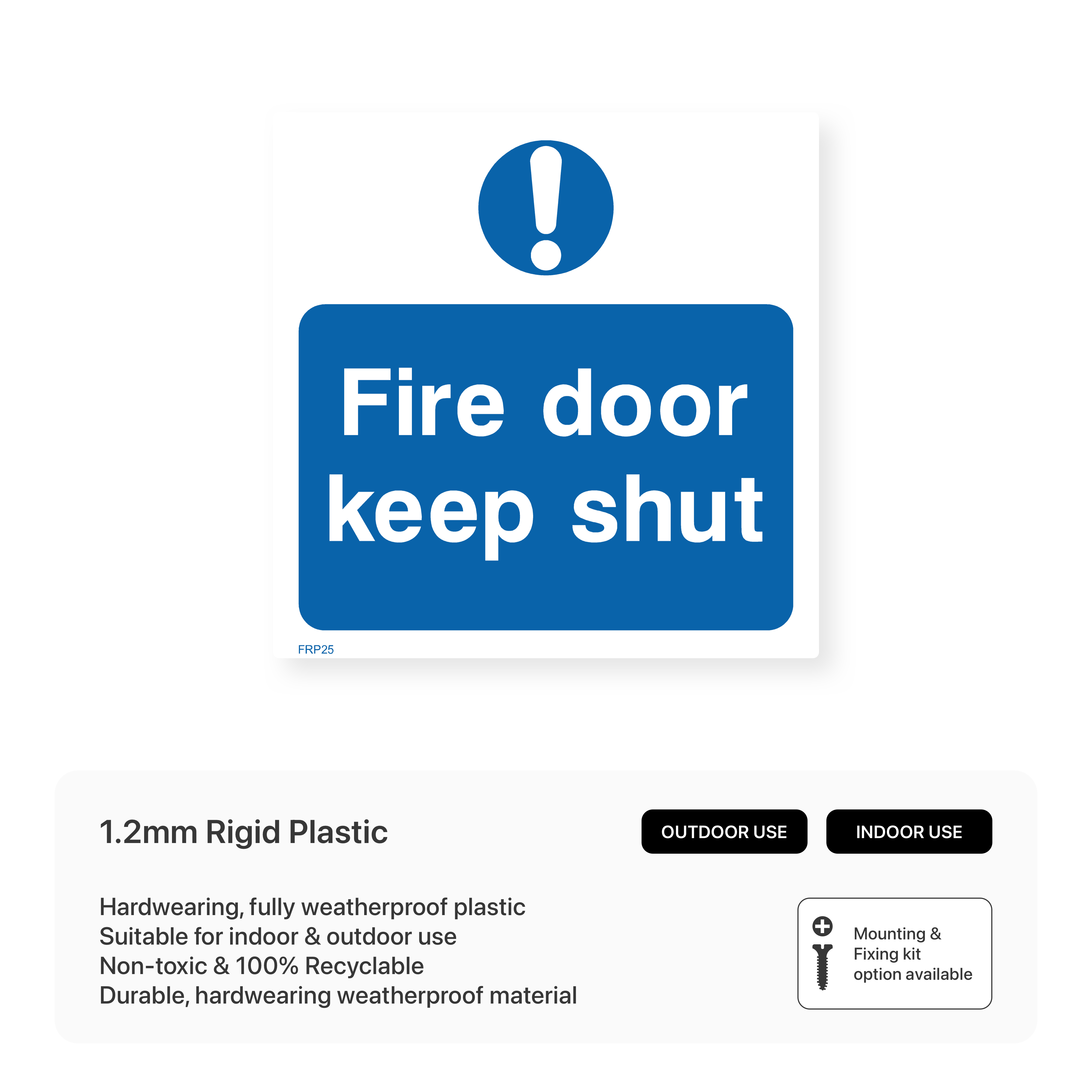 Promote fire safety and prevent the spread of fire with our durable "Fire door keep shut" sign. Ideal for commercial buildings, schools, and any facility where fire safety is a priority.