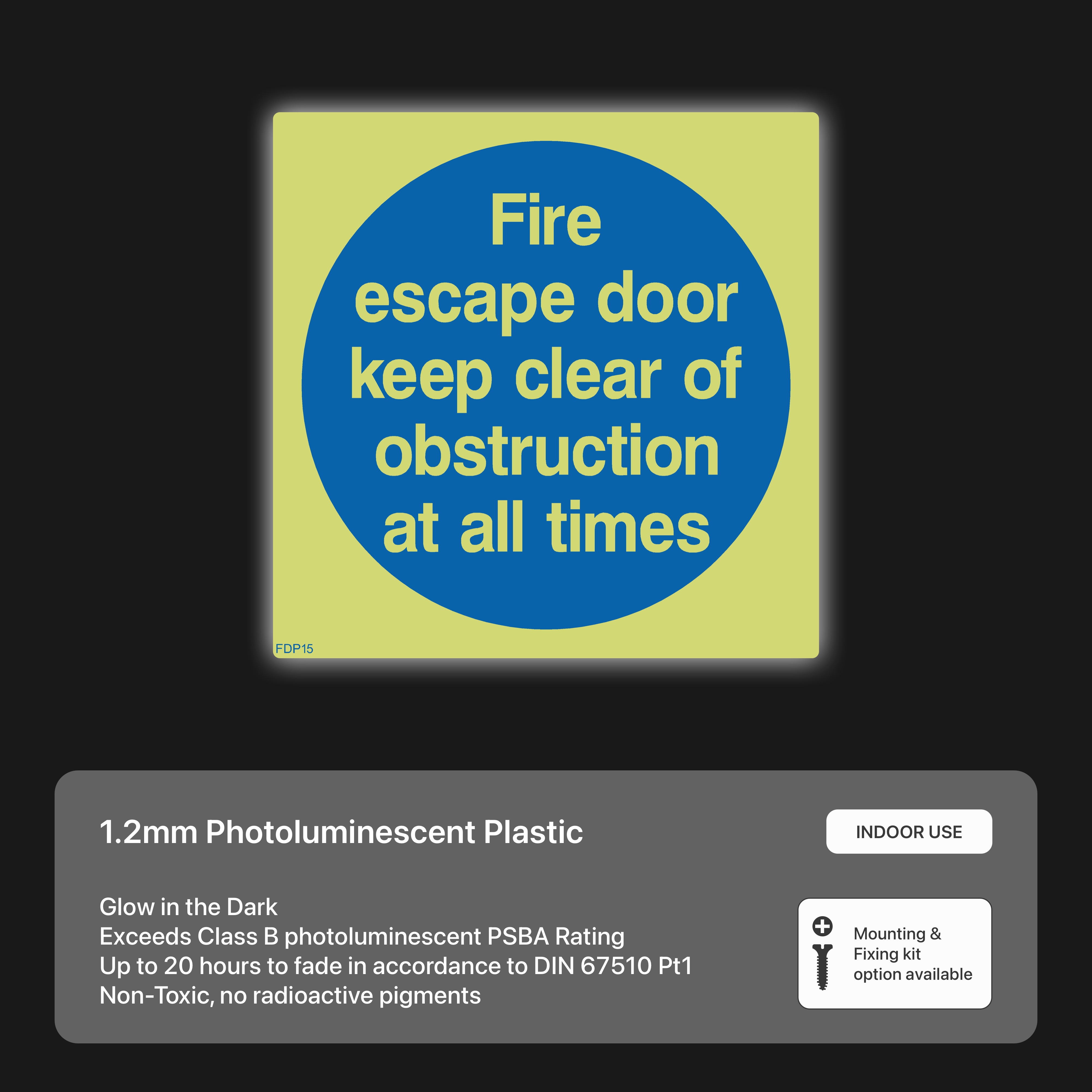 Maintain clear escape routes during emergencies with our "Fire escape door keep clear of obstruction at all times" sign. This sign ensures that fire escape doors remain unobstructed, allowing for safe and efficient evacuation in case of fire or other emergencies.