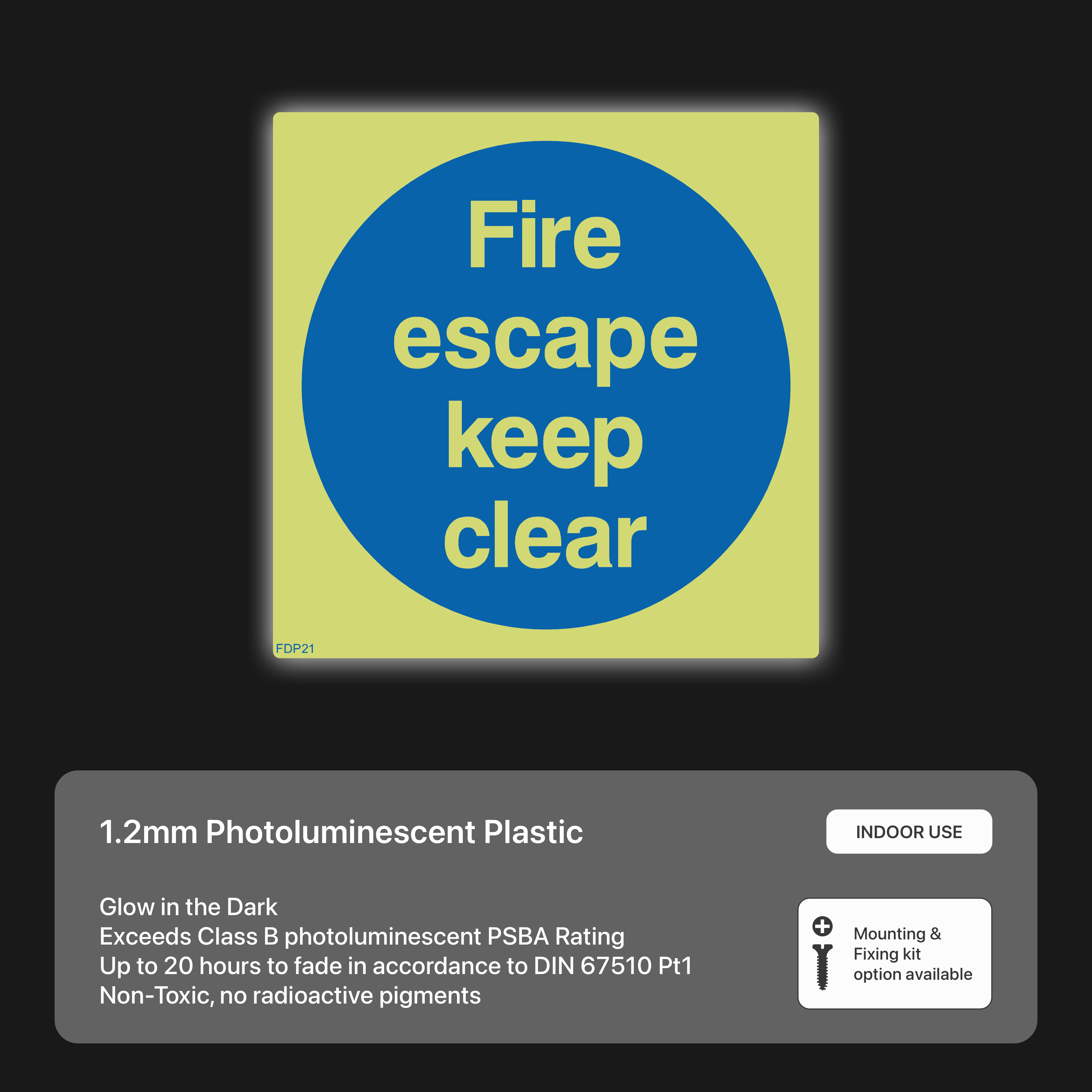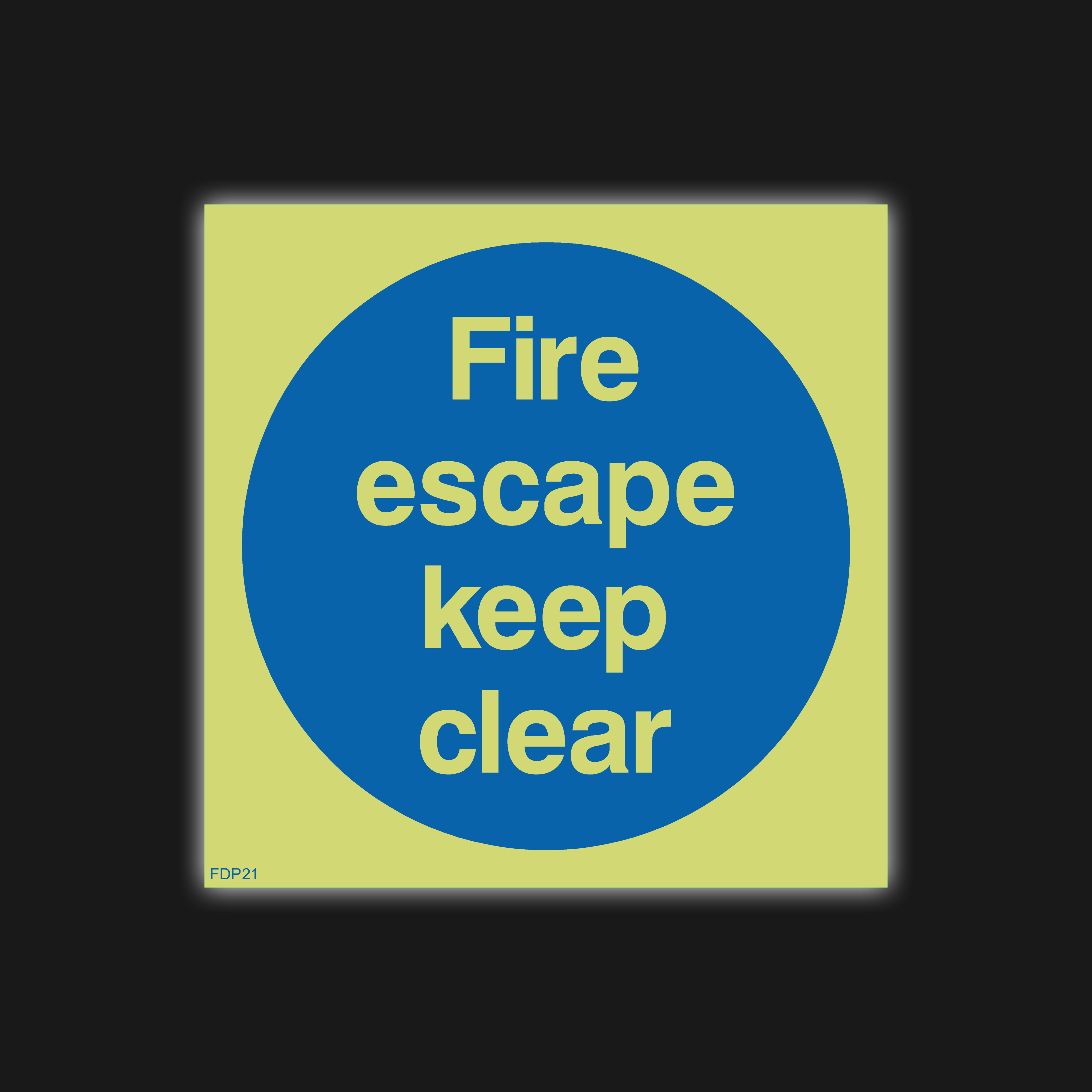 Maintain clear access to fire escapes with our "Fire escape keep clear" sign. This sign reminds individuals to keep the area around fire escapes free of obstructions, ensuring that they can be easily accessed and used in case of emergency.