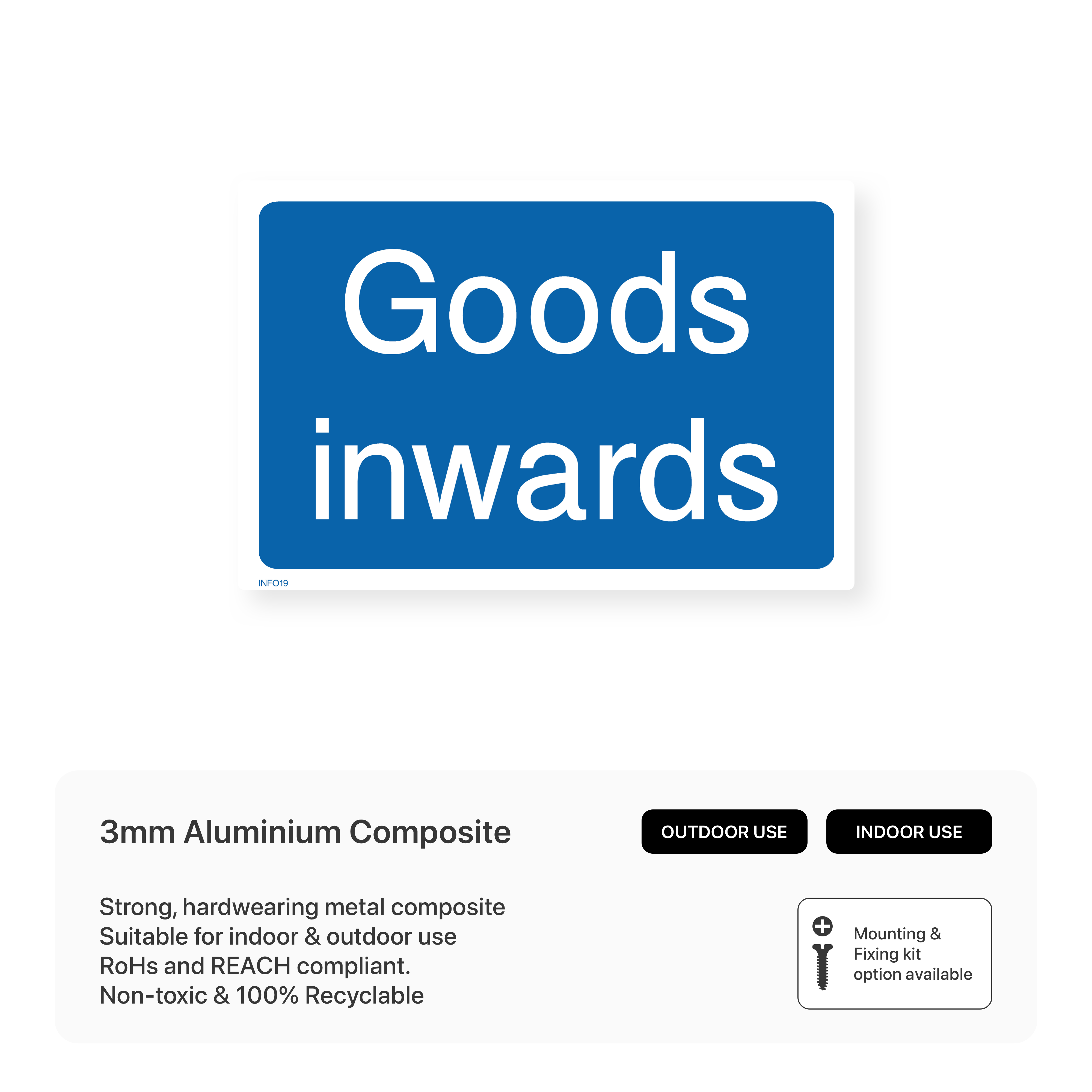 Clearly mark designated areas for receiving goods with our "Goods inwards" sign. This sign helps streamline deliveries and ensures that goods are delivered to the correct location, improving efficiency and organization.