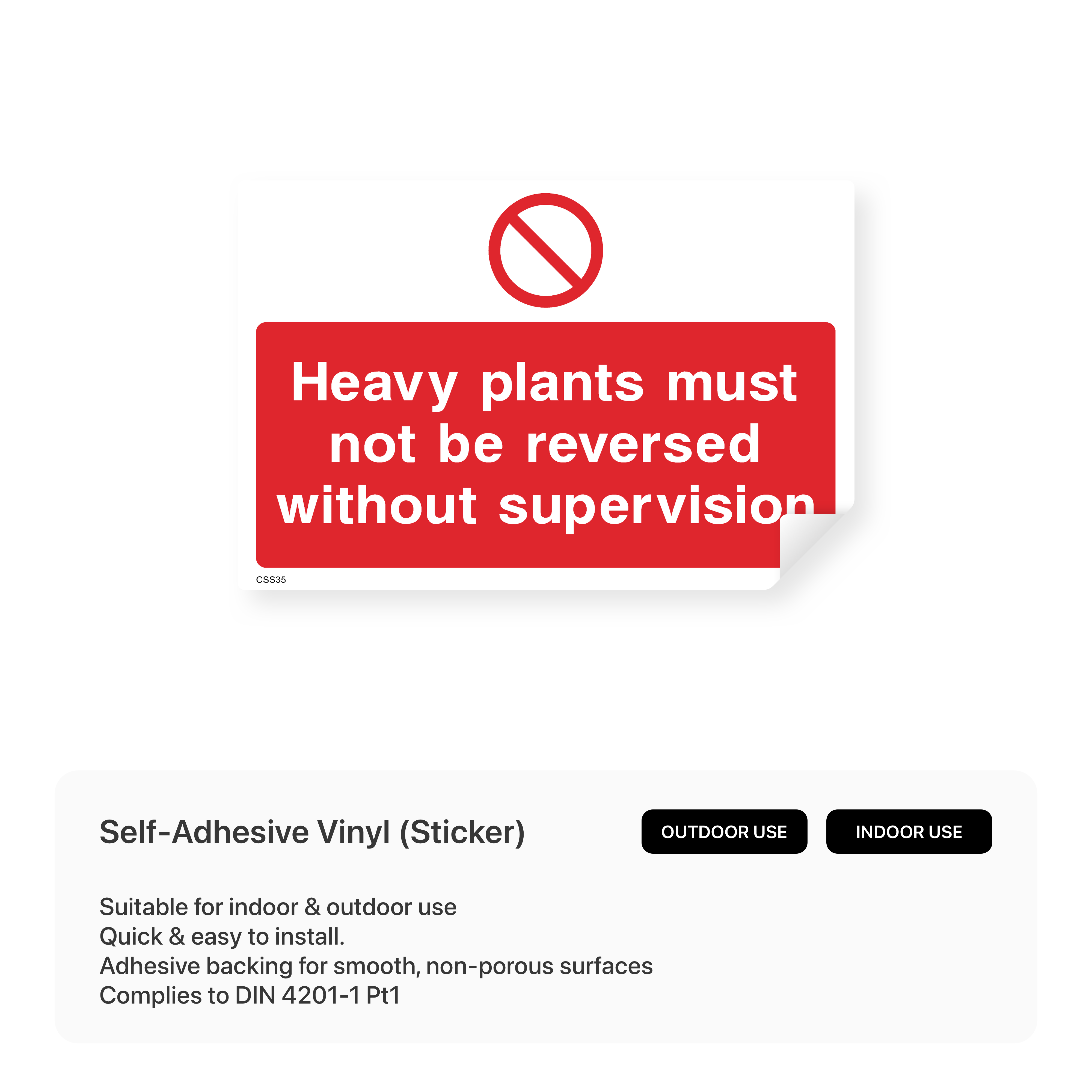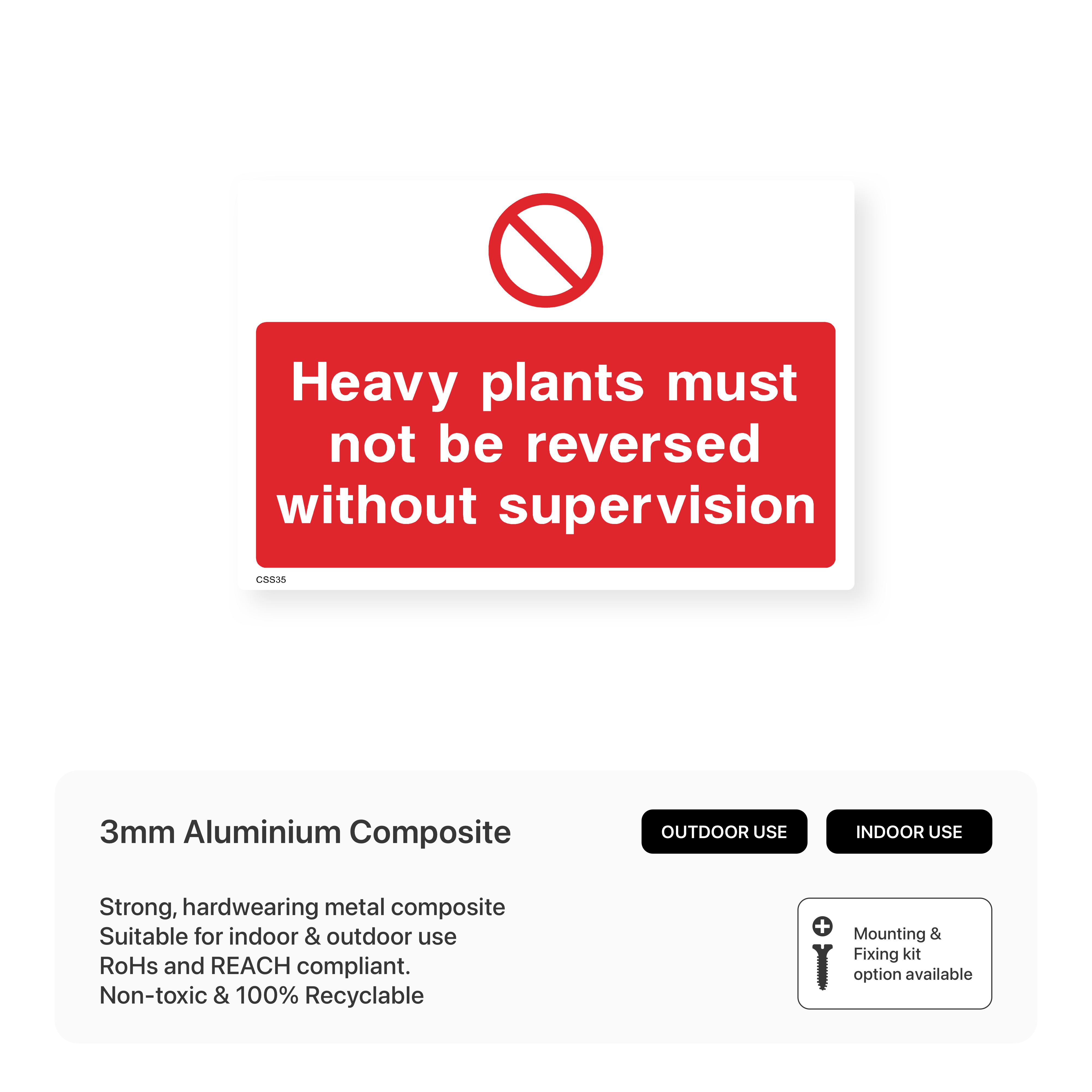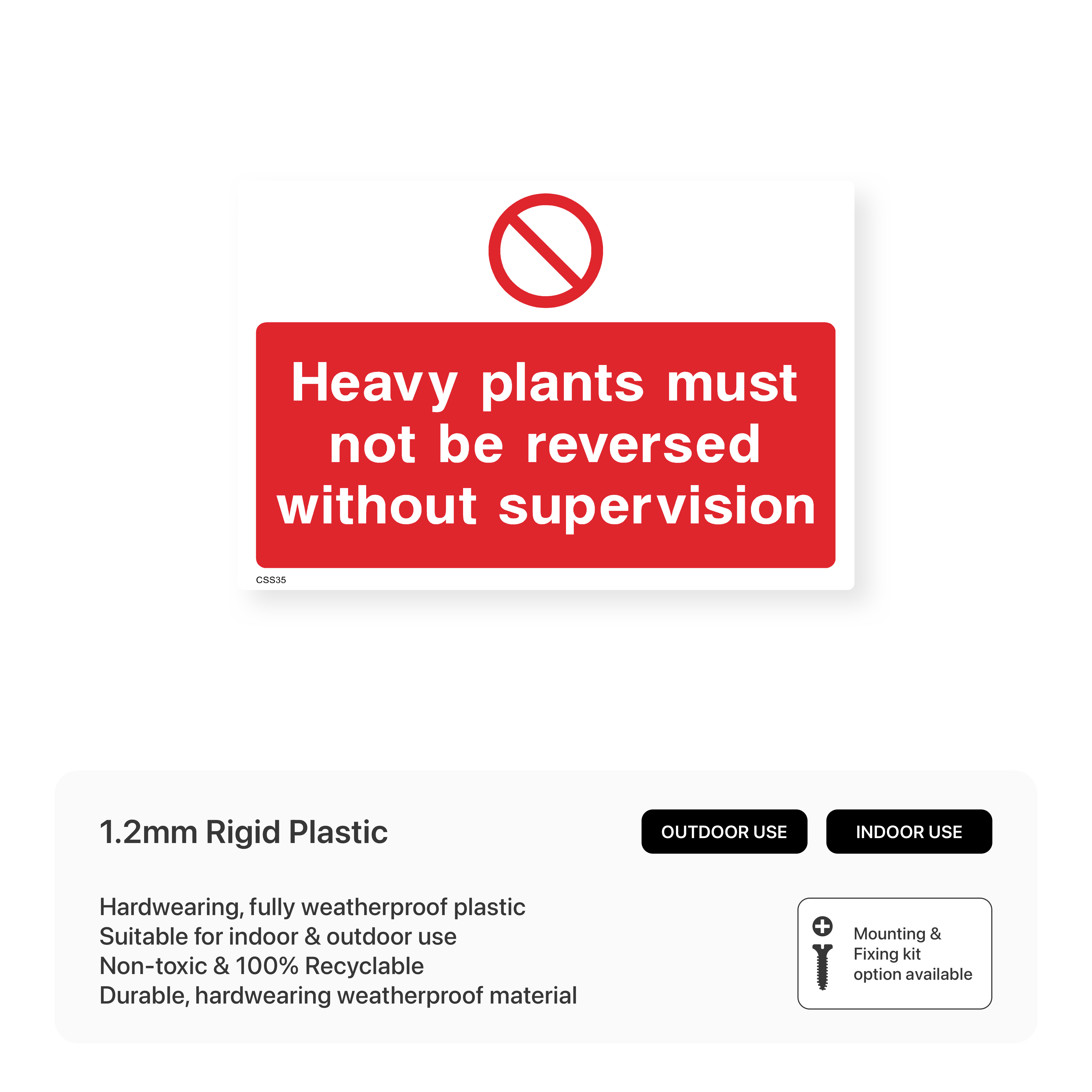 Prevent accidents and ensure safety on your construction site with our "Heavy plants must not be reversed without supervision" sign. Clearly communicate this important safety rule to operators and other workers, reducing the risk of collisions and injuries.