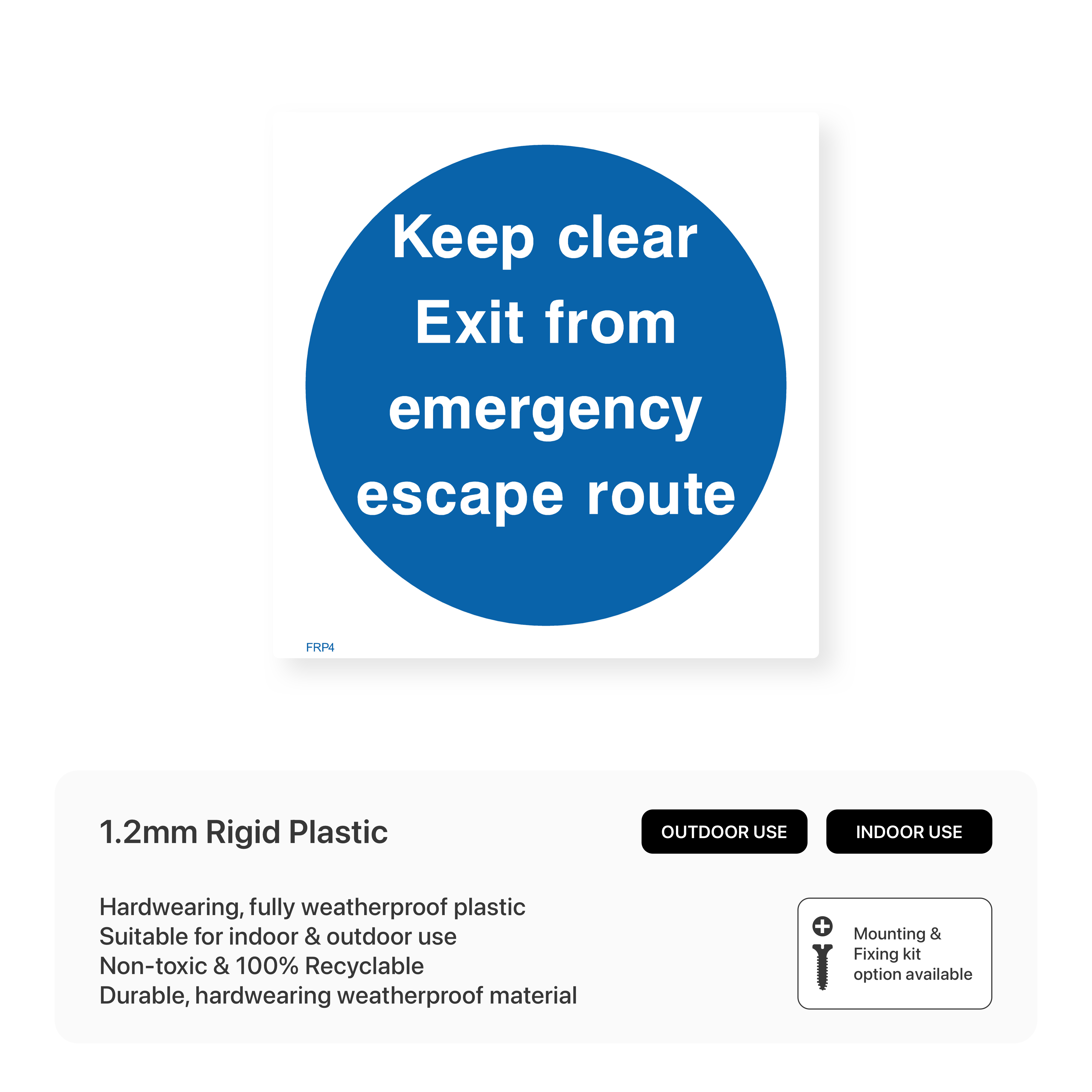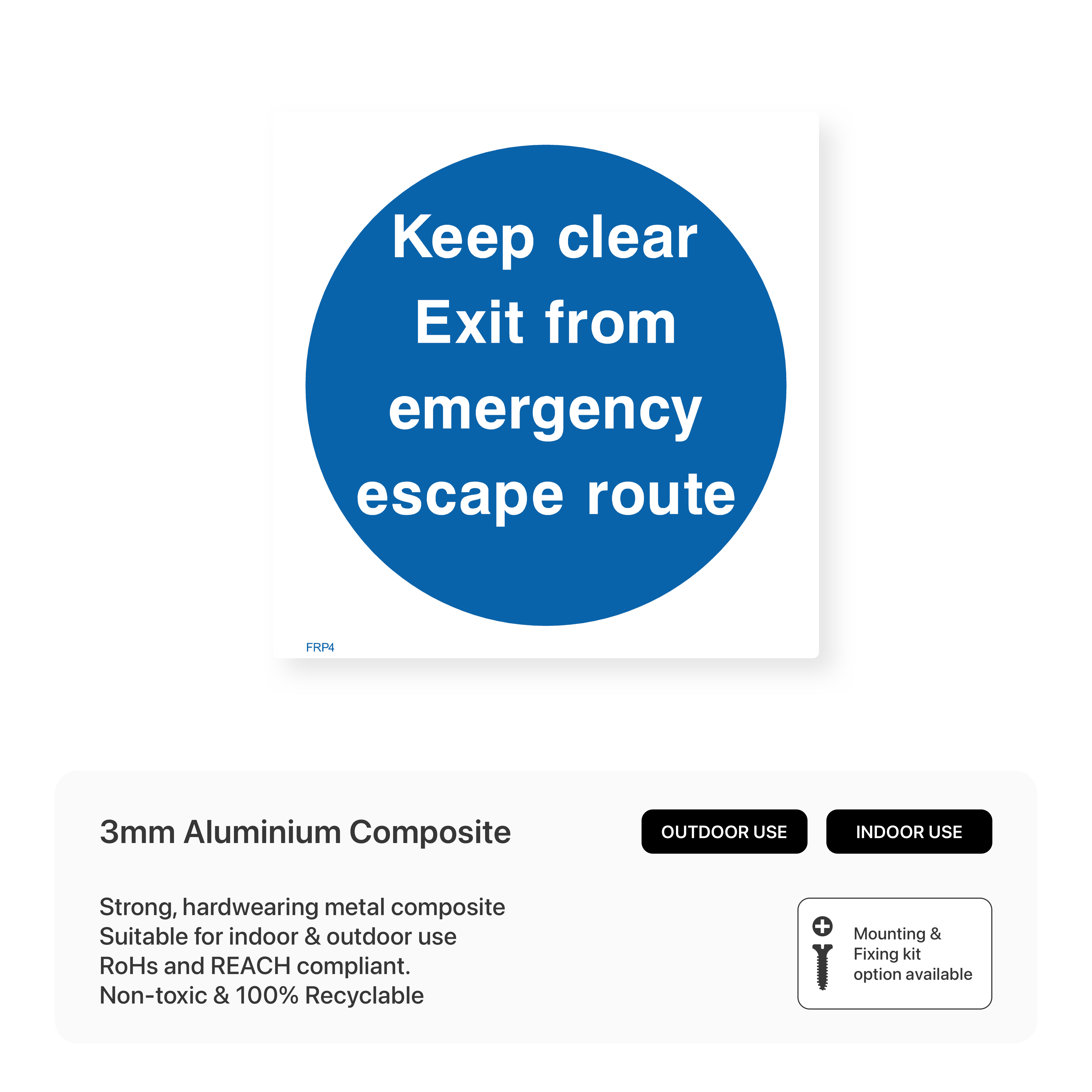 Maintain clear escape routes during emergencies with our "Keep clear - Exit from emergency escape route" sign. This sign ensures that emergency exits and escape routes remain accessible, allowing for safe and efficient evacuation.