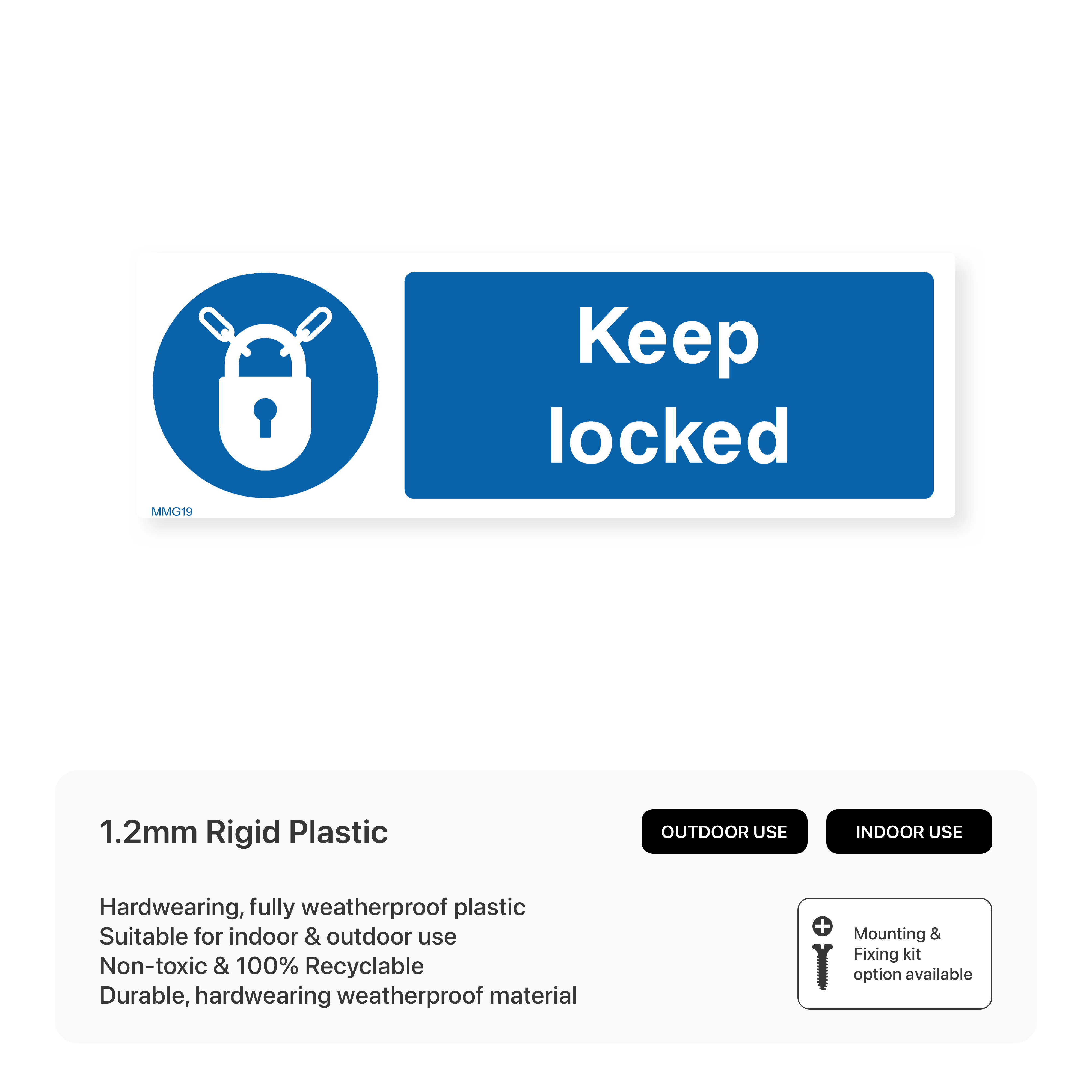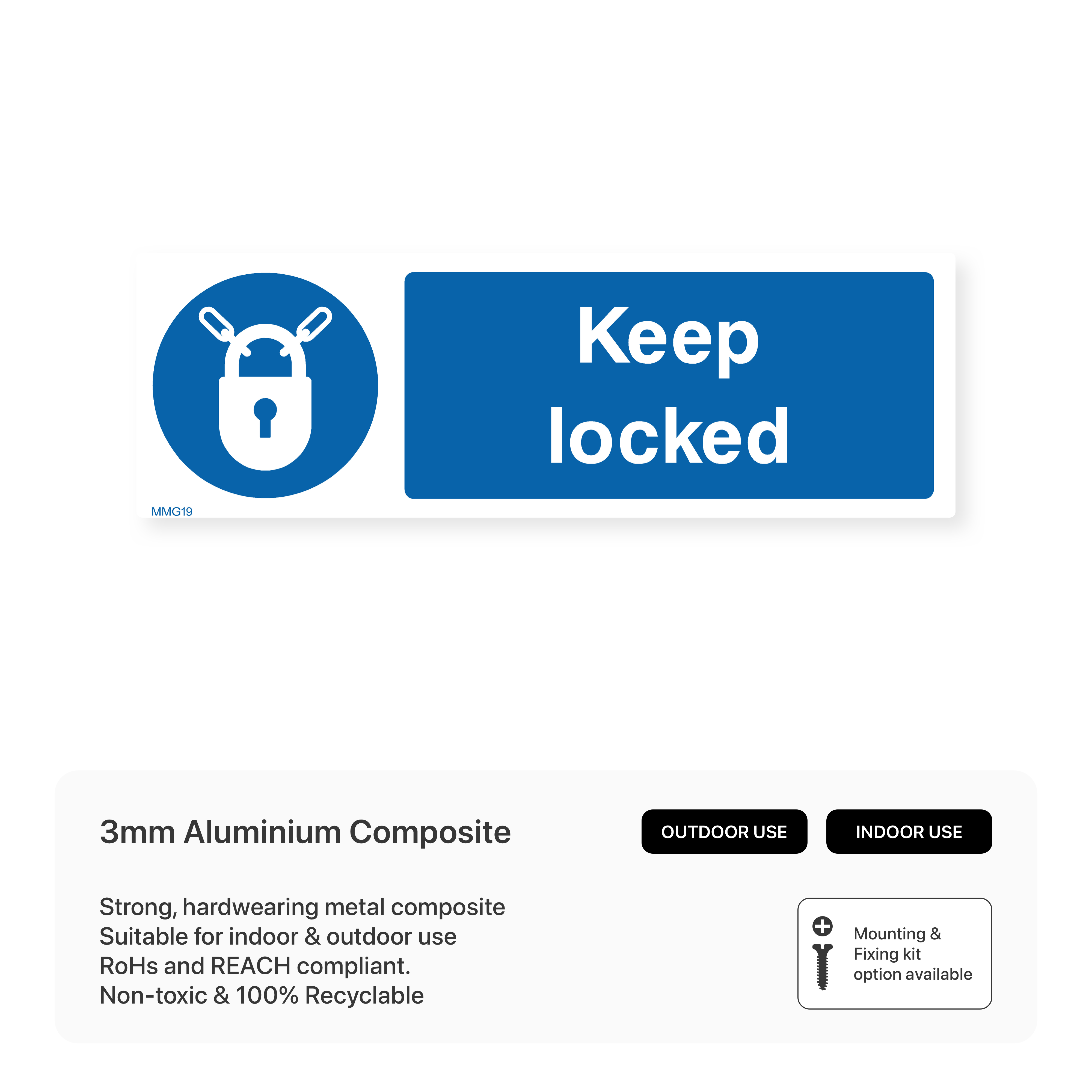Enhance security with our durable "Keep Locked" signs. Clearly communicate the need to keep doors and gates locked for safety and security purposes. Available in various sizes and materials.