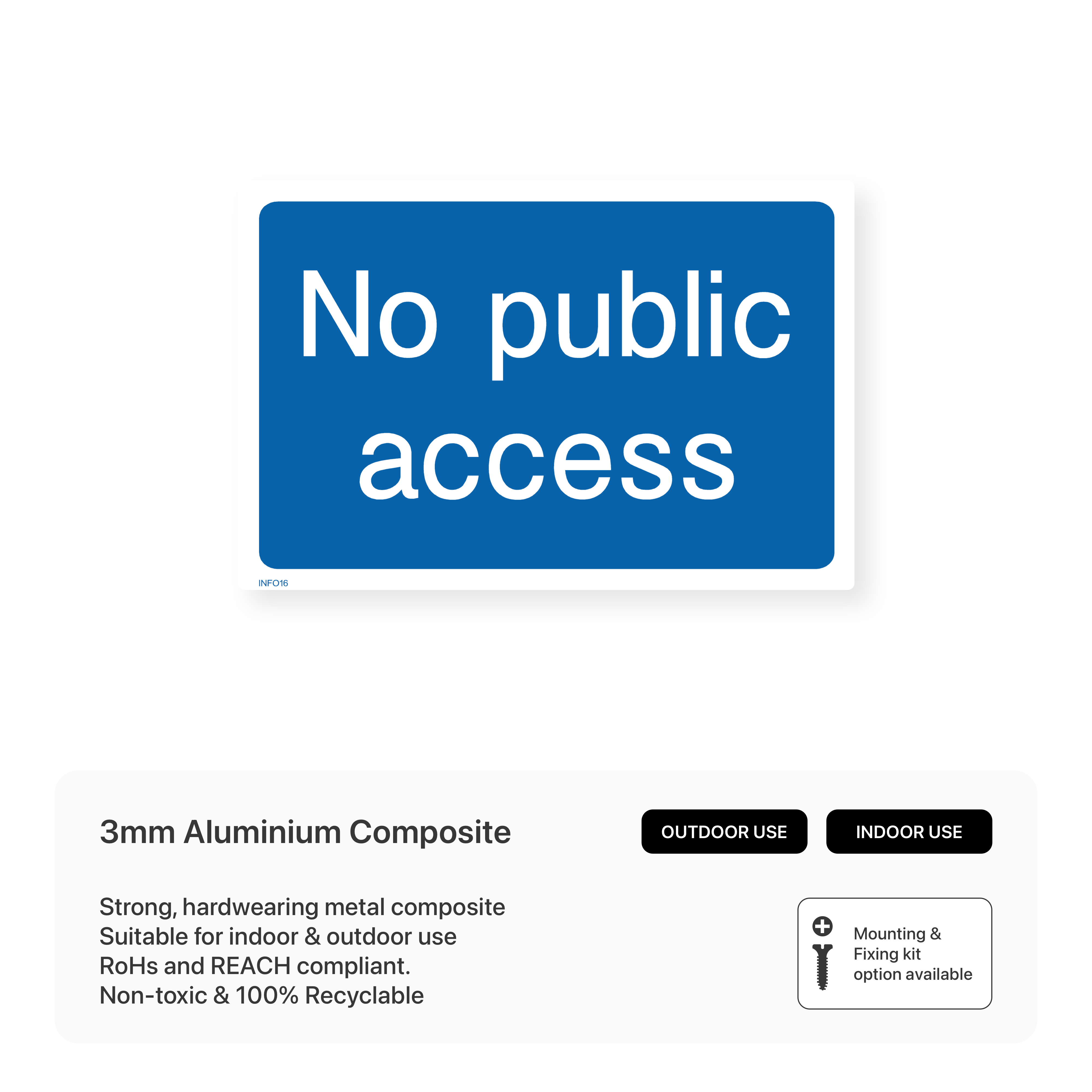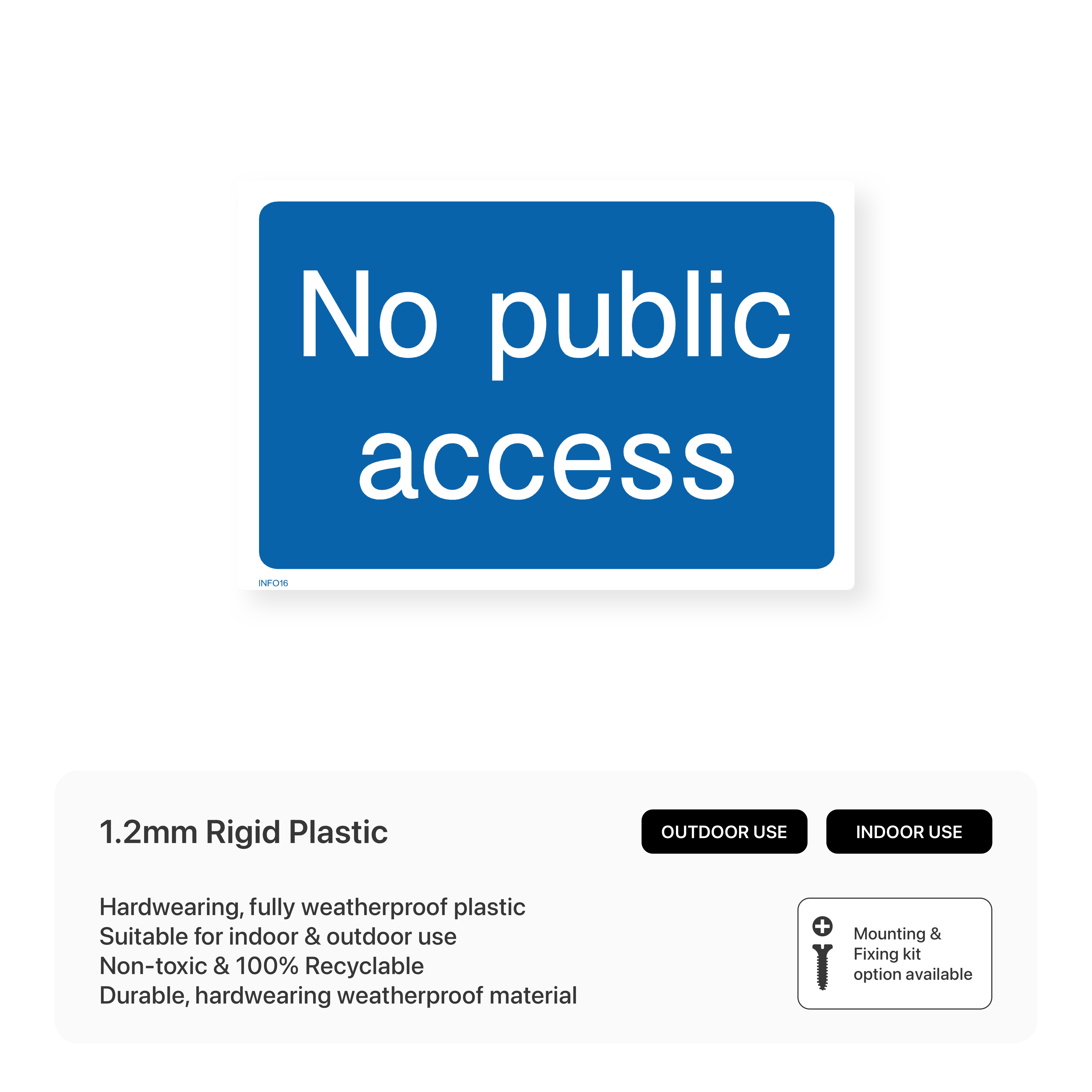 Restrict access to authorized personnel with our "No public access" sign. This sign clearly deters unauthorized entry, ensuring the privacy and security of your premises.