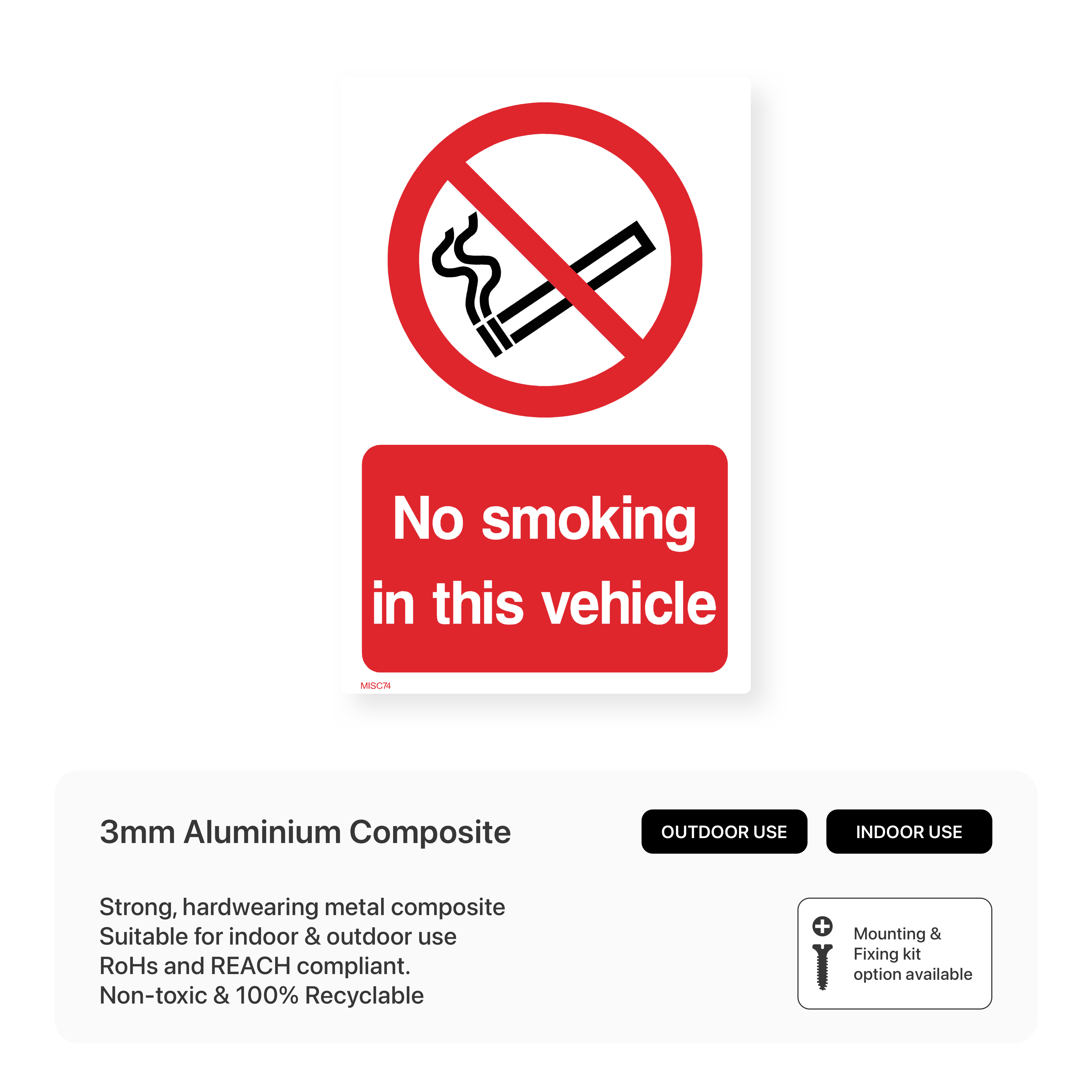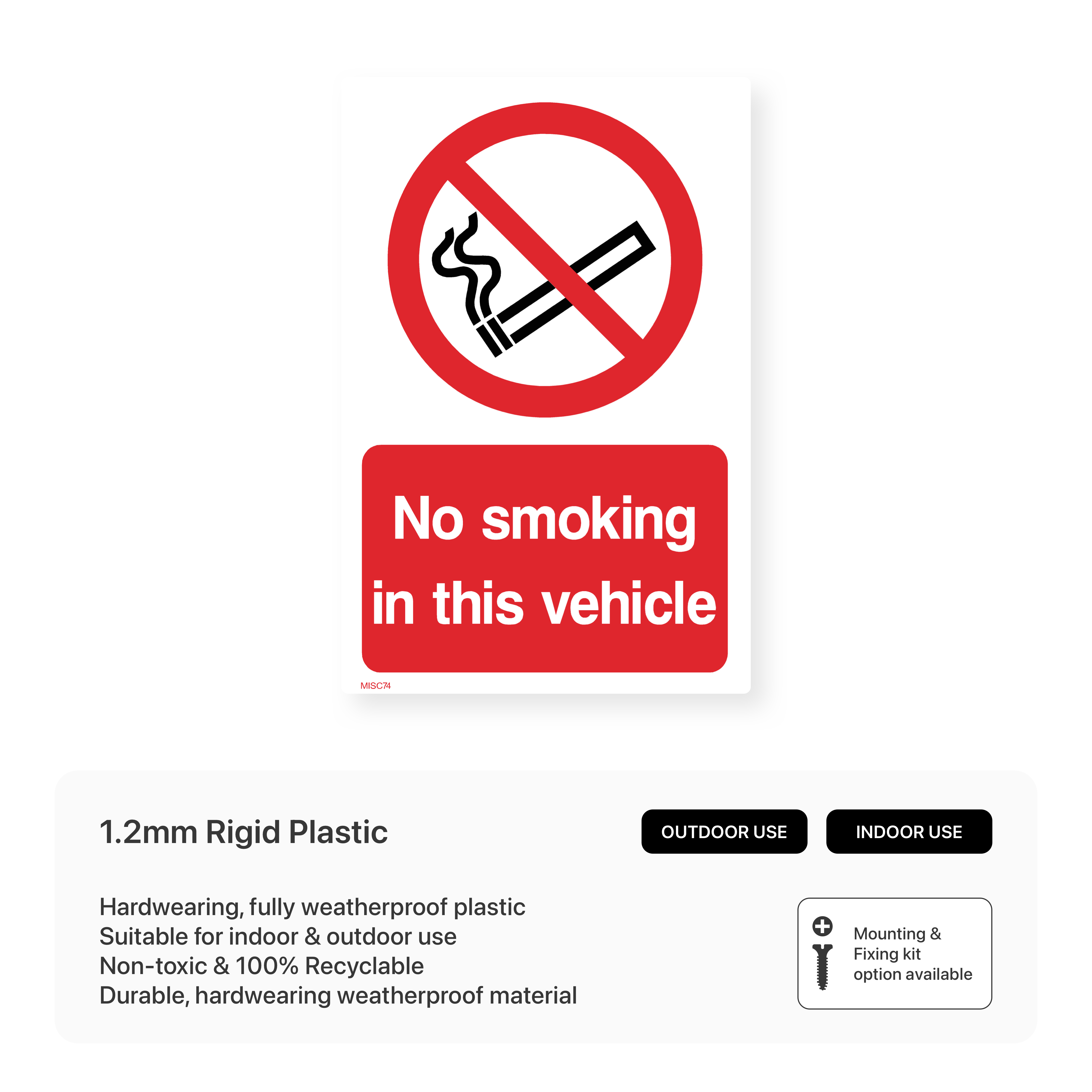 Enforce a smoke-free environment in your vehicles with our "No Smoking in This Vehicle" signs. Protect passengers from secondhand smoke and comply with regulations.
