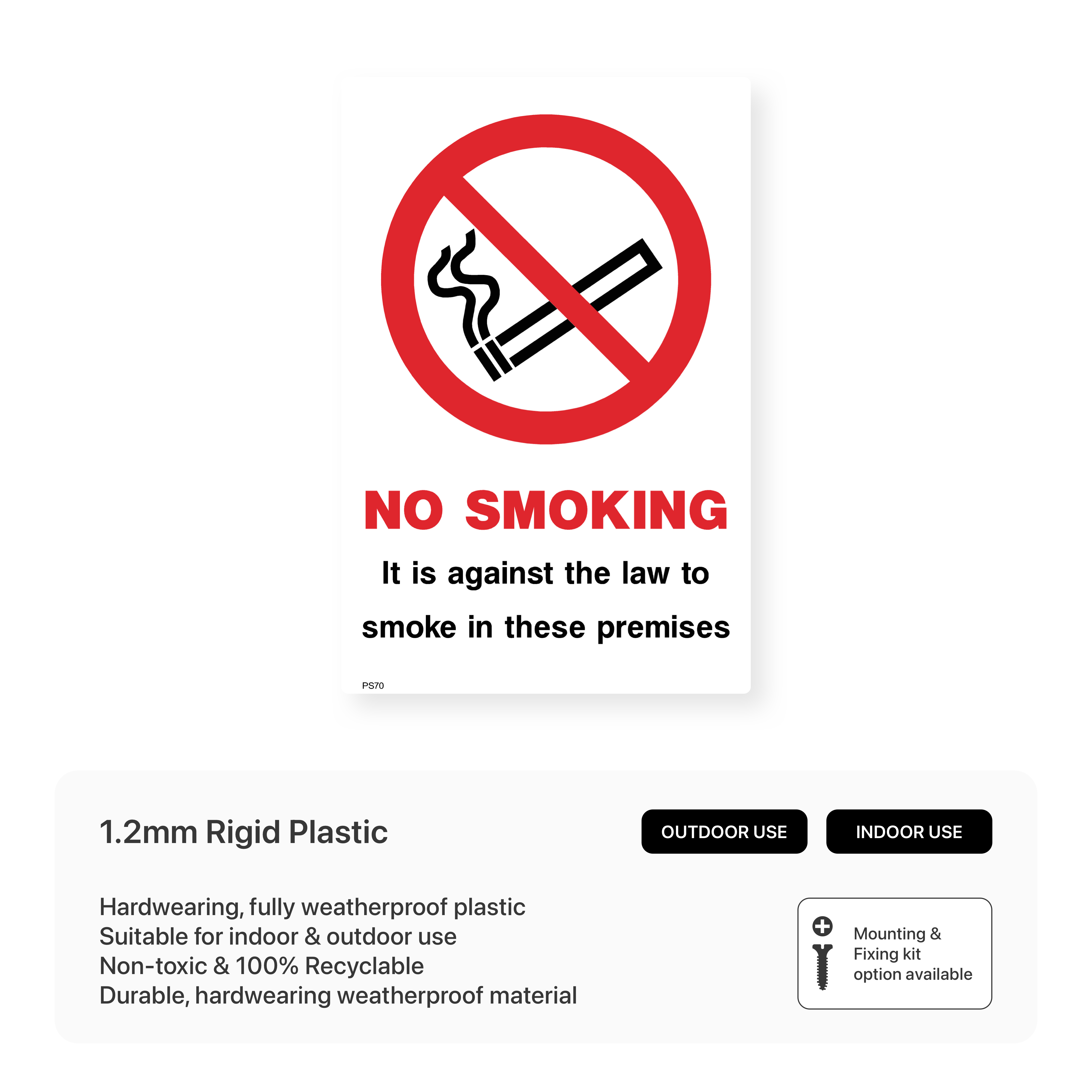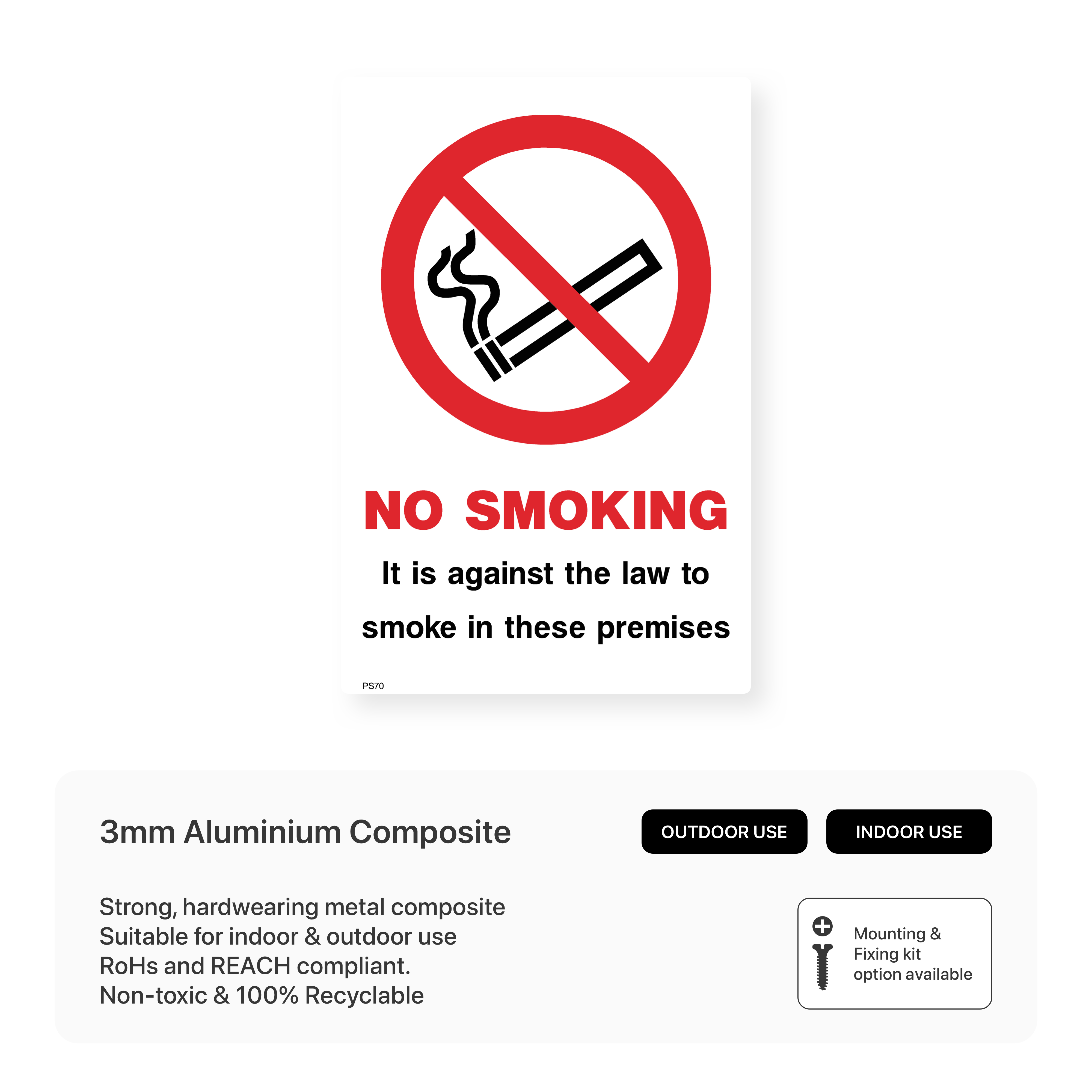 Clearly communicate the legal prohibition of smoking with this "NO SMOKING - It is against the law to smoke in these premises" sign. This sign reinforces compliance with regulations and deters smoking in areas where it is prohibited by law. Ensure a safe and healthy environment for everyone with this informative sign.