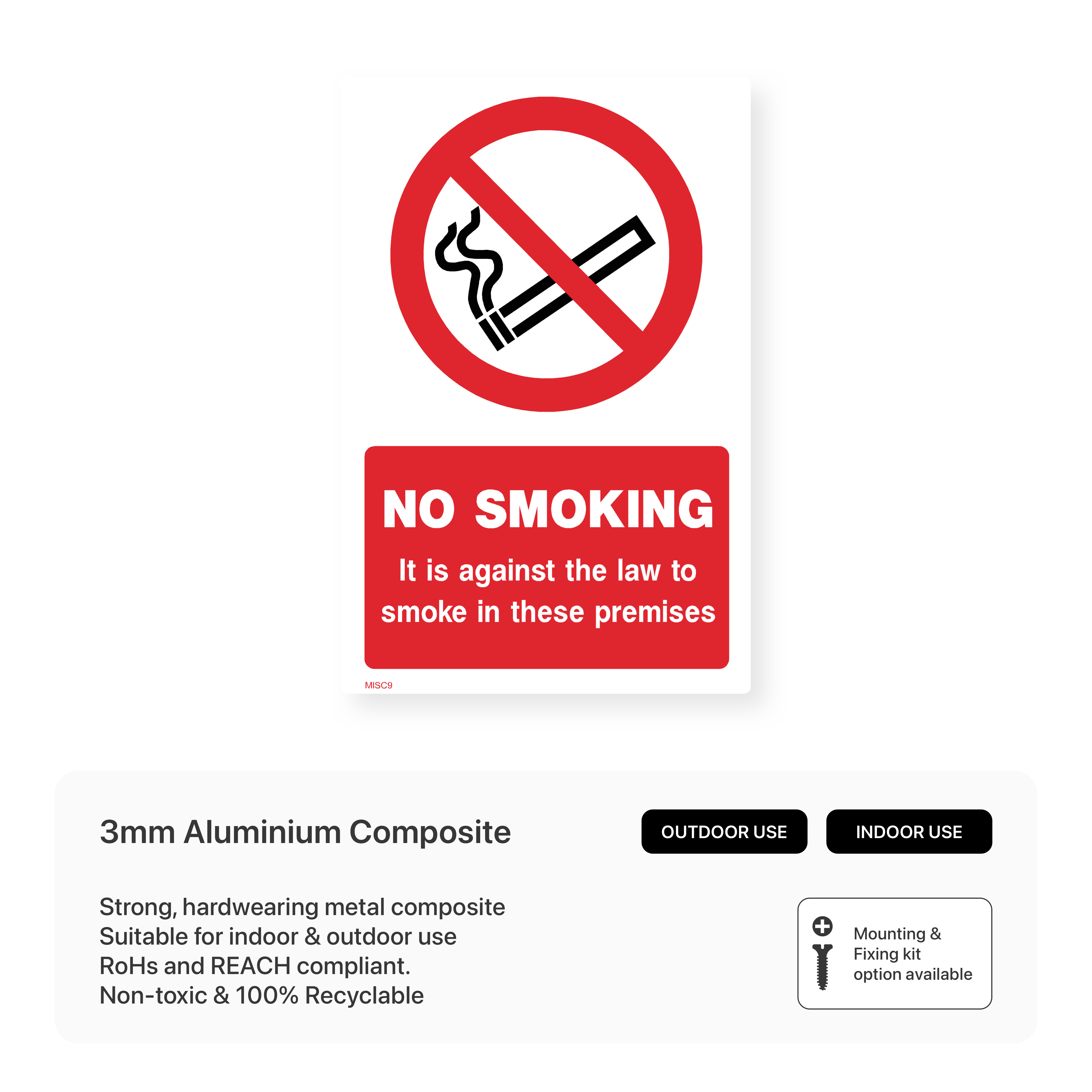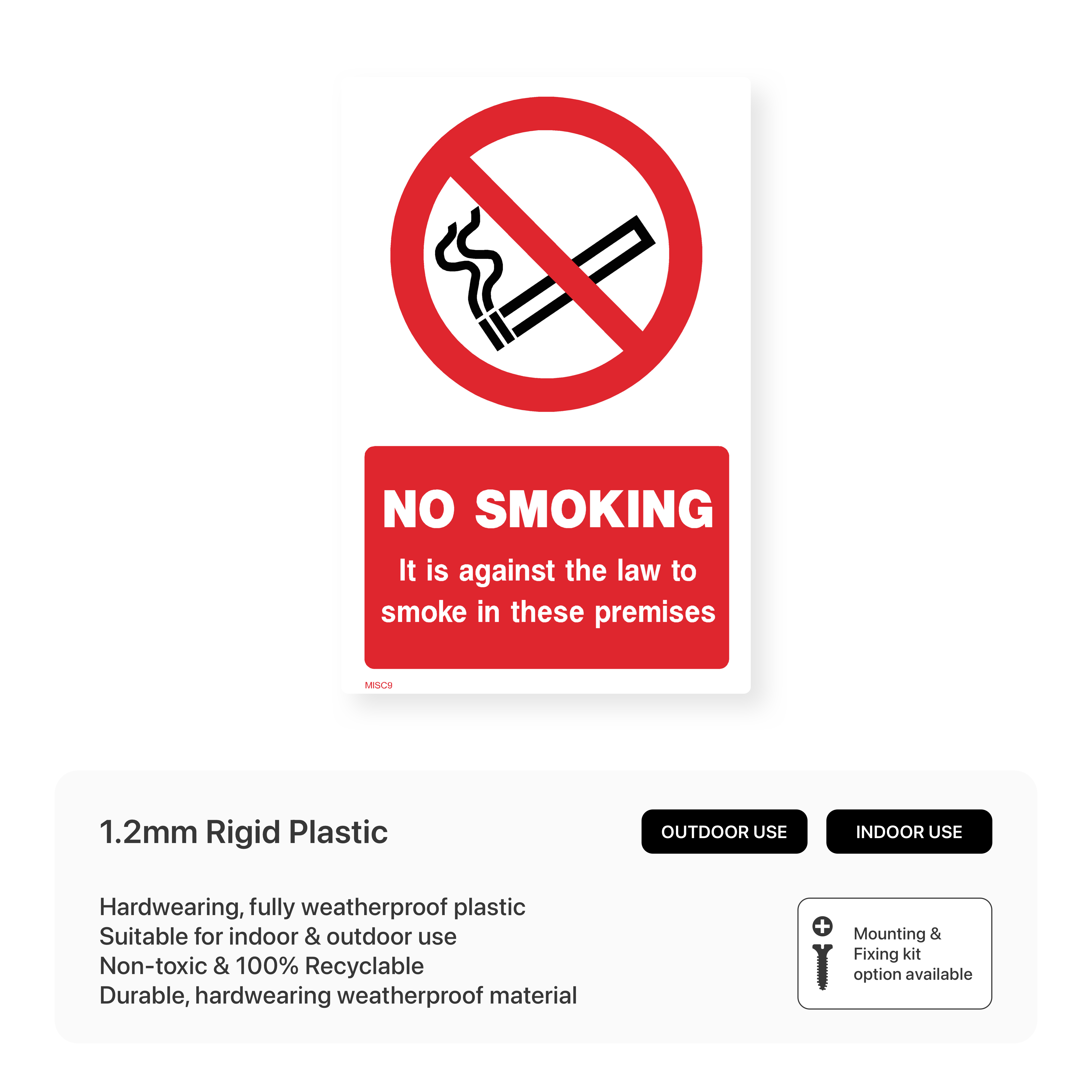 Clearly communicate smoking restrictions in your premises with our "No Smoking" signs. Comply with UK law and protect employees and visitors from secondhand smoke.