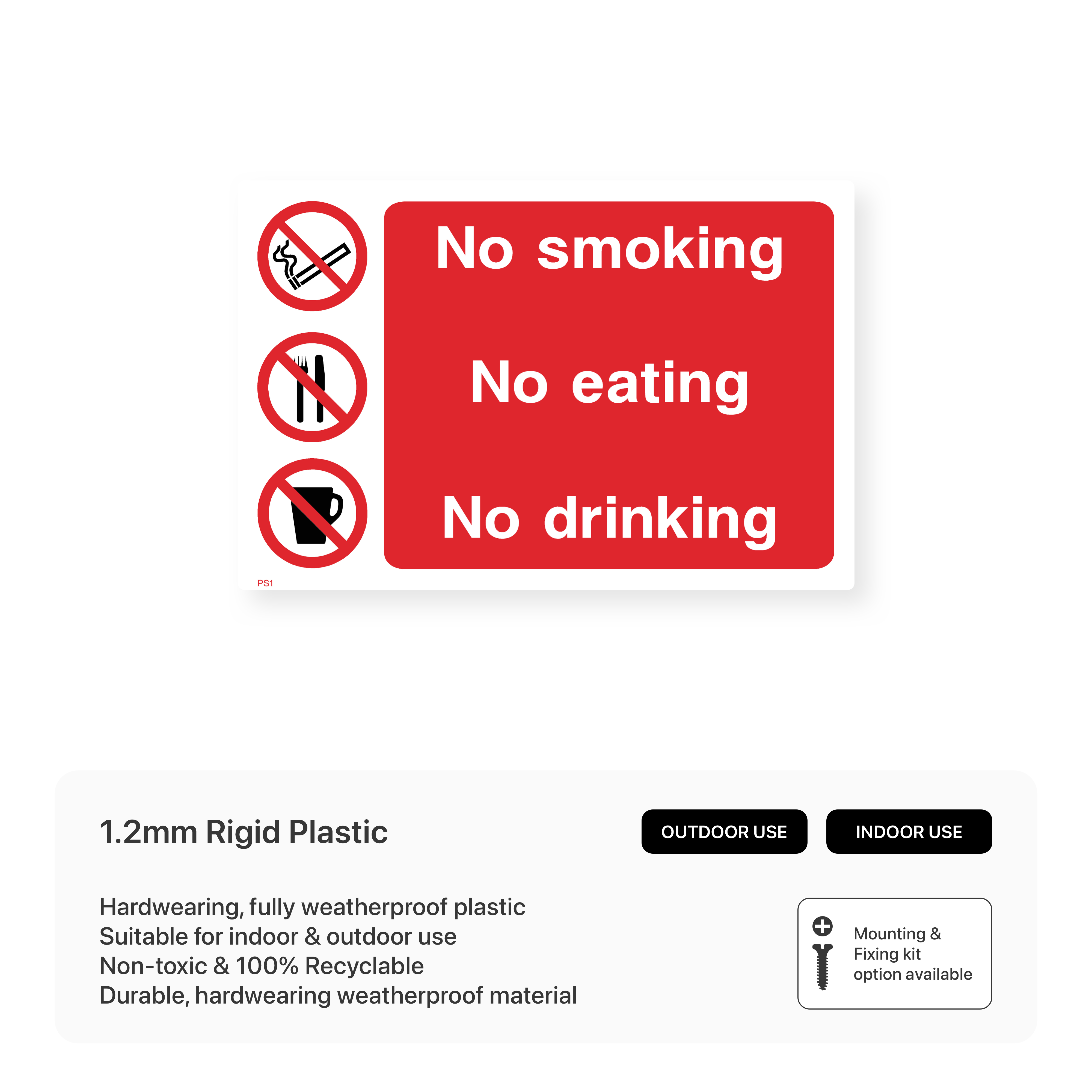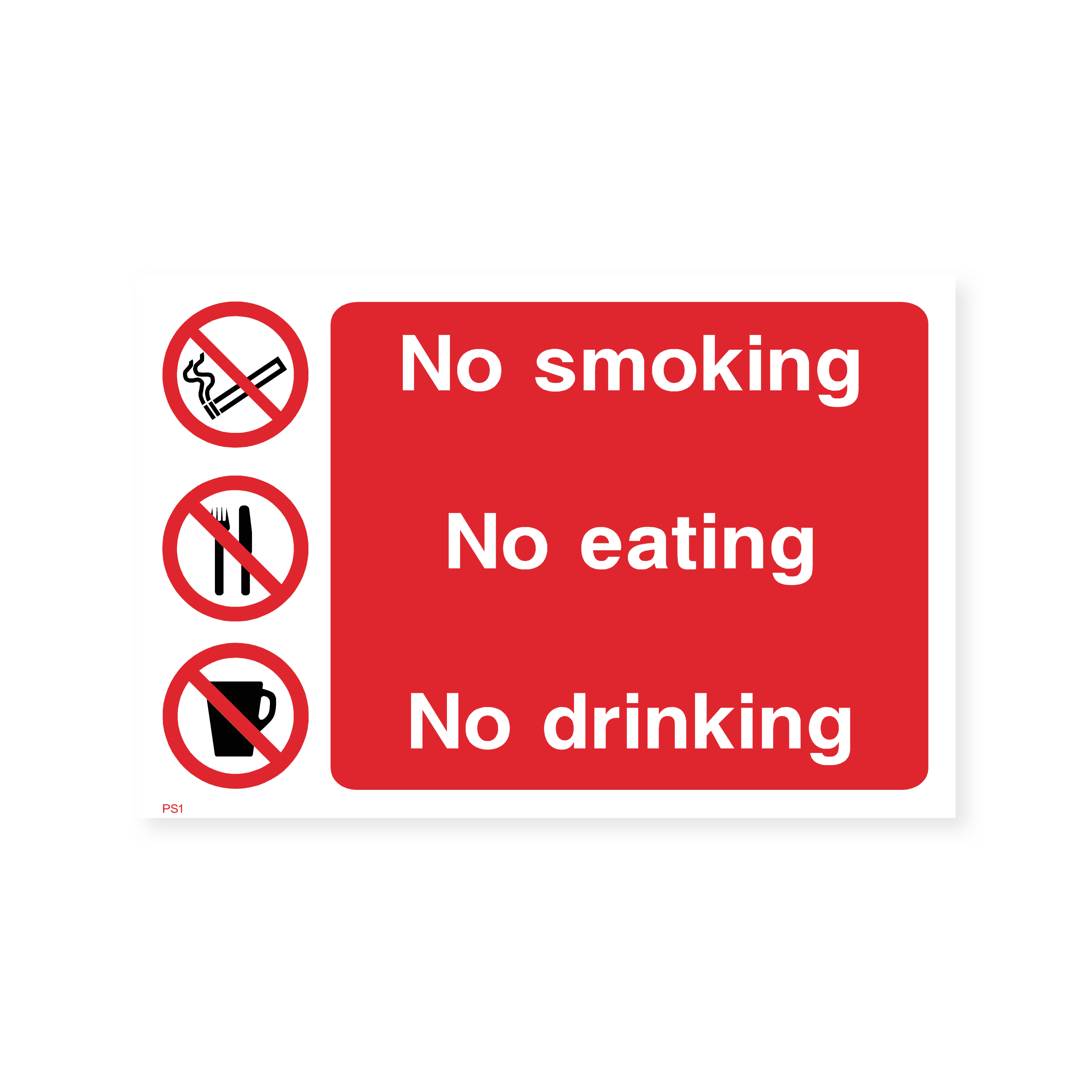 Maintain a clean and healthy environment with this clear and concise "No Smoking, No Eating, No Drinking" sign. Perfect for workplaces, public spaces, and any area where these activities are prohibited. Ensure compliance and promote a safe and pleasant atmosphere for everyone.