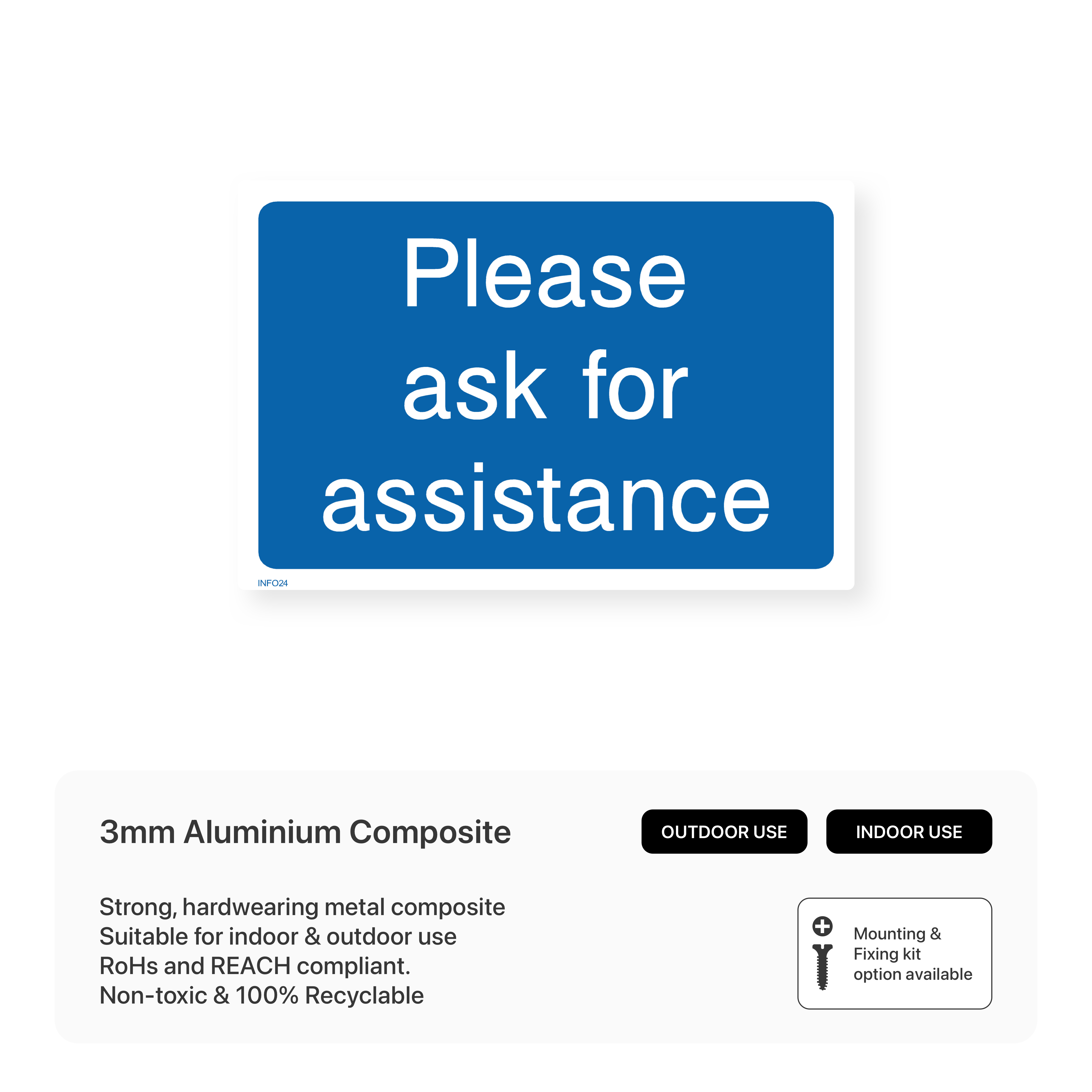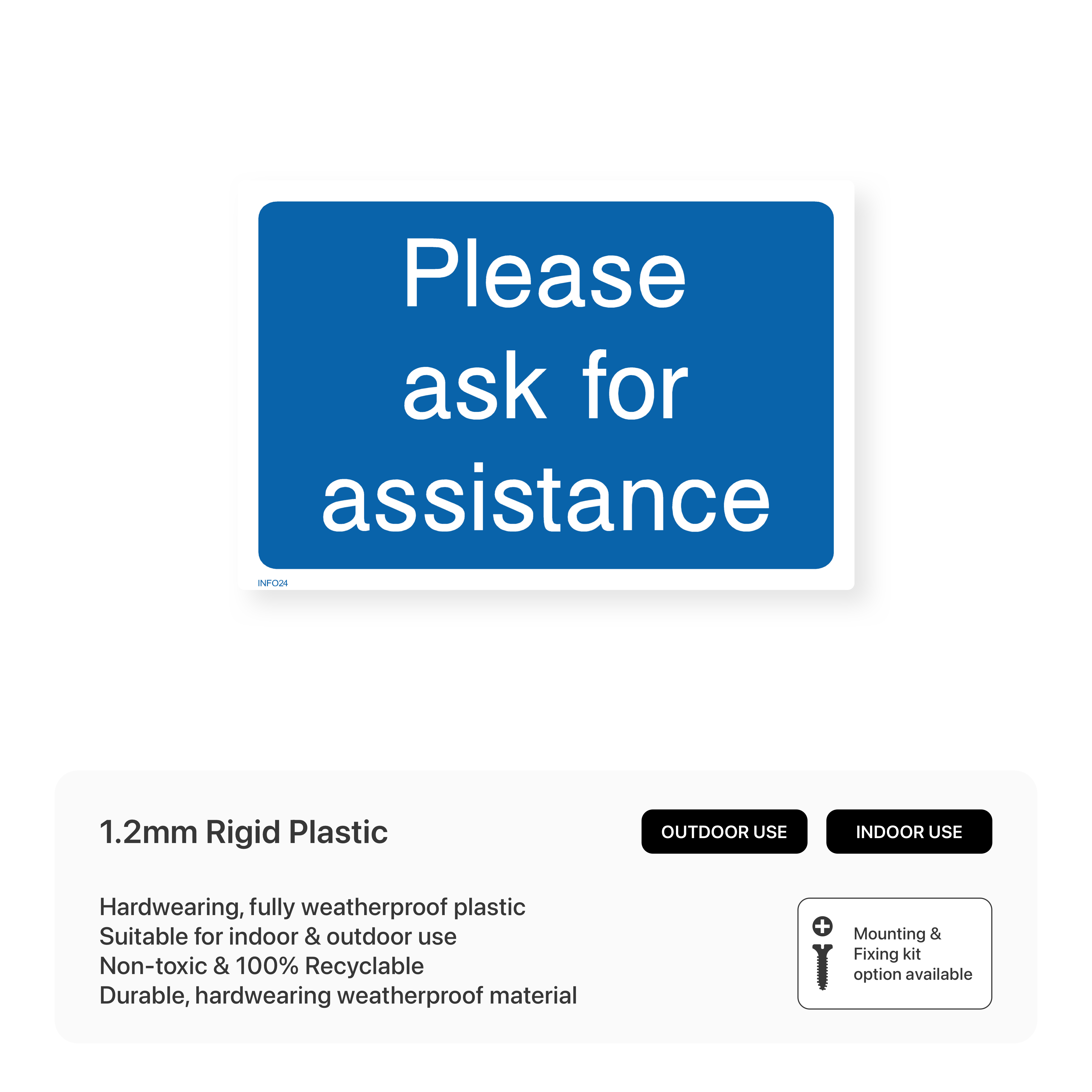 Improve customer service and provide support with our "Please ask for assistance" sign. This sign encourages customers or visitors to seek help from staff members if needed, ensuring a positive experience.