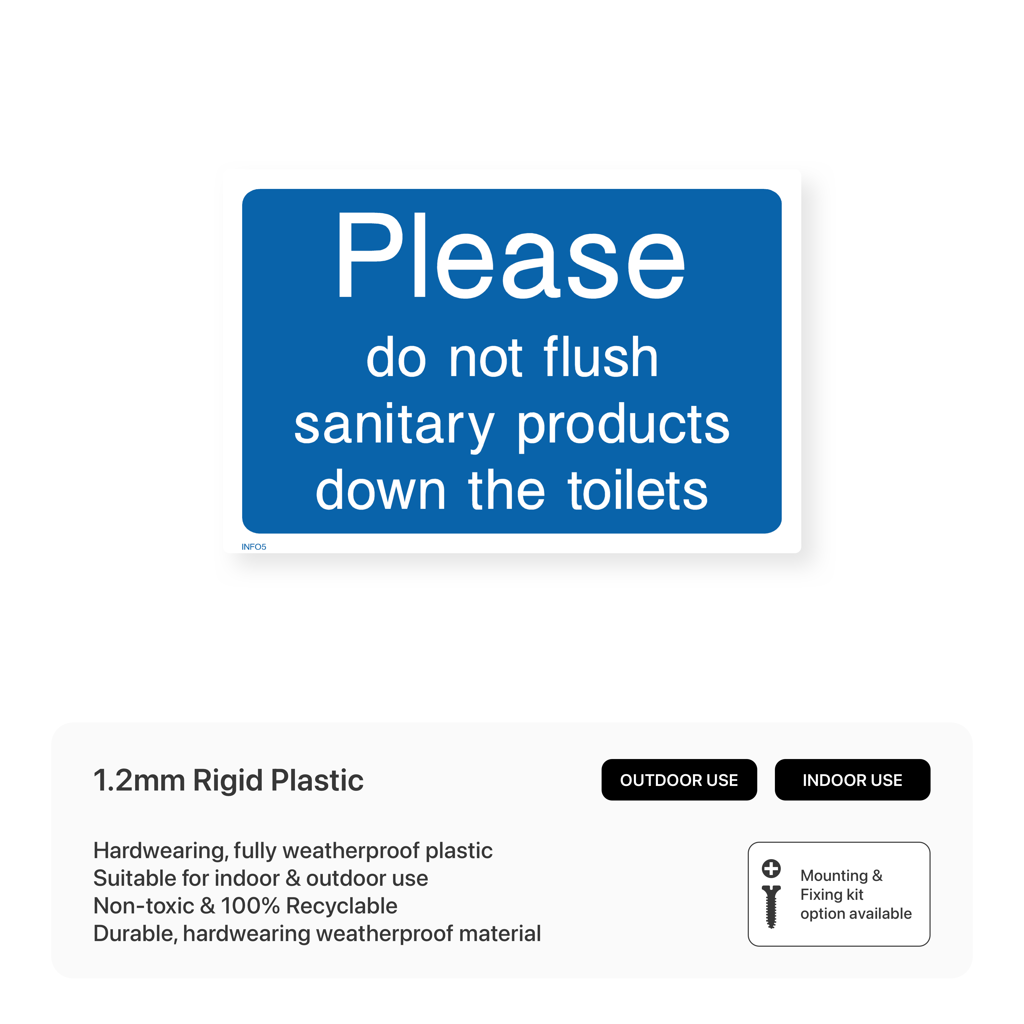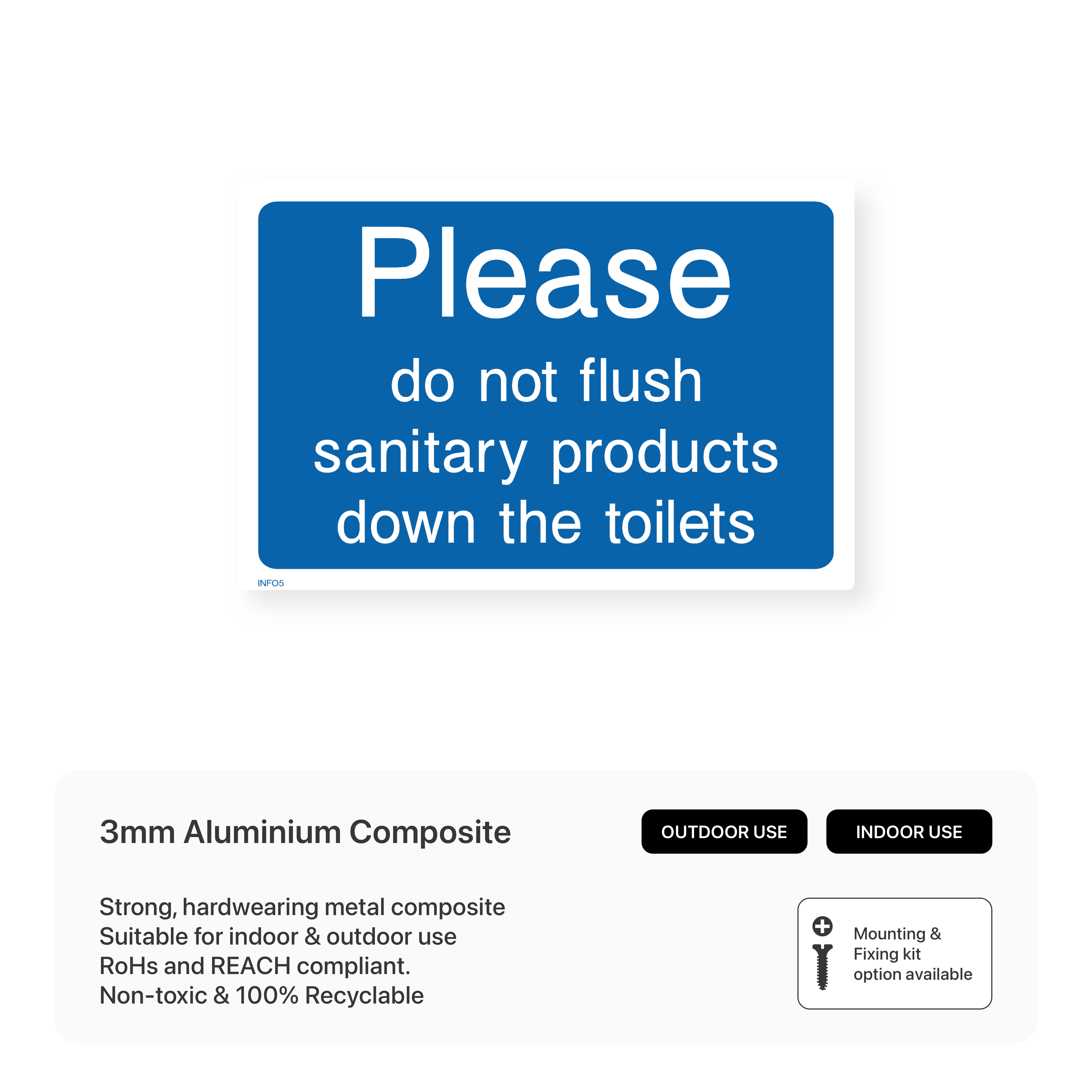 Prevent plumbing issues and maintain hygiene with our "Please do not flush sanitary products down the toilets" sign. This sign clearly instructs users on proper disposal of sanitary products, ensuring the functionality of the plumbing system.