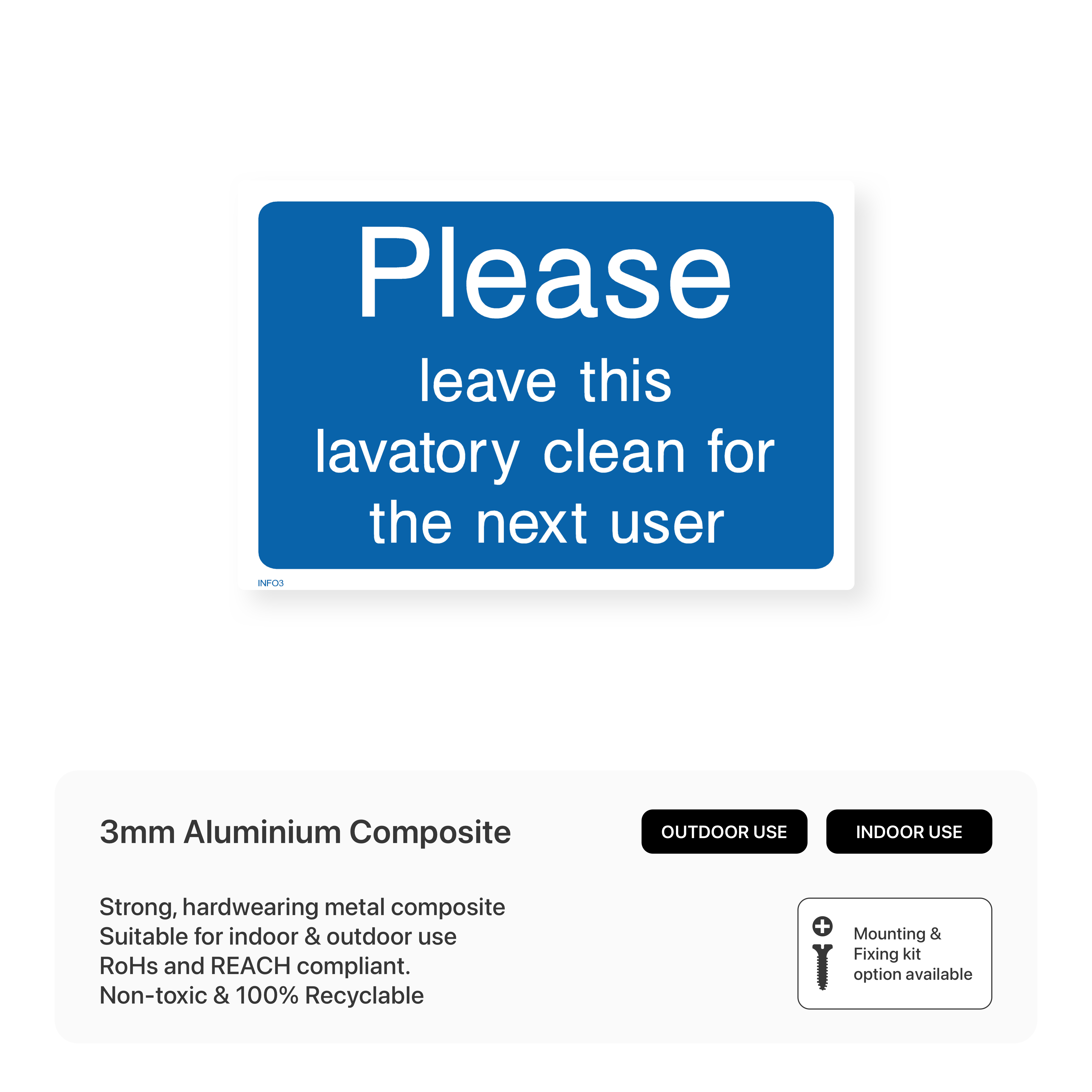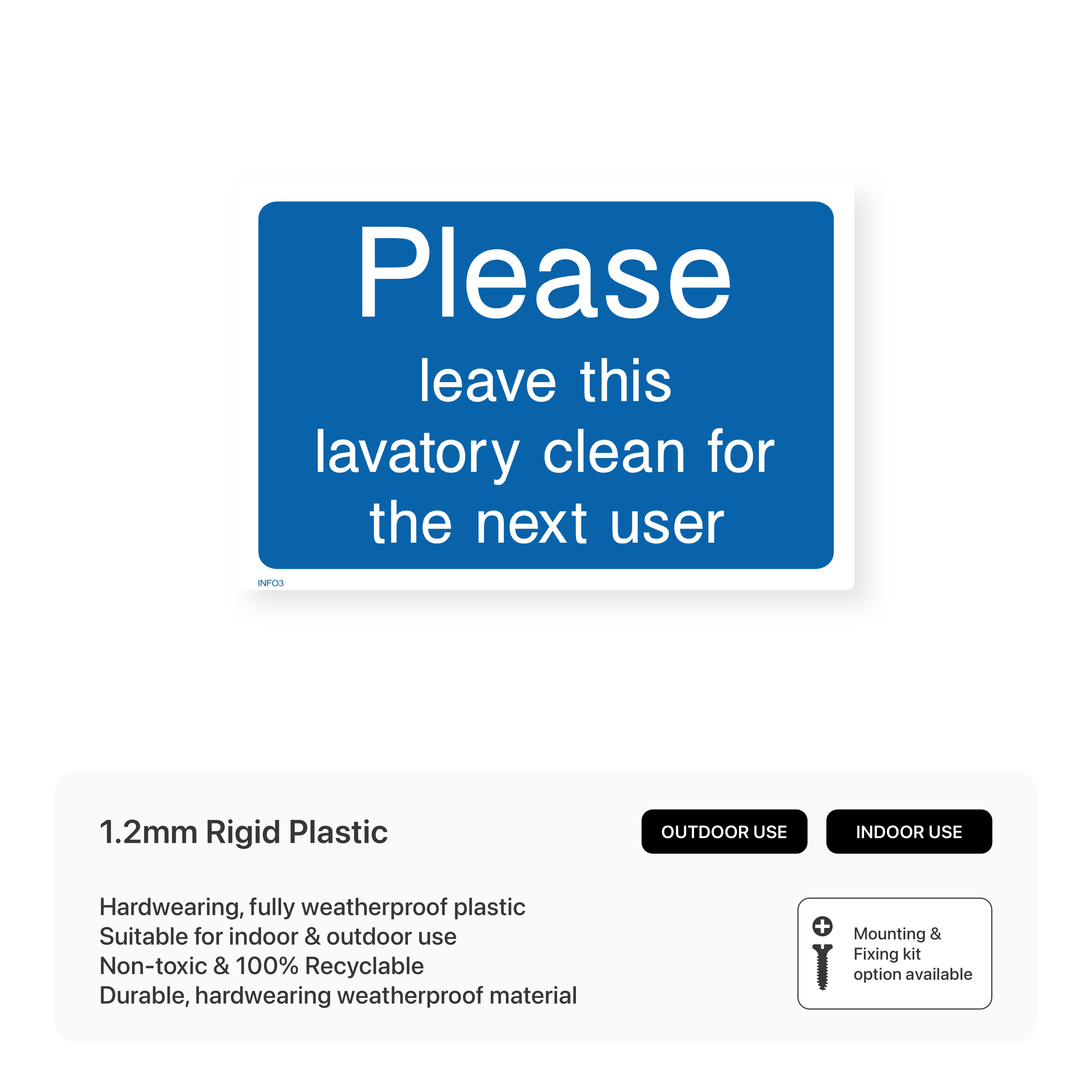 Encourage cleanliness and courtesy in restrooms with our "Please leave this lavatory clean for the next user" sign. This sign promotes a considerate environment by reminding users to leave the restroom clean for others.