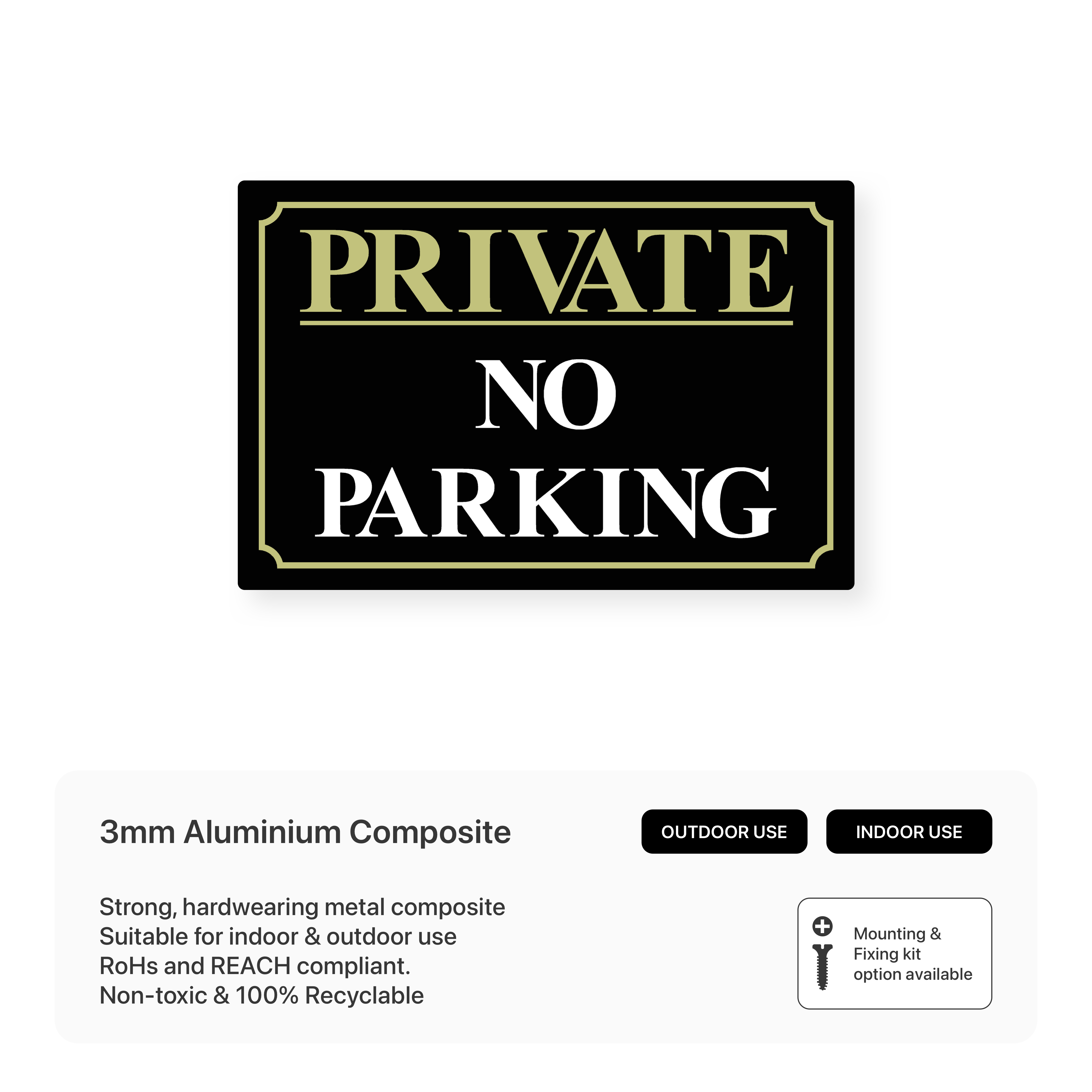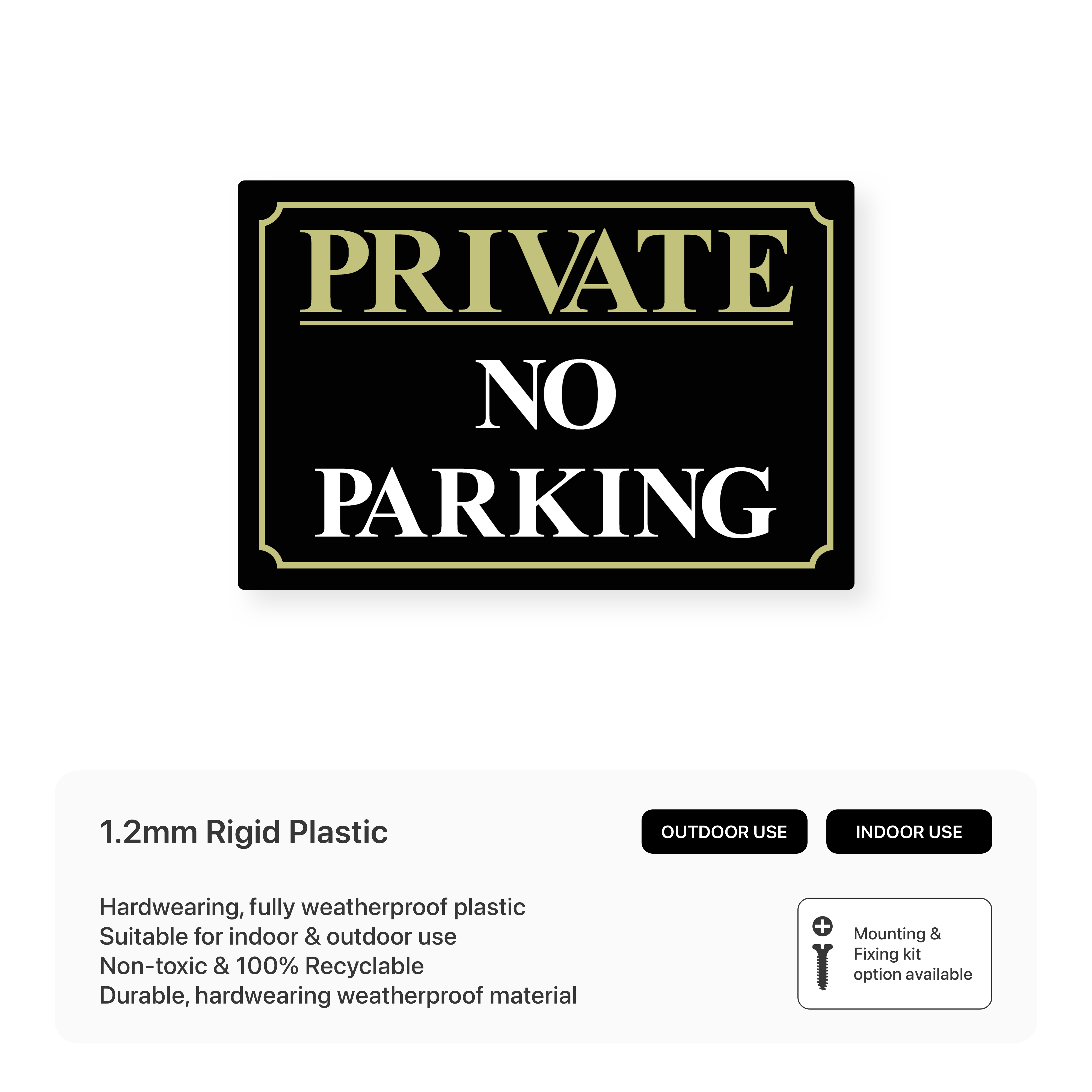 Prevent unauthorised parking on your private property with our "Private - No parking" sign. This sign clearly communicates that parking is restricted to authorized personnel, maintaining order and ensuring that spaces are available for residents and visitors.
