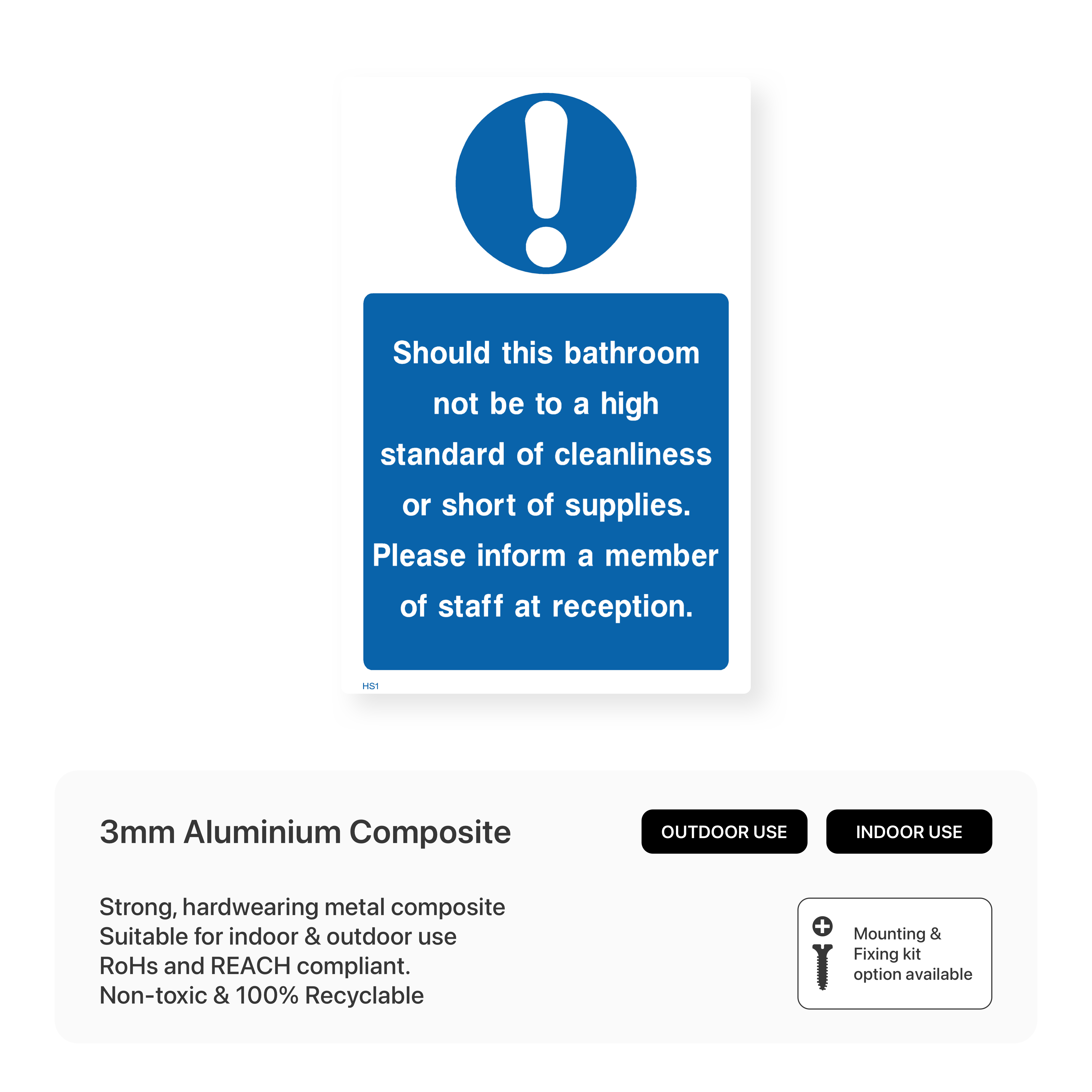 Help us maintain a high standard of cleanliness in our bathrooms with our feedback sign. Please notify reception if you find this bathroom unsatisfactory or lacking supplies. Your comfort is our priority.