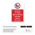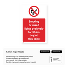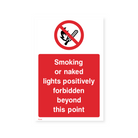 Prevent fire hazards and ensure safety with this "Smoking or Naked Lights Positively Forbidden Beyond This Point" sign. This sign clearly communicates the prohibition of smoking and open flames in hazardous areas, protecting both people and property.