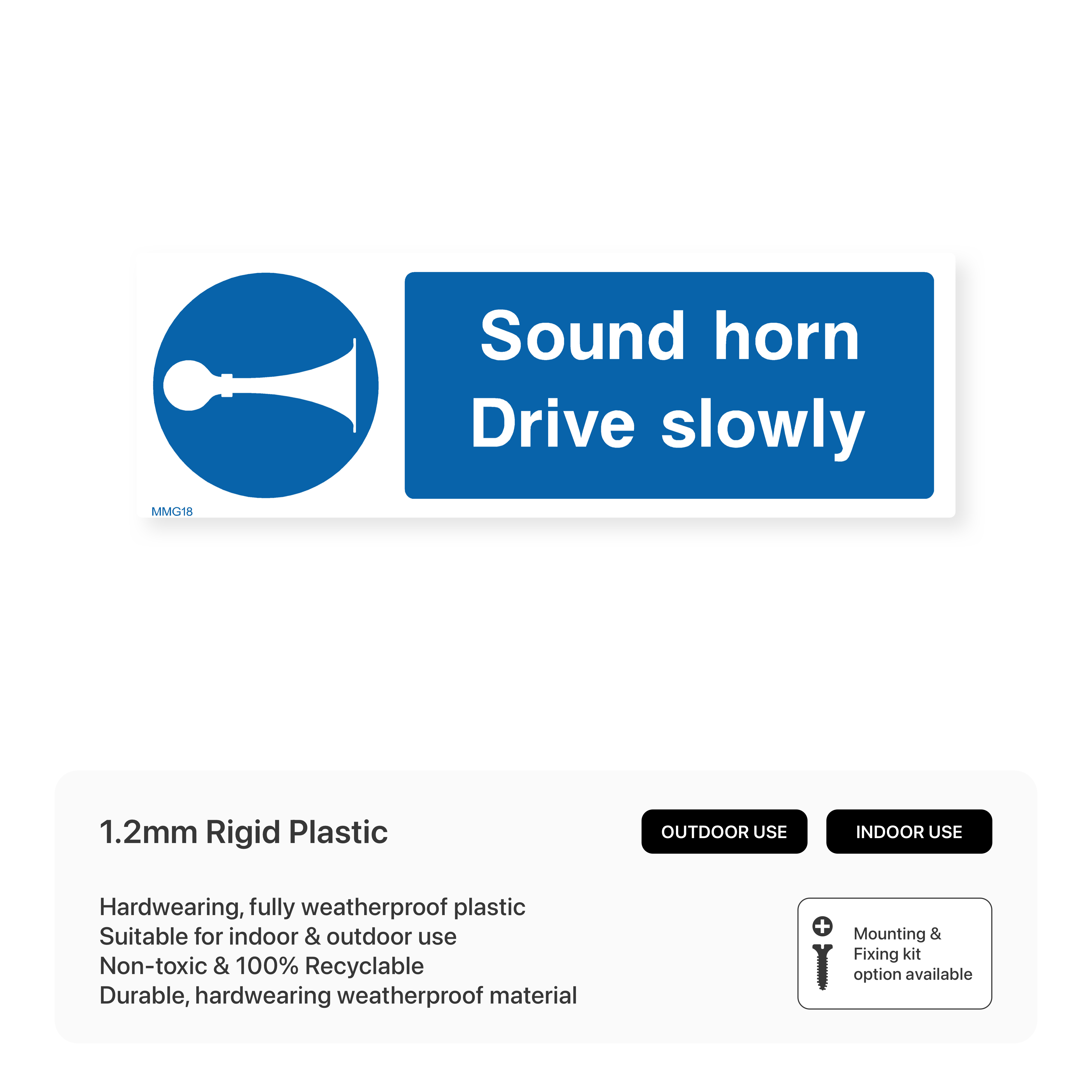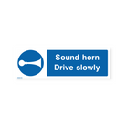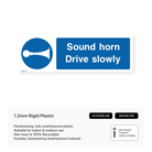 Improve safety in areas with limited visibility or potential hazards with our "Sound Horn Drive Slowly" signs. Encourage drivers to use their horns and proceed with caution. Available in various sizes and materials.
