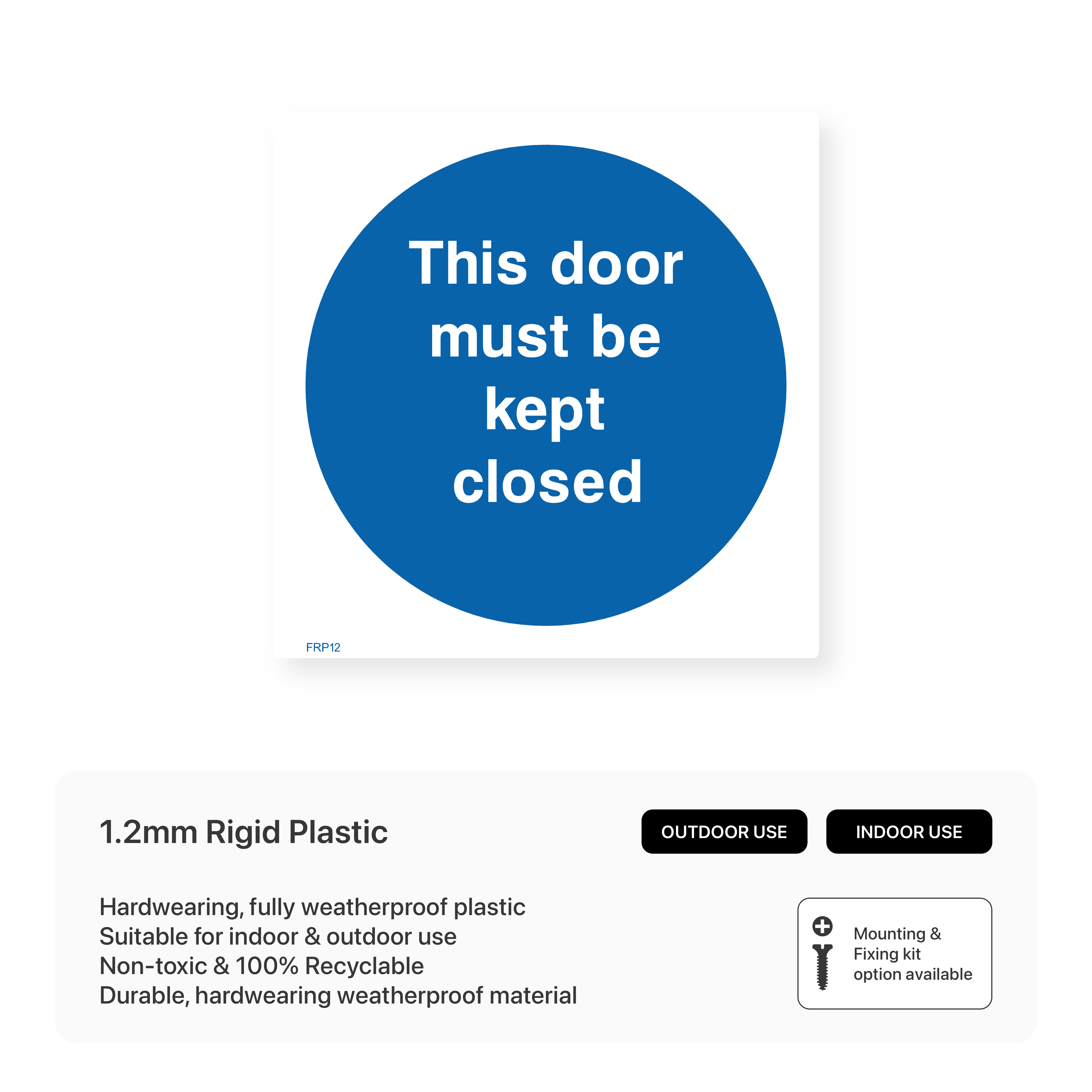 Promote fire safety and energy efficiency with our "This door must be kept closed" sign. This sign reminds individuals to close the door, helping to contain fires and maintain comfortable temperatures within the building.
