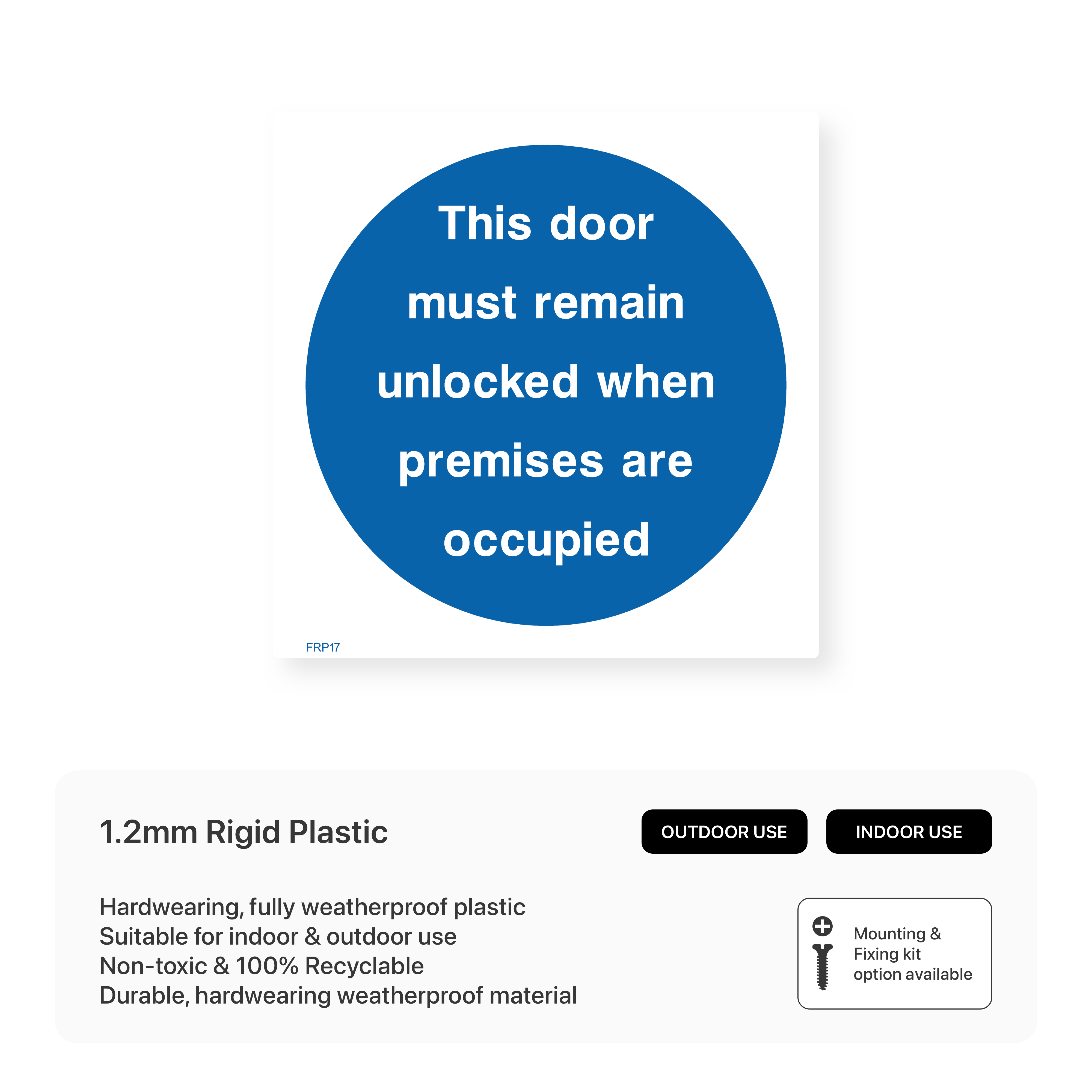 Ensure safety and accessibility with our "This door must remain unlocked when premises are occupied" sign. This sign clearly communicates fire safety requirements while ensuring accessibility during operating hours.