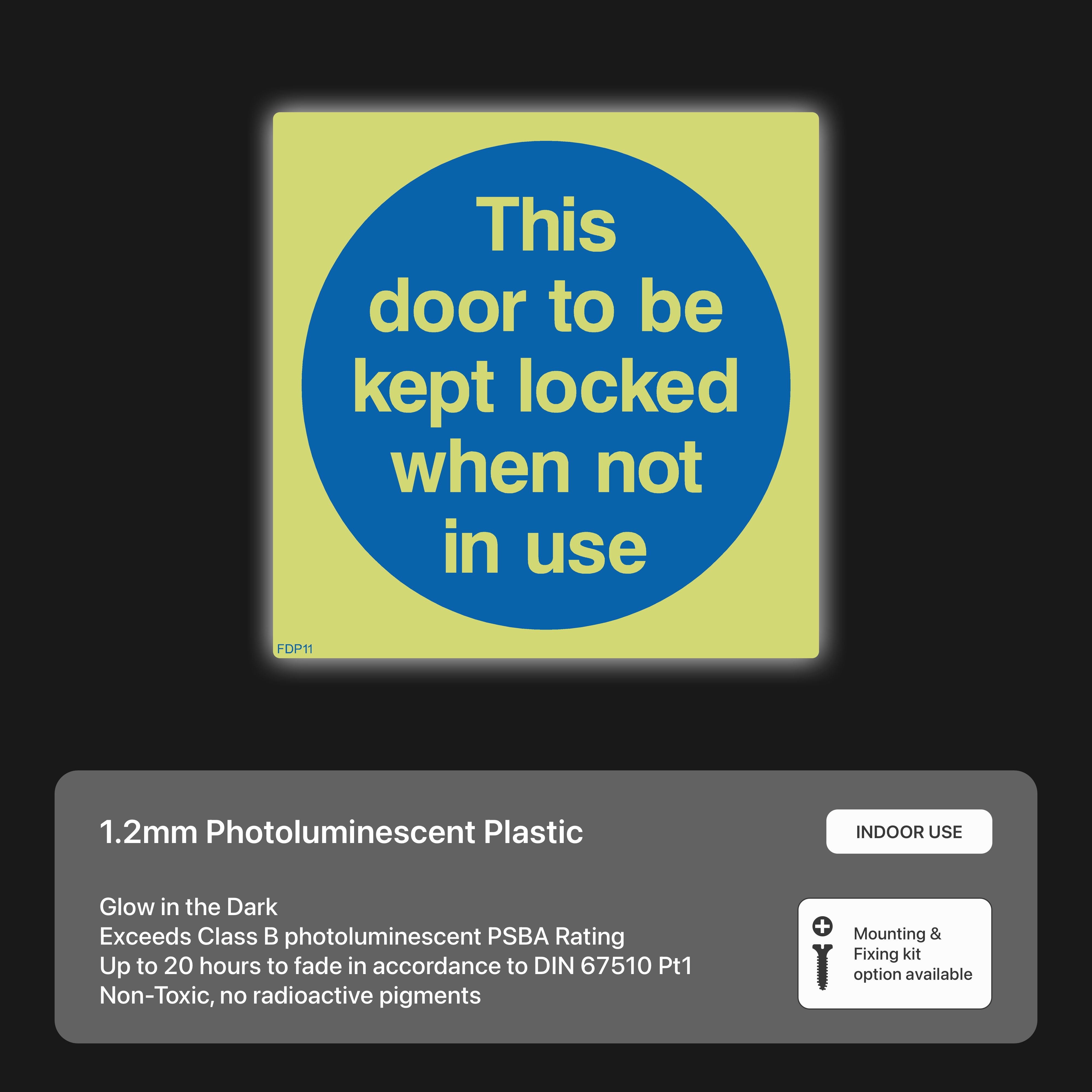Enhance security and control access with our "This door to be kept locked when not in use" sign. This sign clearly communicates that the door should be locked when not in use, preventing unauthorized access and protecting valuable assets.