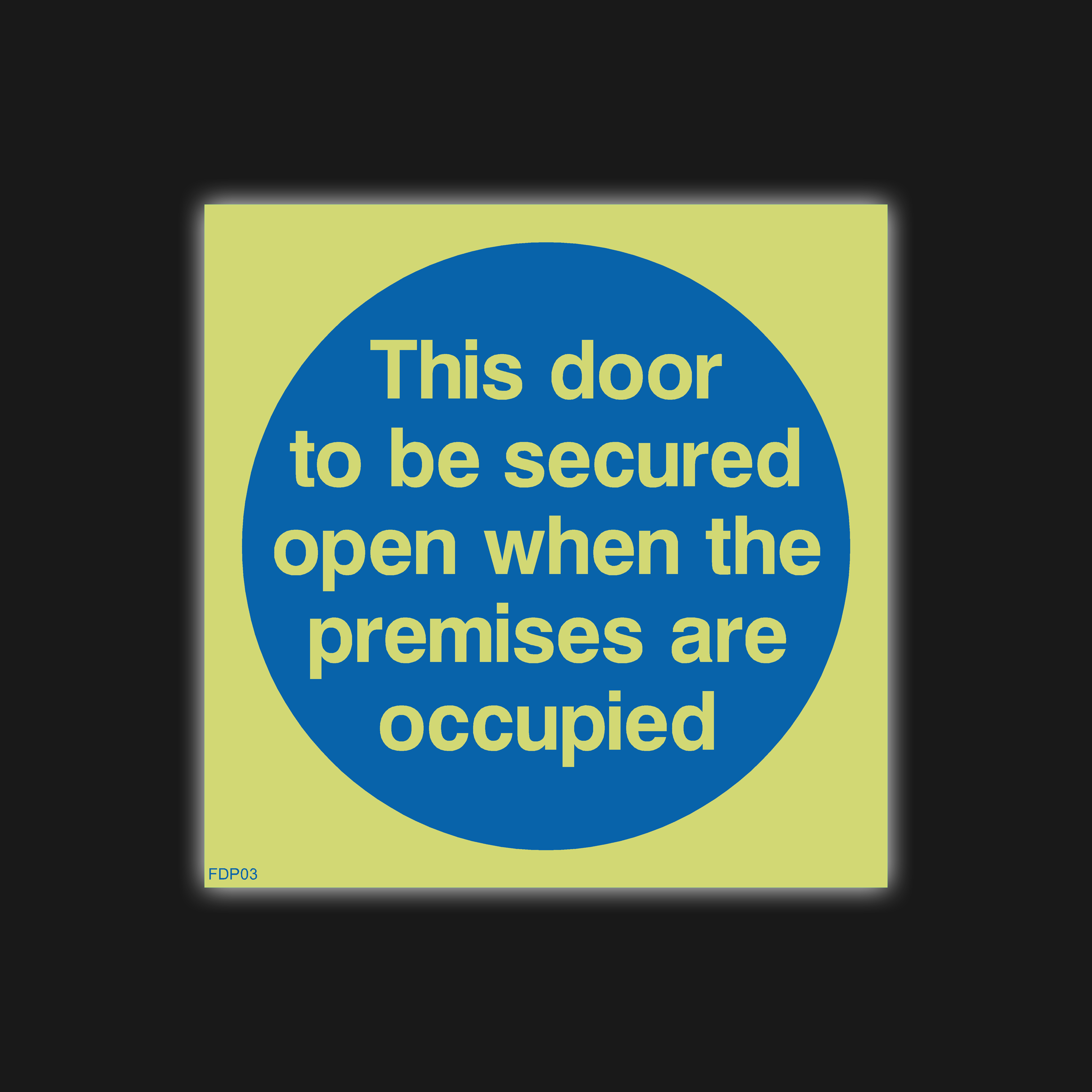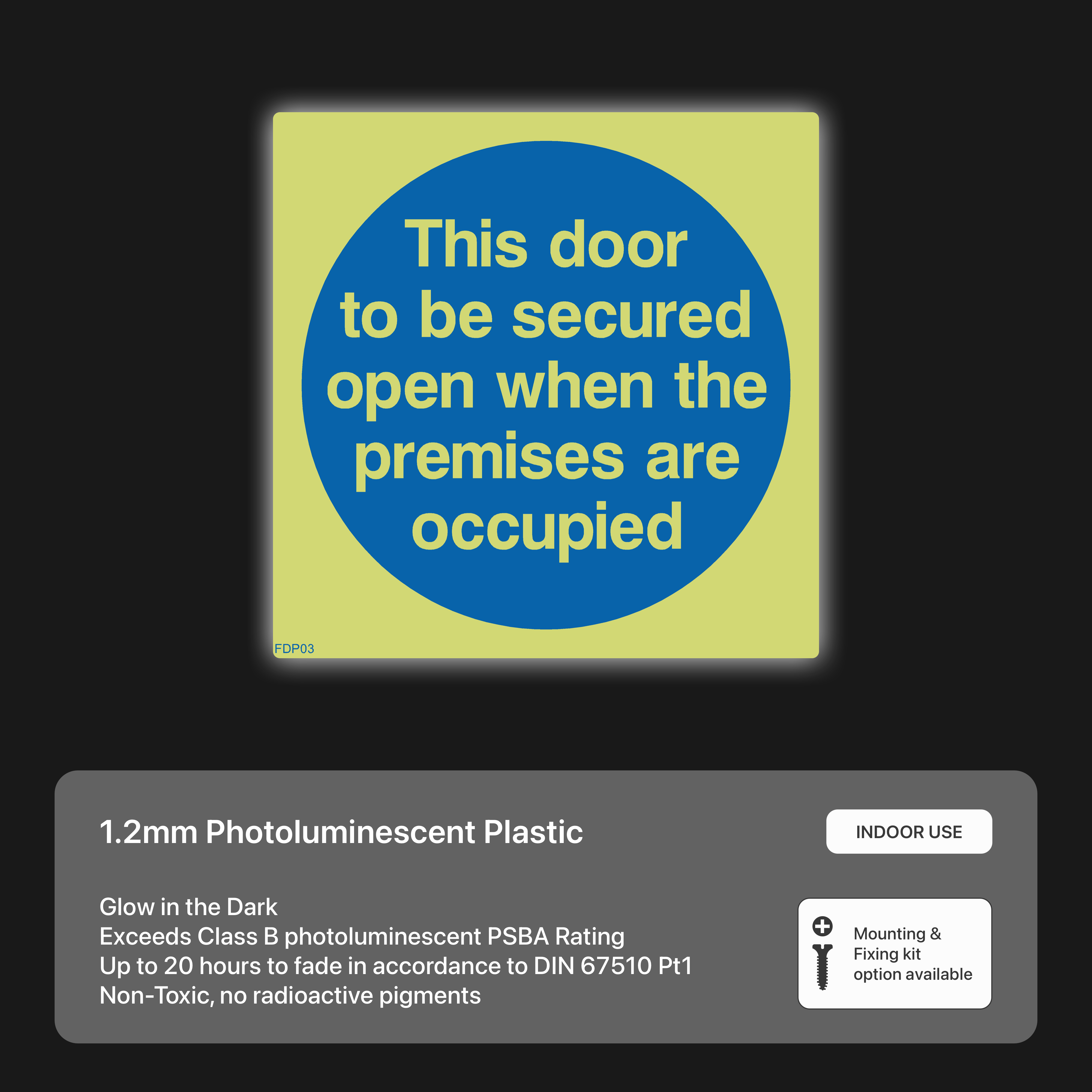 Manage fire safety and accessibility with our "This door to be secured open when the premises are occupied" sign. This sign clearly communicates fire safety requirements while ensuring accessibility during operating hours.