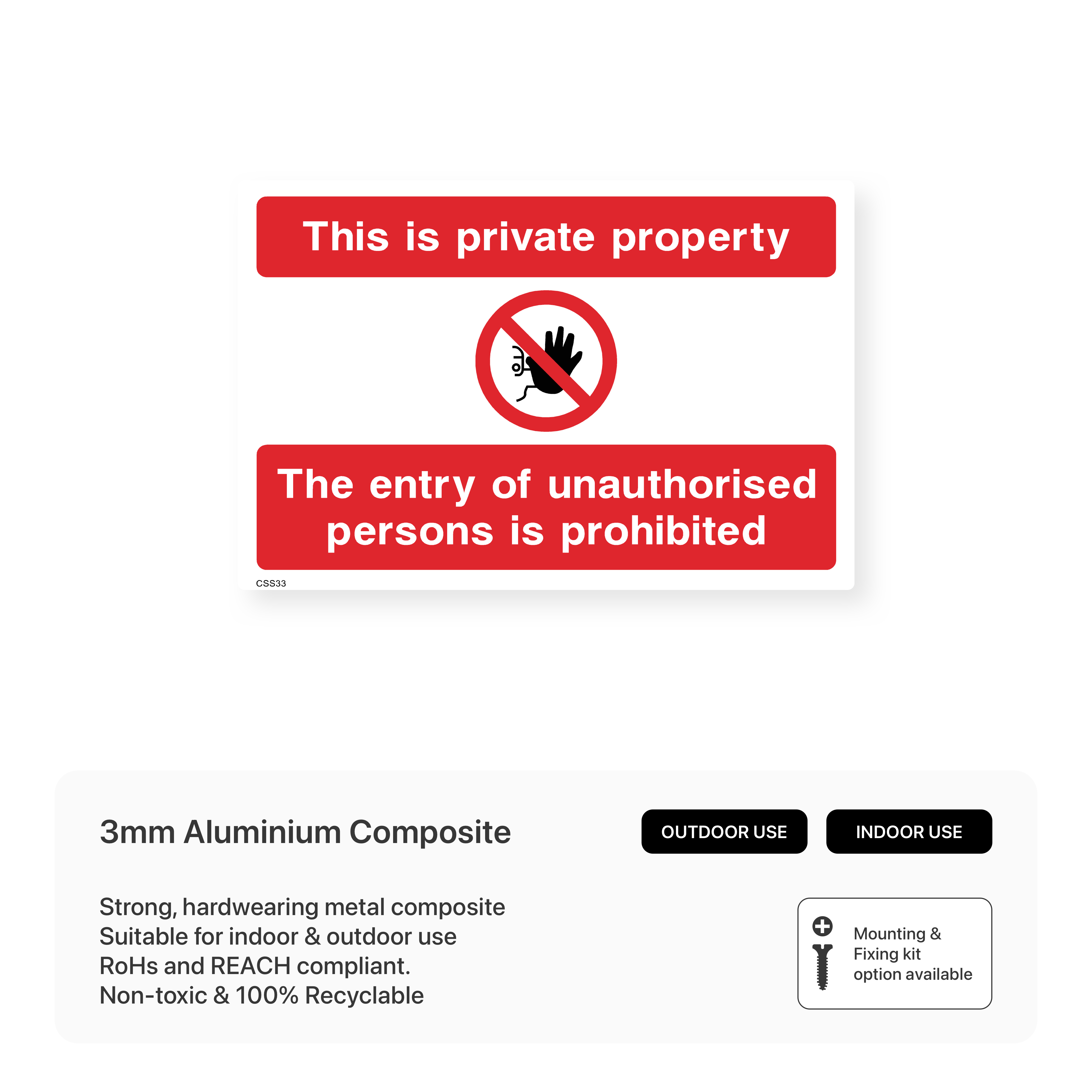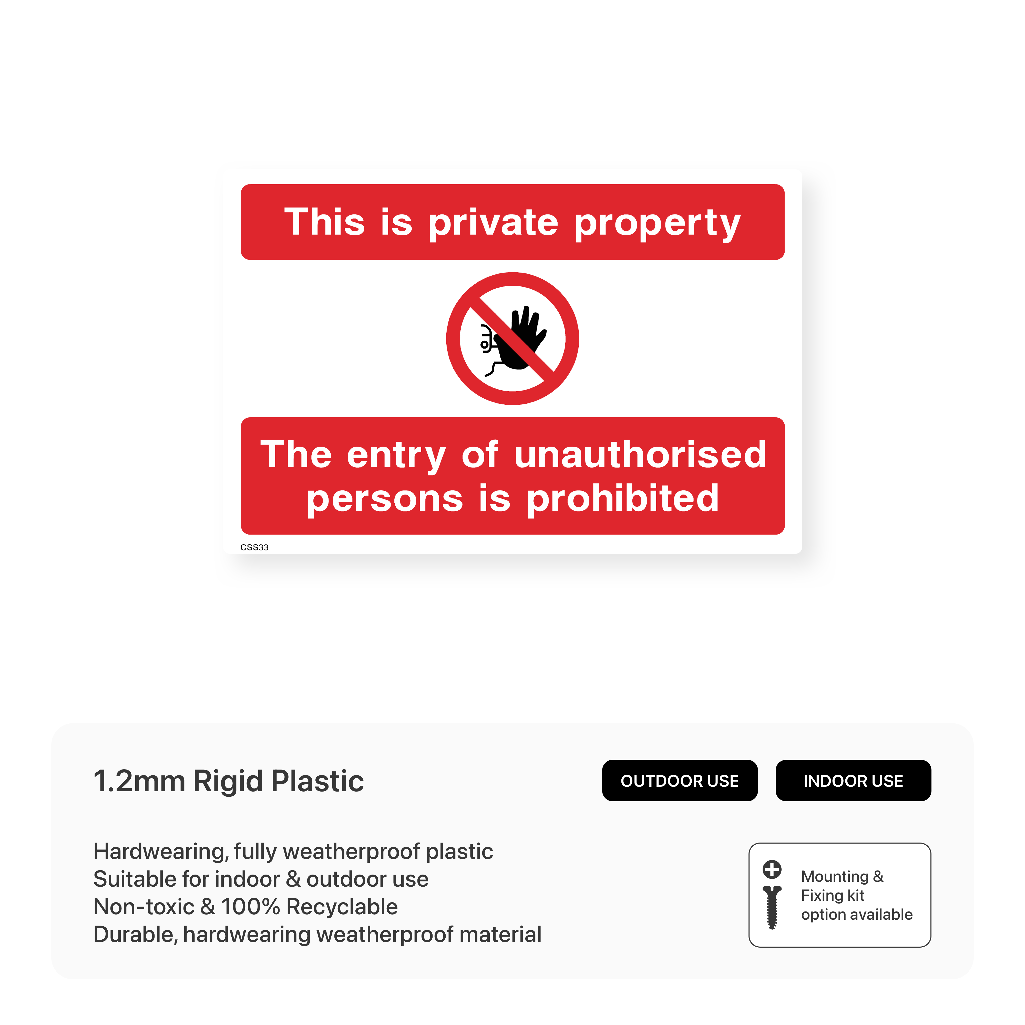 Secure your construction site with our "This is a private property" sign. Clearly communicate that the area is private and that unauthorised entry is prohibited, deterring trespassers and protecting your property.