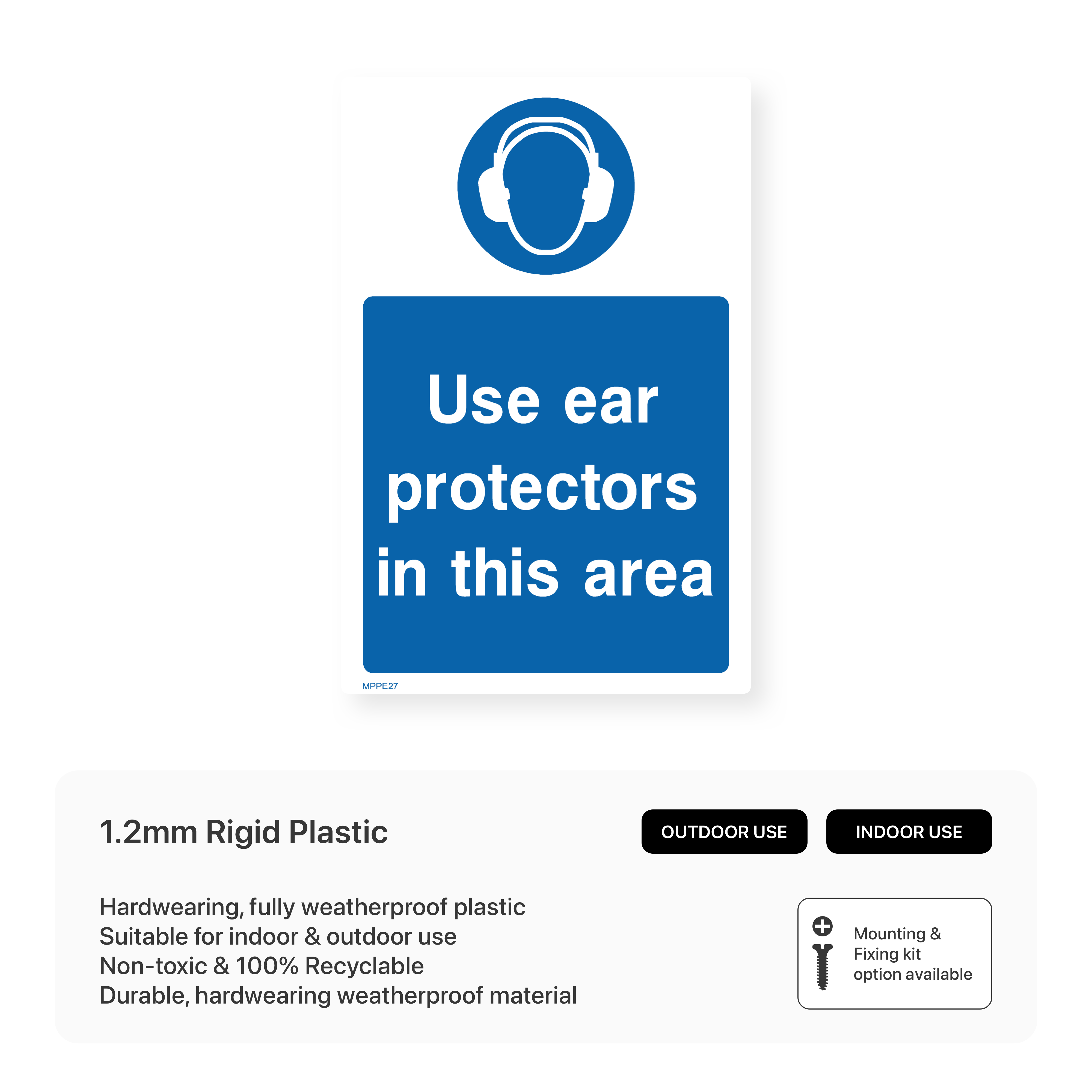 Protect your employees' hearing in noisy environments with our "Use Ear Protectors in This Area" portrait sign. Clearly mark designated areas where ear protection is mandatory to prevent hearing damage and ensure compliance with safety regulations. Choose from various sizes and materials to suit your specific needs and create a safer workplace.
