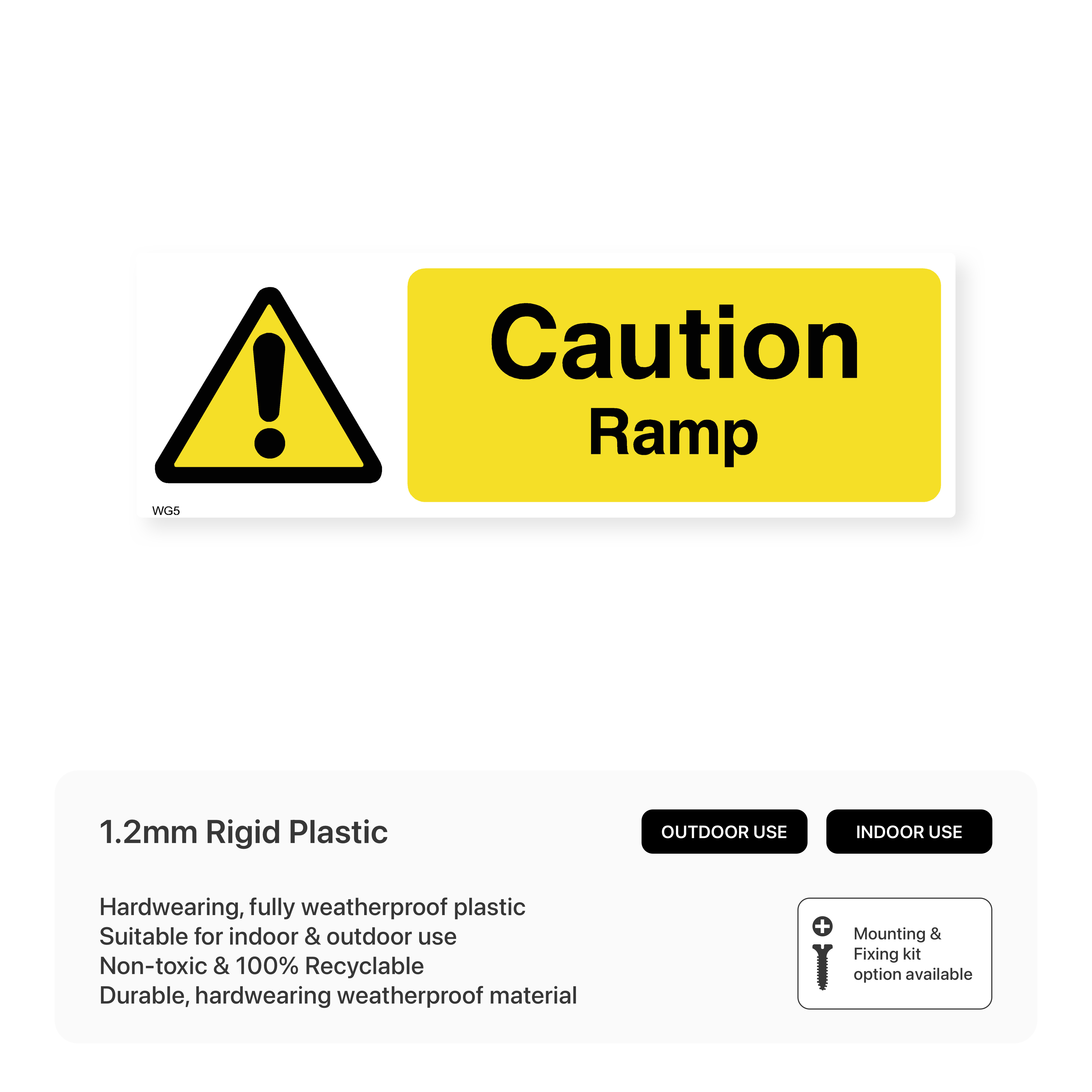 Alert pedestrians and drivers to the presence of a ramp with this sign. It helps to prevent slips, trips, and falls, especially in wet or icy conditions.