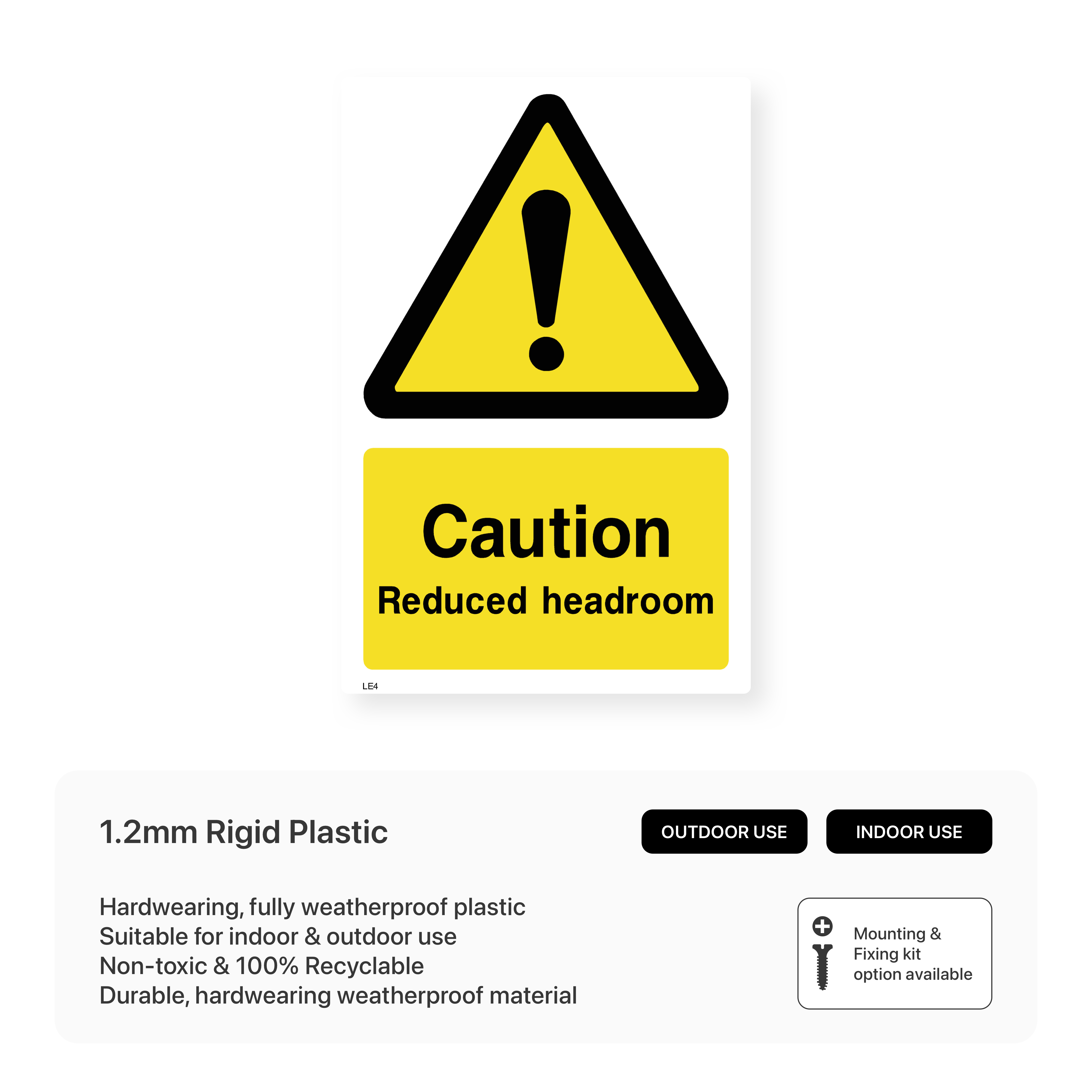 Prevent head injuries and ensure passenger safety with this "Caution - Reduced headroom" sign. This clear warning is ideal for lifts with limited headspace, reminding users to be mindful of their surroundings and avoid potential accidents.