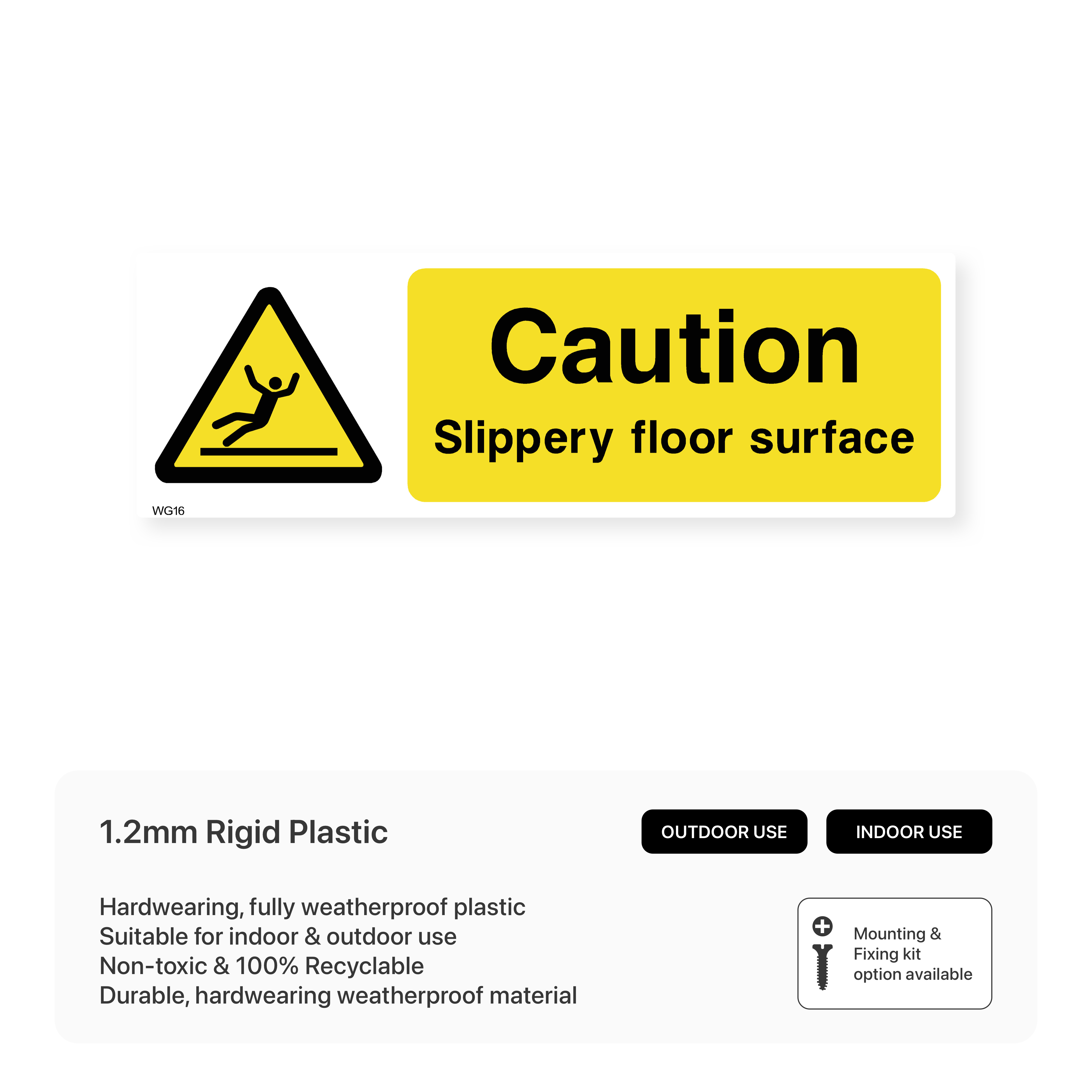 Ensure safety in your workplace with our "Caution - Slippery Floor Surface" sign. Clearly communicates the risk of slippery floors to prevent accidents and injuries. Suitable for various environments, this sign is a must-have for maintaining a safe workplace.