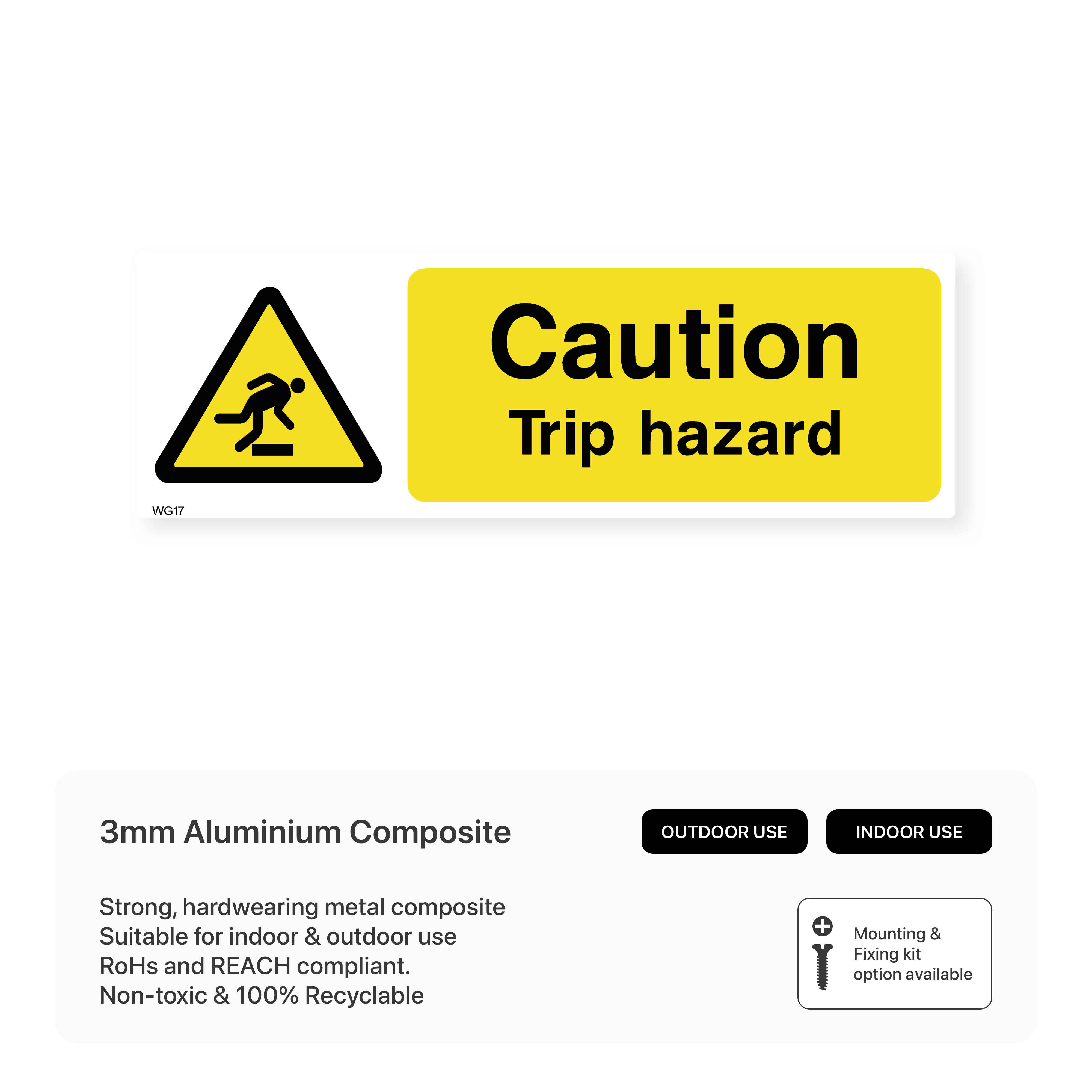 Prevent trips and falls in your workplace with our highly visible "Caution - Trip Hazard" sign. This durable sign effectively alerts individuals to potential tripping hazards, reducing the risk of accidents.