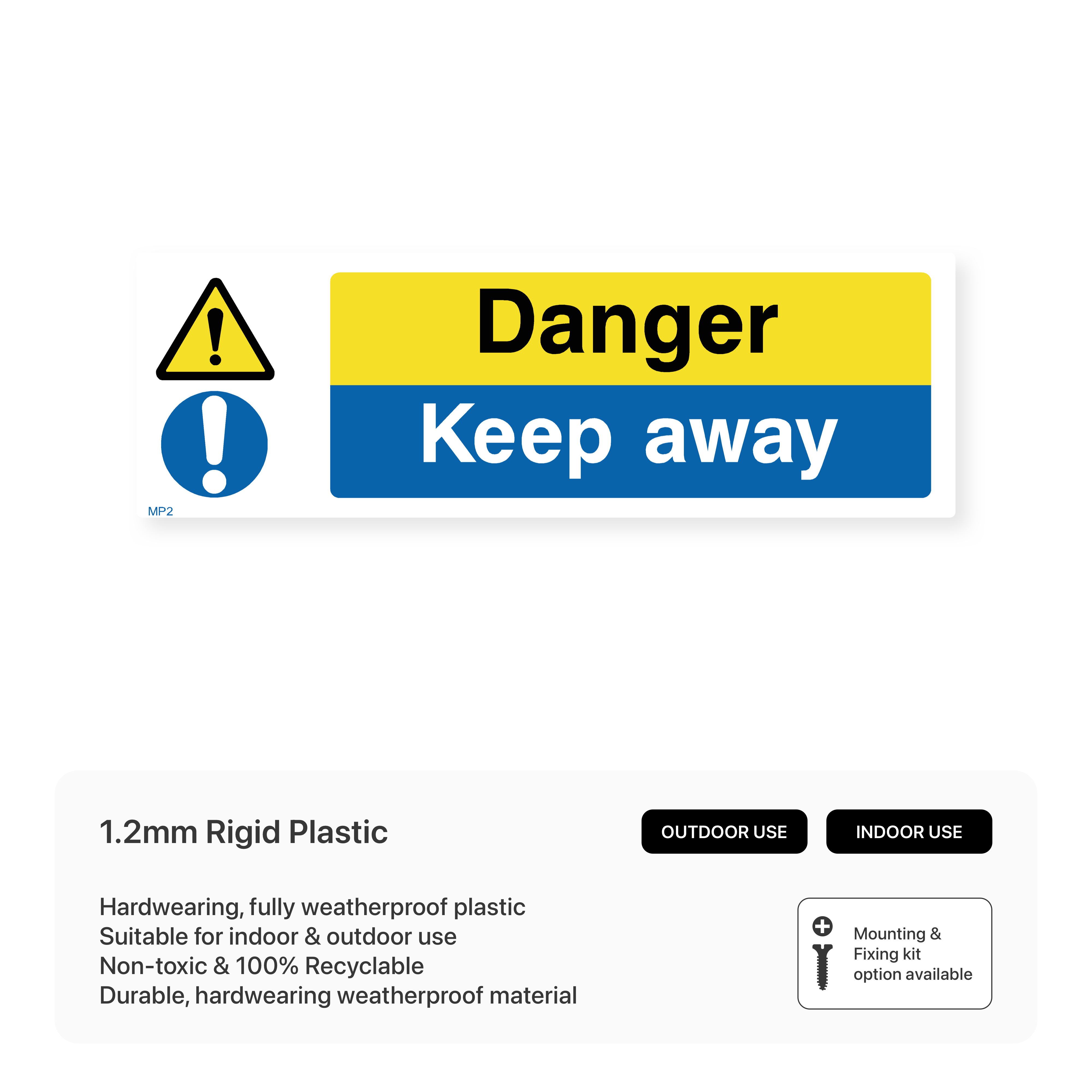Warn individuals to maintain a safe distance with this bold danger sign. Its "Keep Away" message effectively communicates potential hazards, preventing accidents and injuries. Ideal for high-voltage areas, dangerous machinery, and other hazardous zones.
