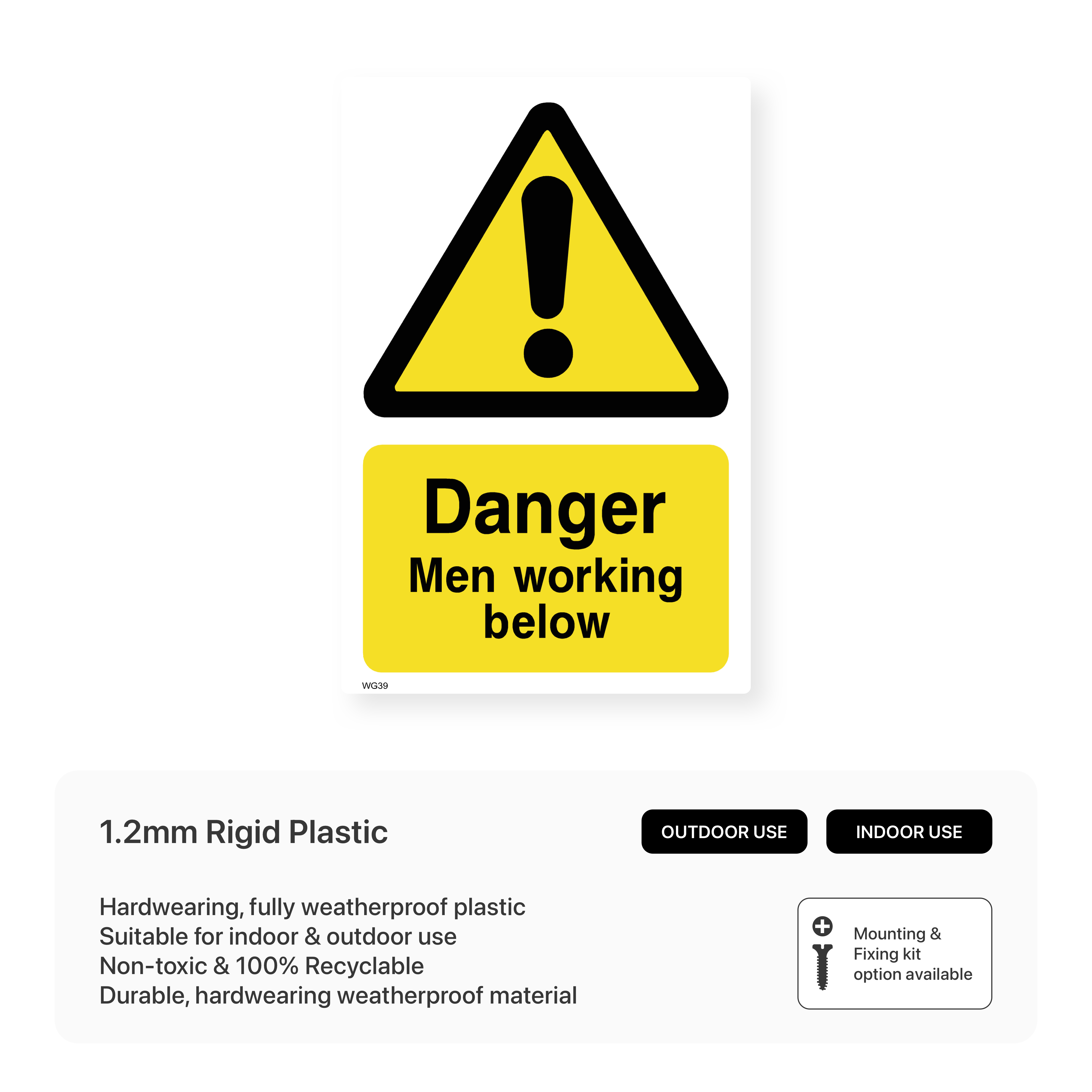Ensure safety in areas with work happening below with our "Danger - Men Working Below" sign. This sign alerts individuals to the potential for falling objects and other hazards, promoting caution and preventing accidents. Ideal for construction sites, scaffolding areas, and other elevated work zones.