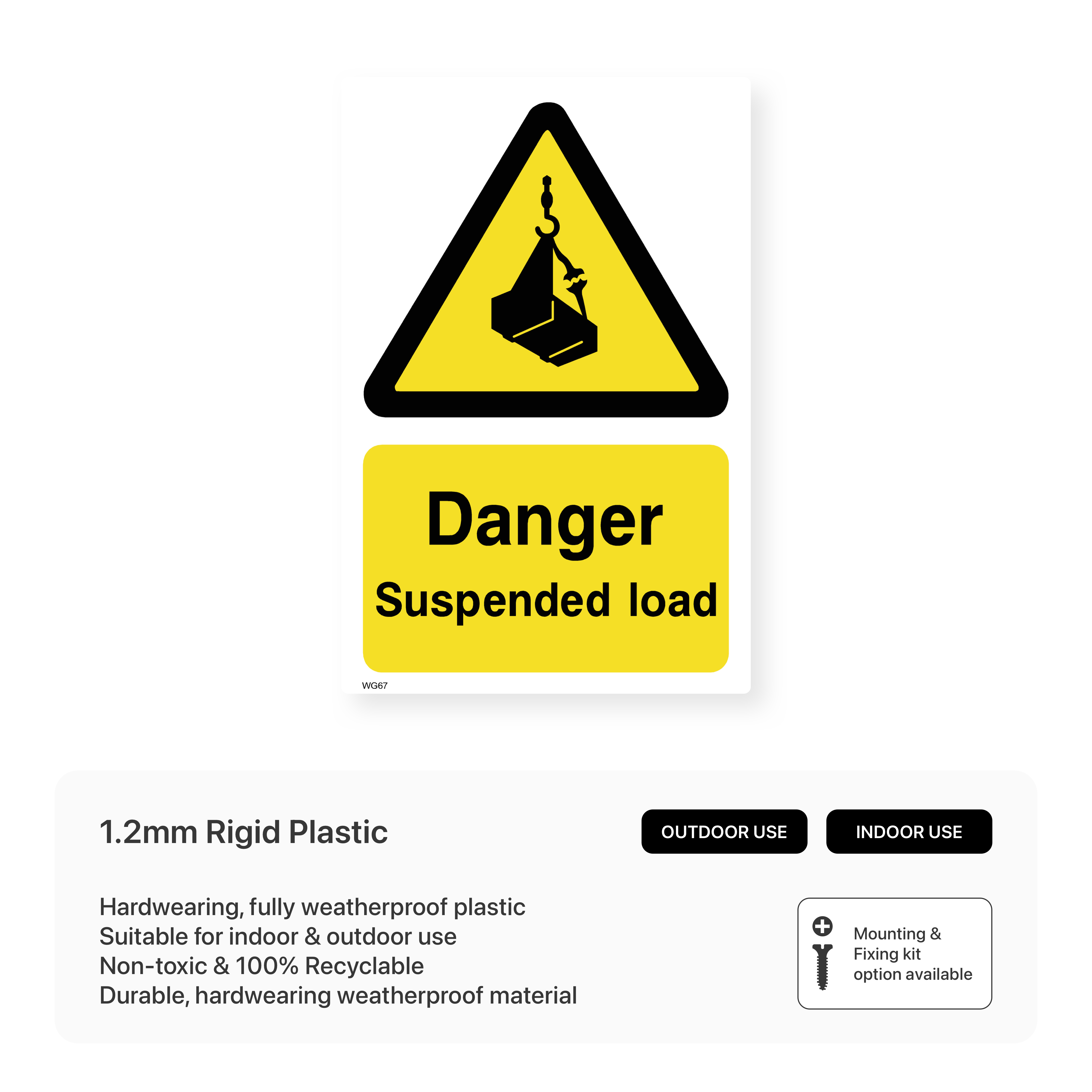 Enhance safety in areas with overhead lifting operations with our "Danger - Suspended Load" sign. This sign clearly warns of the potential hazards associated with suspended loads, such as falling objects and collisions. Help protect workers and prevent accidents with this essential safety sign.