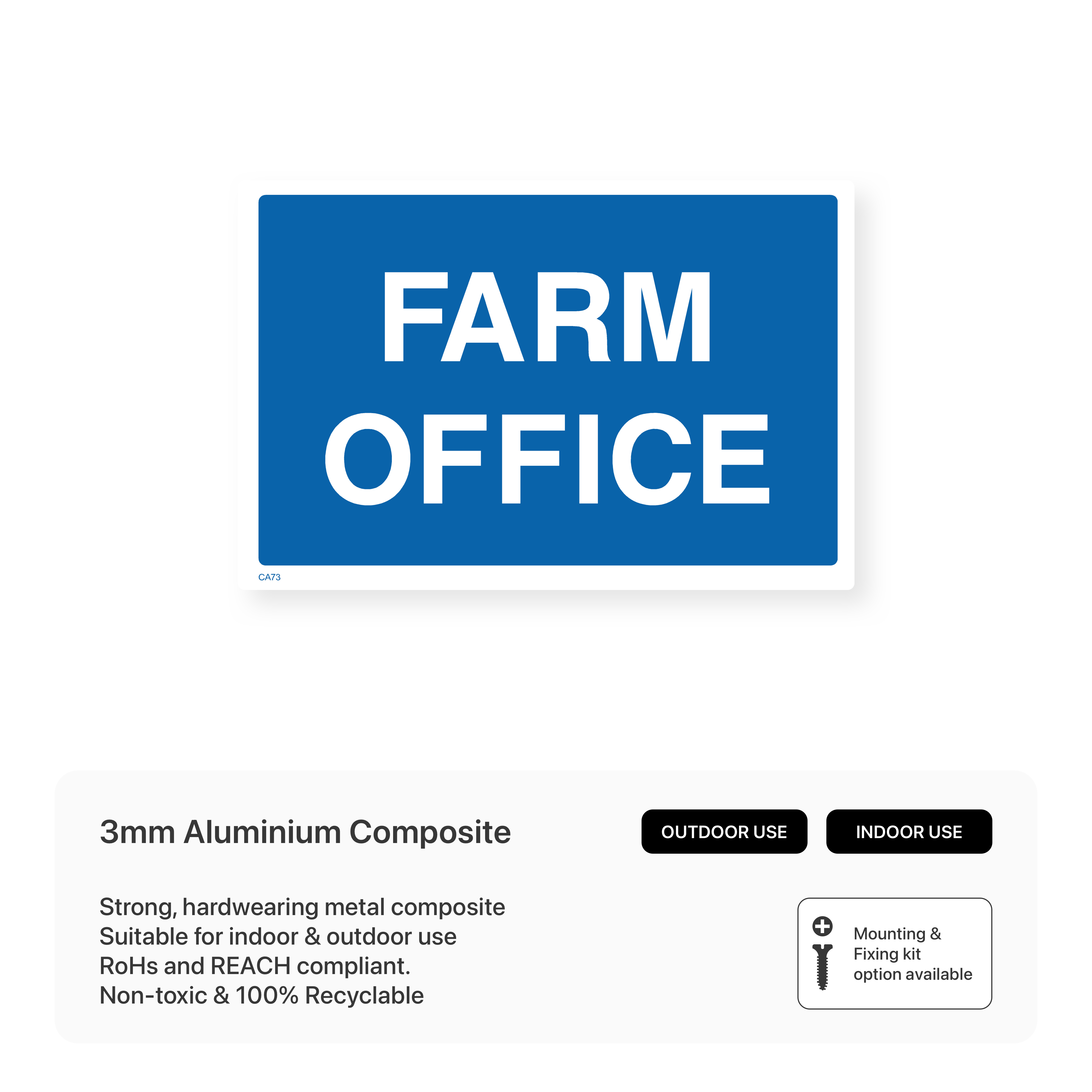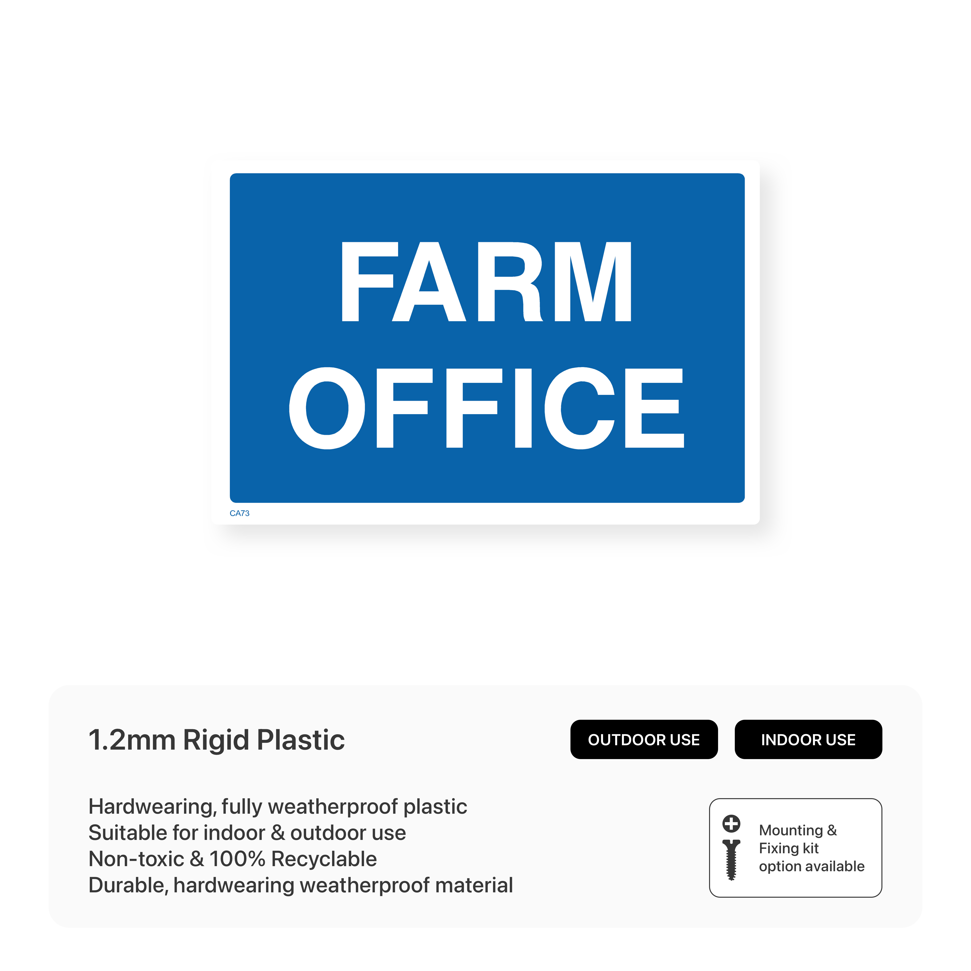Clearly identify your farm office with our "Farm office" sign. This sign helps visitors, delivery drivers, and staff easily locate the administrative centre of your agricultural operation.