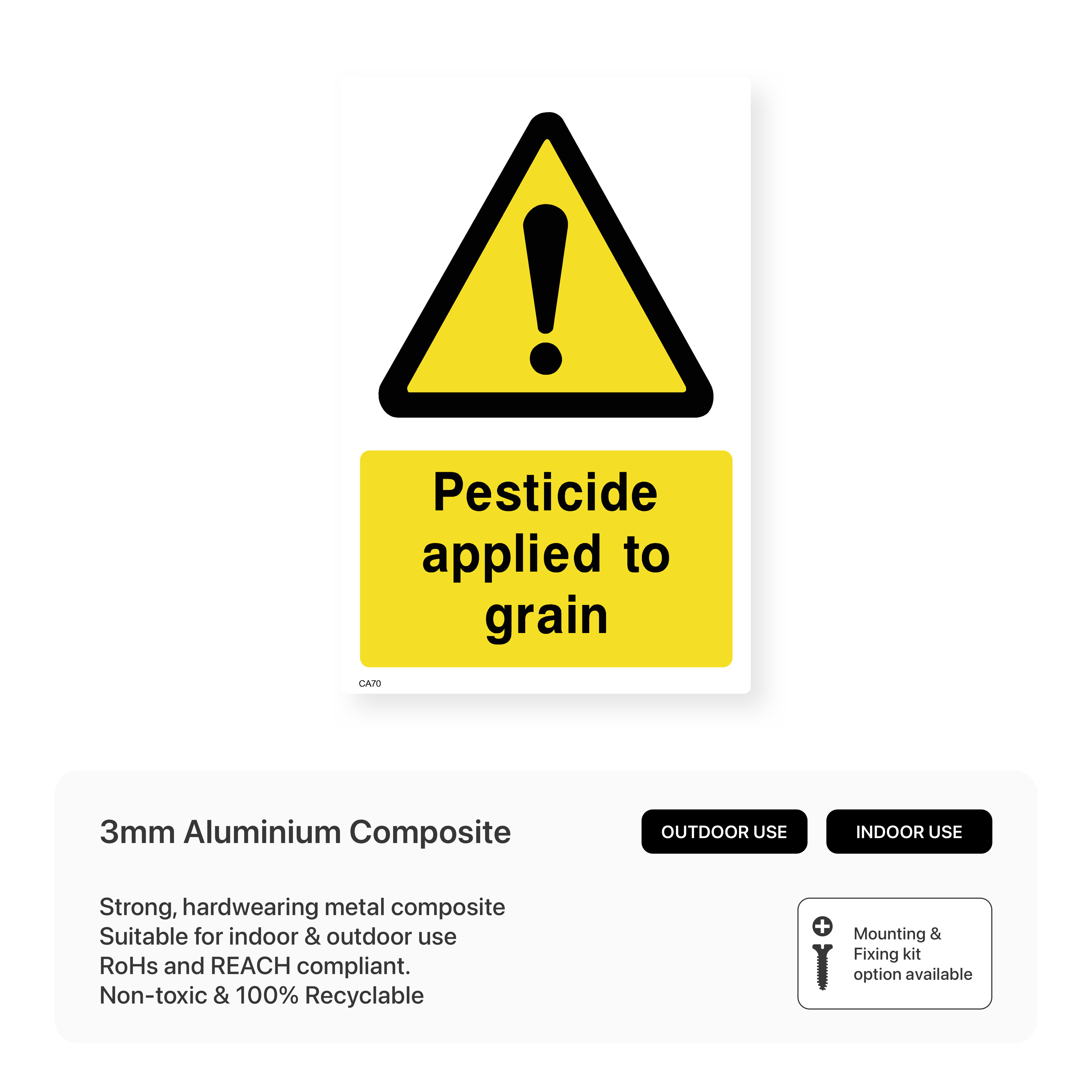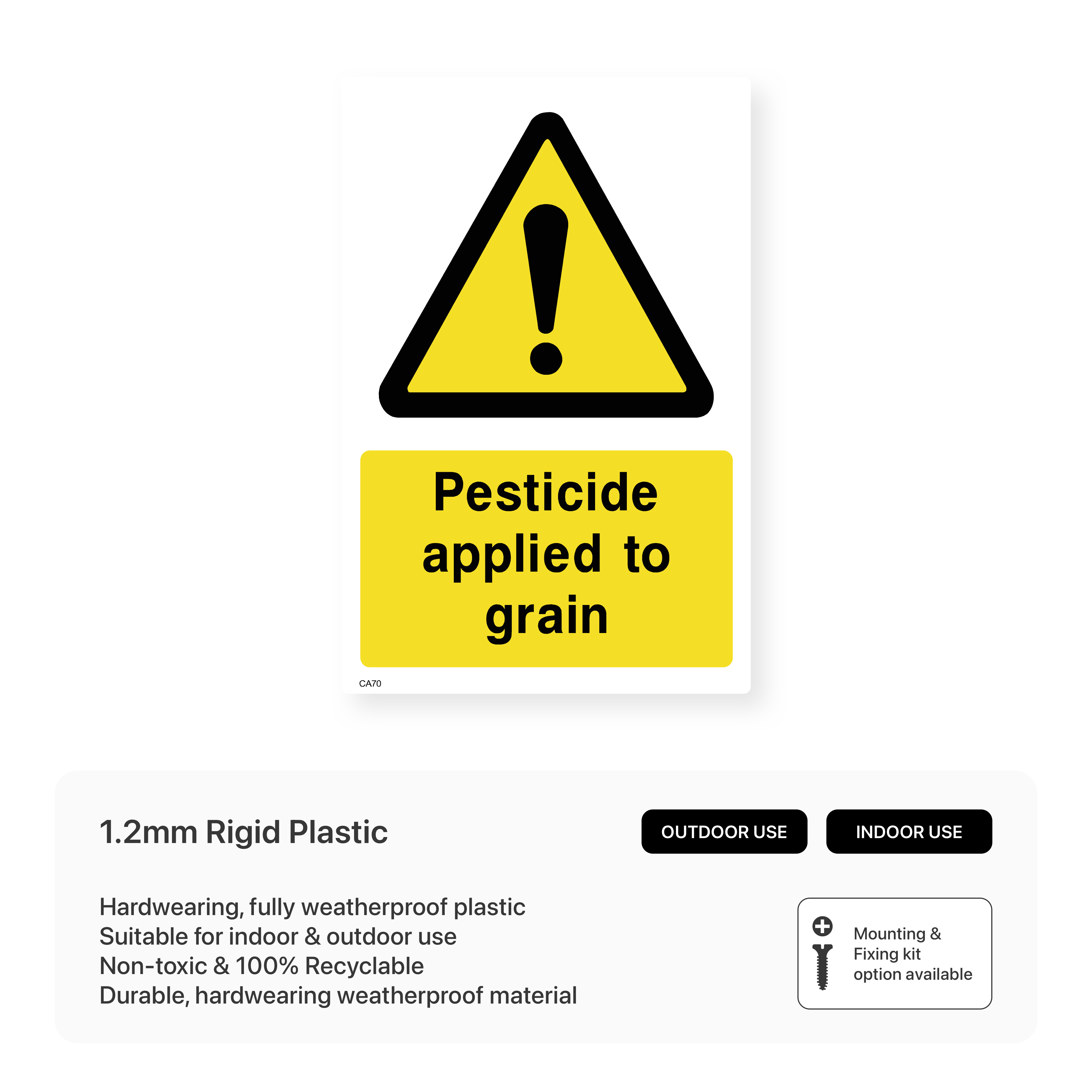 Warn individuals that grain has been treated with pesticides. Available in various sizes and materials, these signs help prevent accidental ingestion and ensure the safe handling and storage of treated grain.