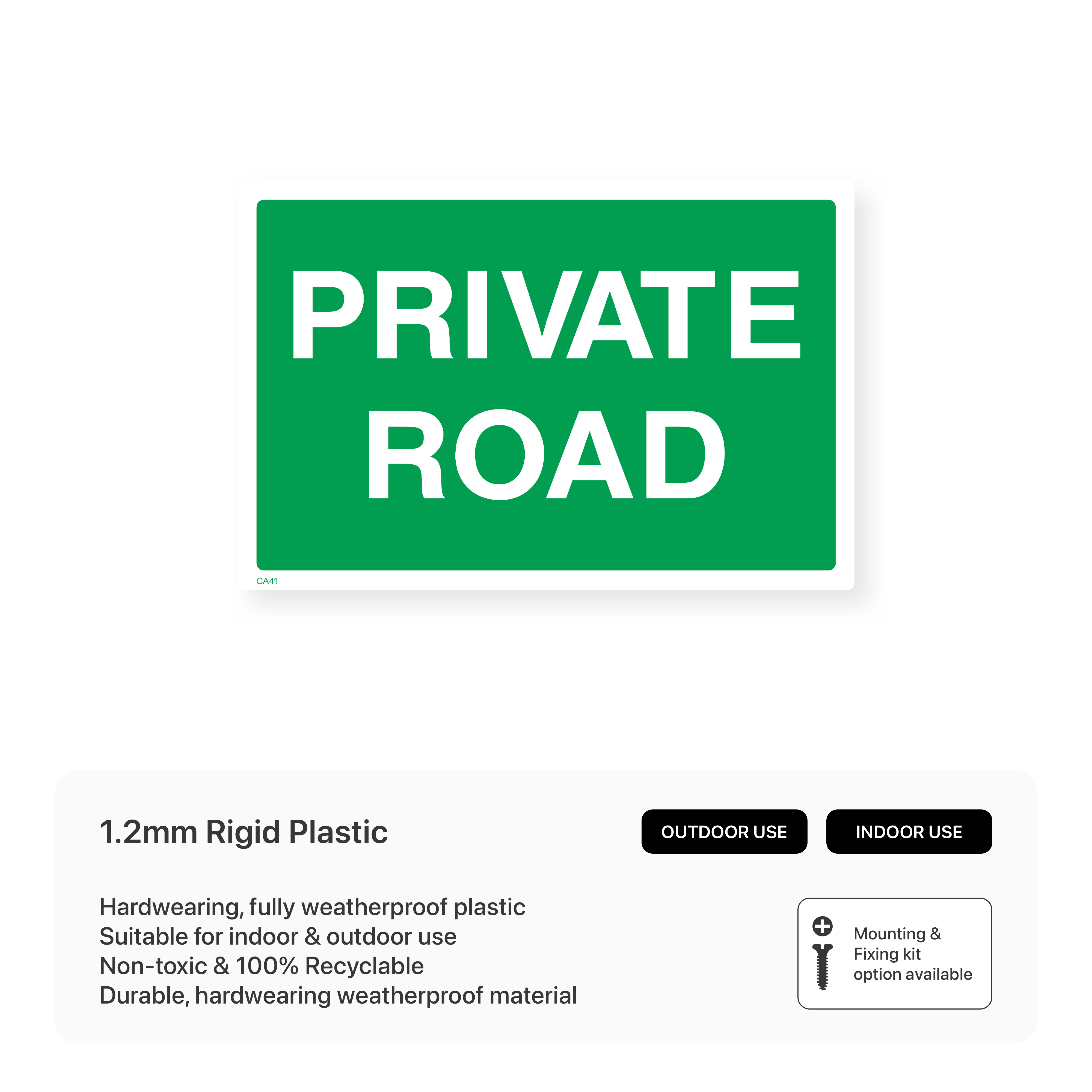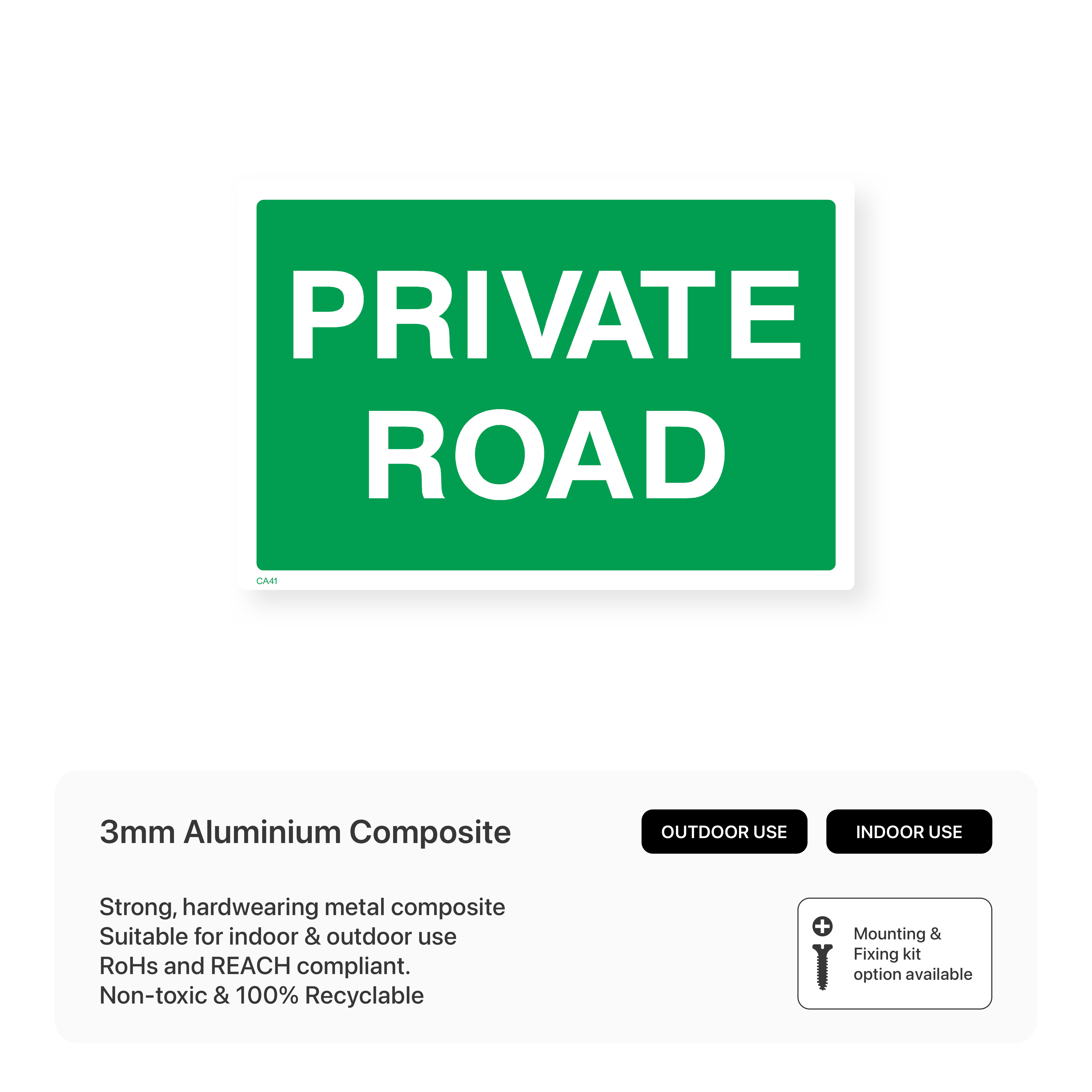 Clearly indicate that a road is private and not open to public access. Available in various sizes and materials, these signs help prevent unauthorized use and ensure the security of your property.