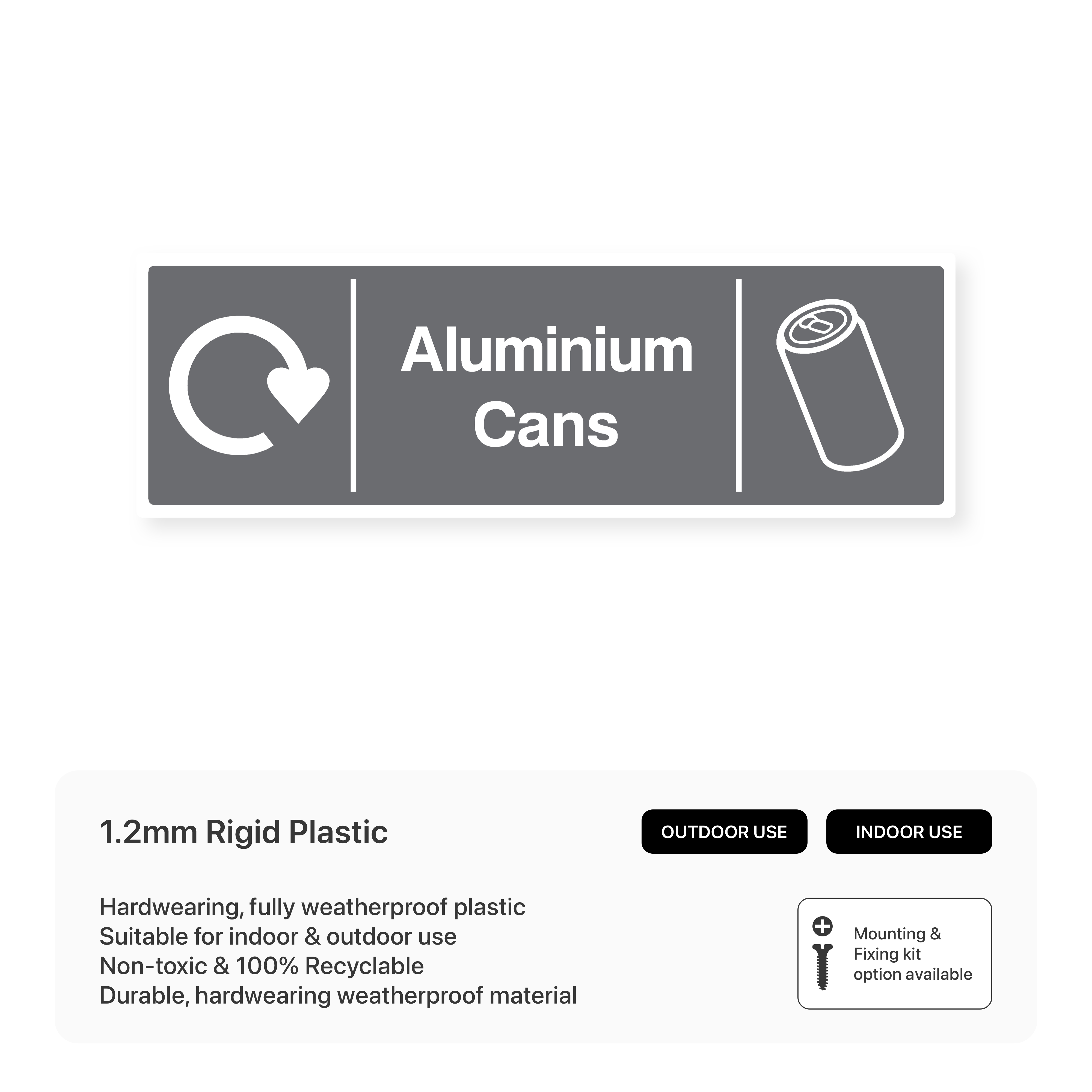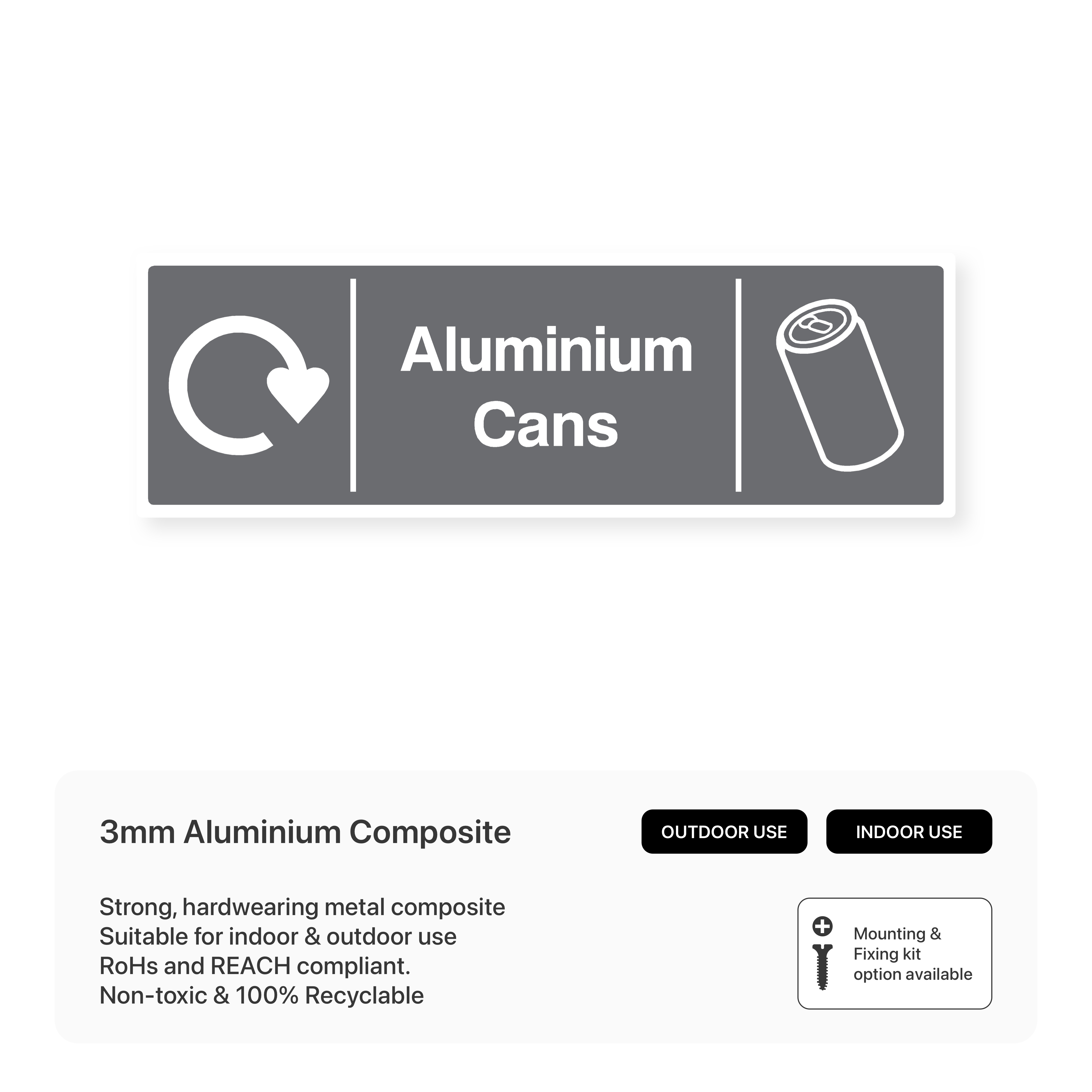 Aluminium Cans - Recycling: Encourage recycling of aluminium cans with this informative sign. Help reduce waste and conserve resources by directing aluminium cans to the correct recycling bins.