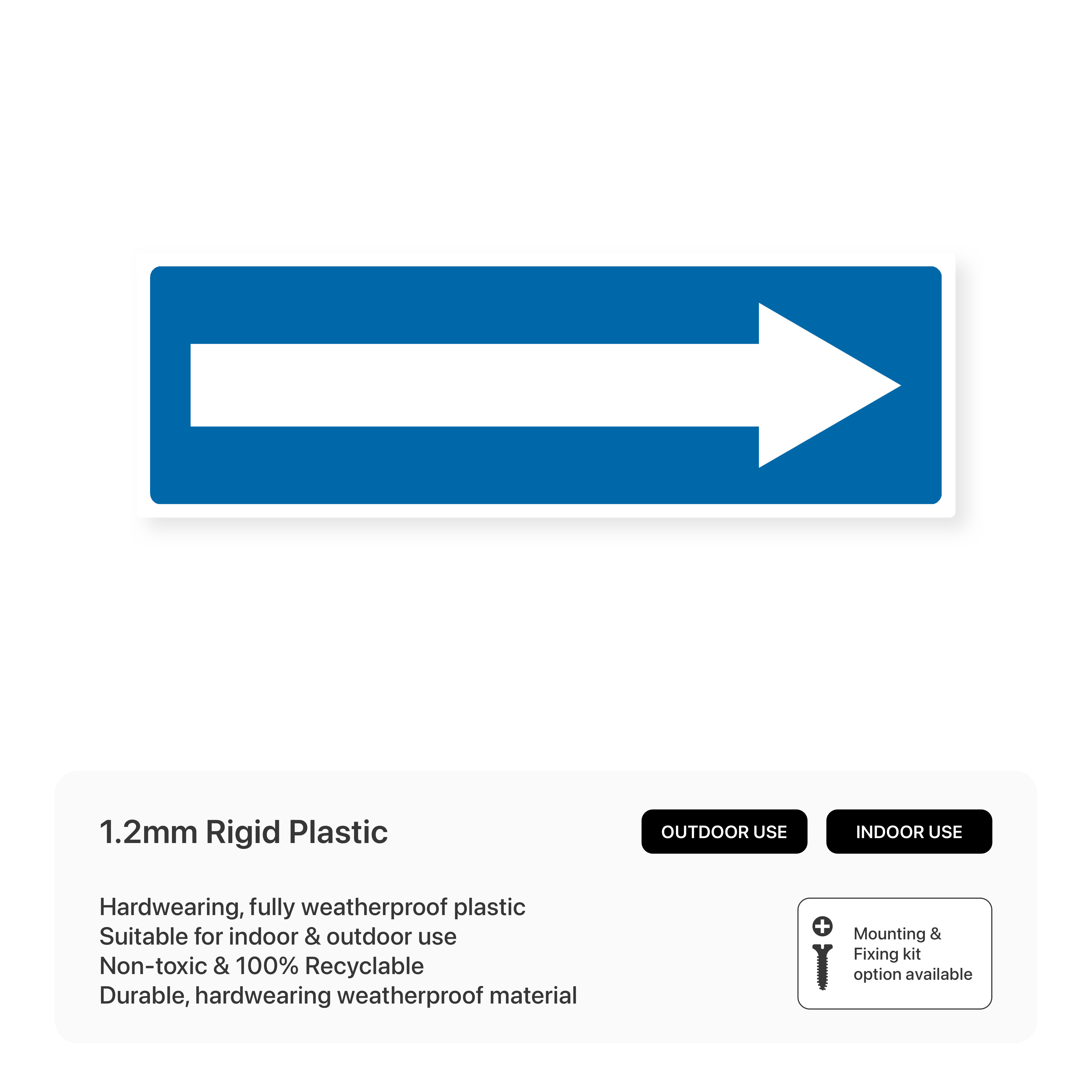 Guide people in any direction with our versatile "Arrow" signs. Available with arrows pointing in various directions, these signs are ideal for wayfinding and directional signage.