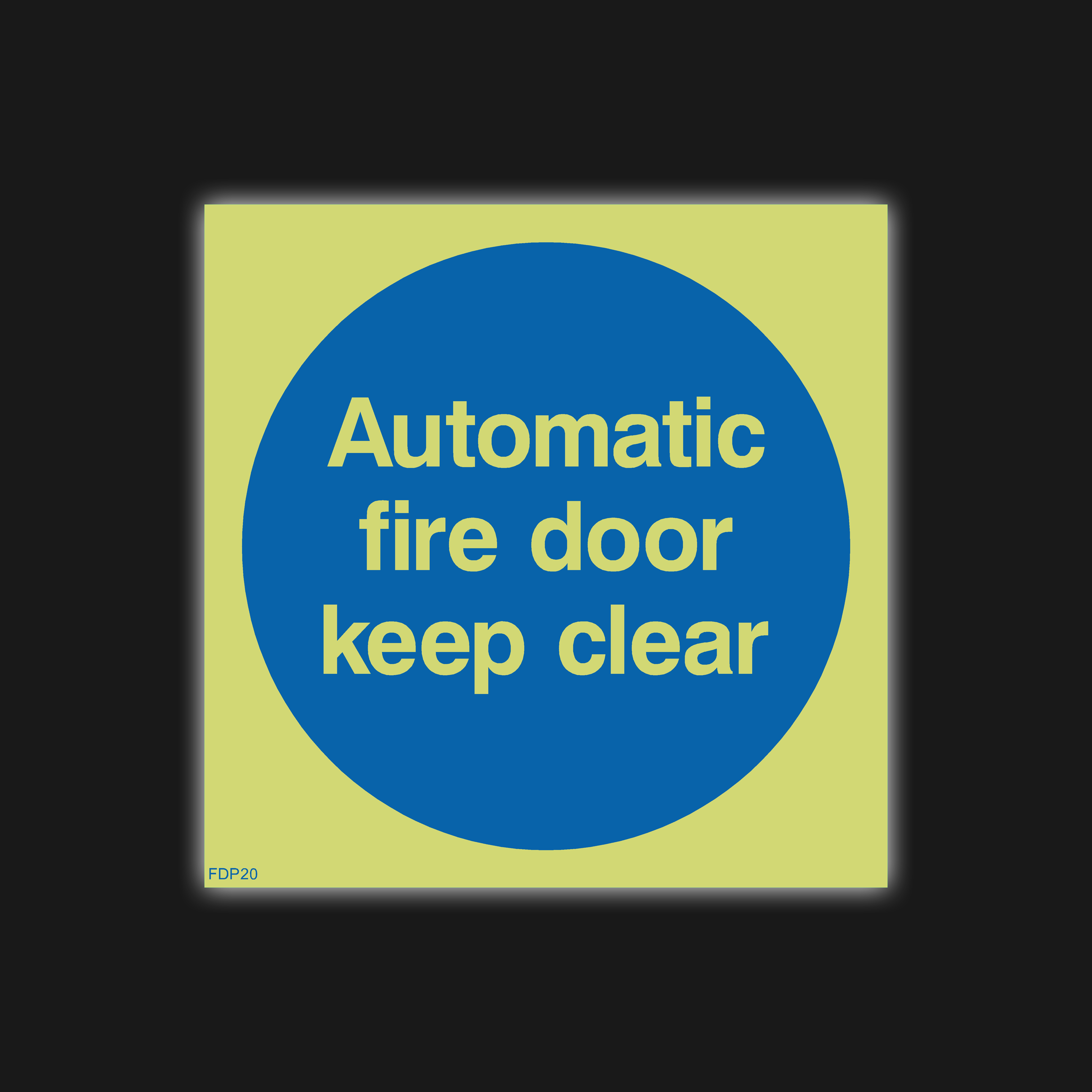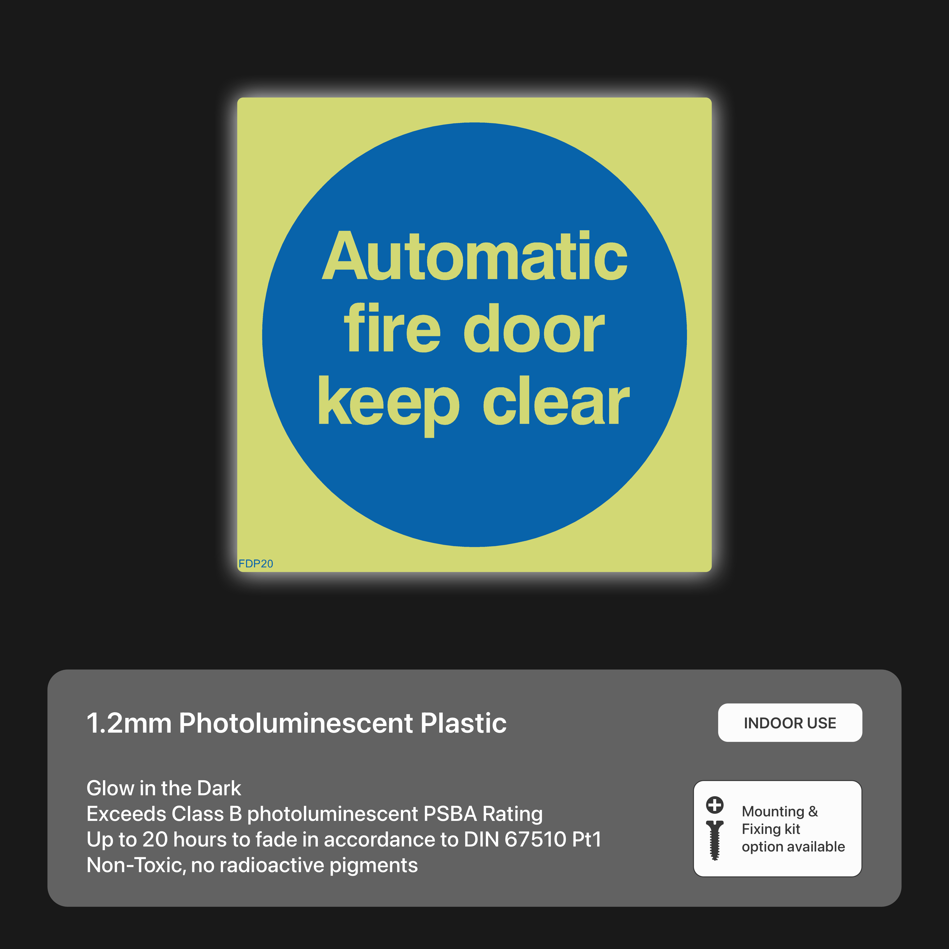 Ensure fire safety with our "Automatic fire door keep clear" sign. This sign clearly communicates the operation of automatic fire doors, reminding individuals to keep the area clear and ensuring the door closes properly to prevent the spread of fire and smoke.