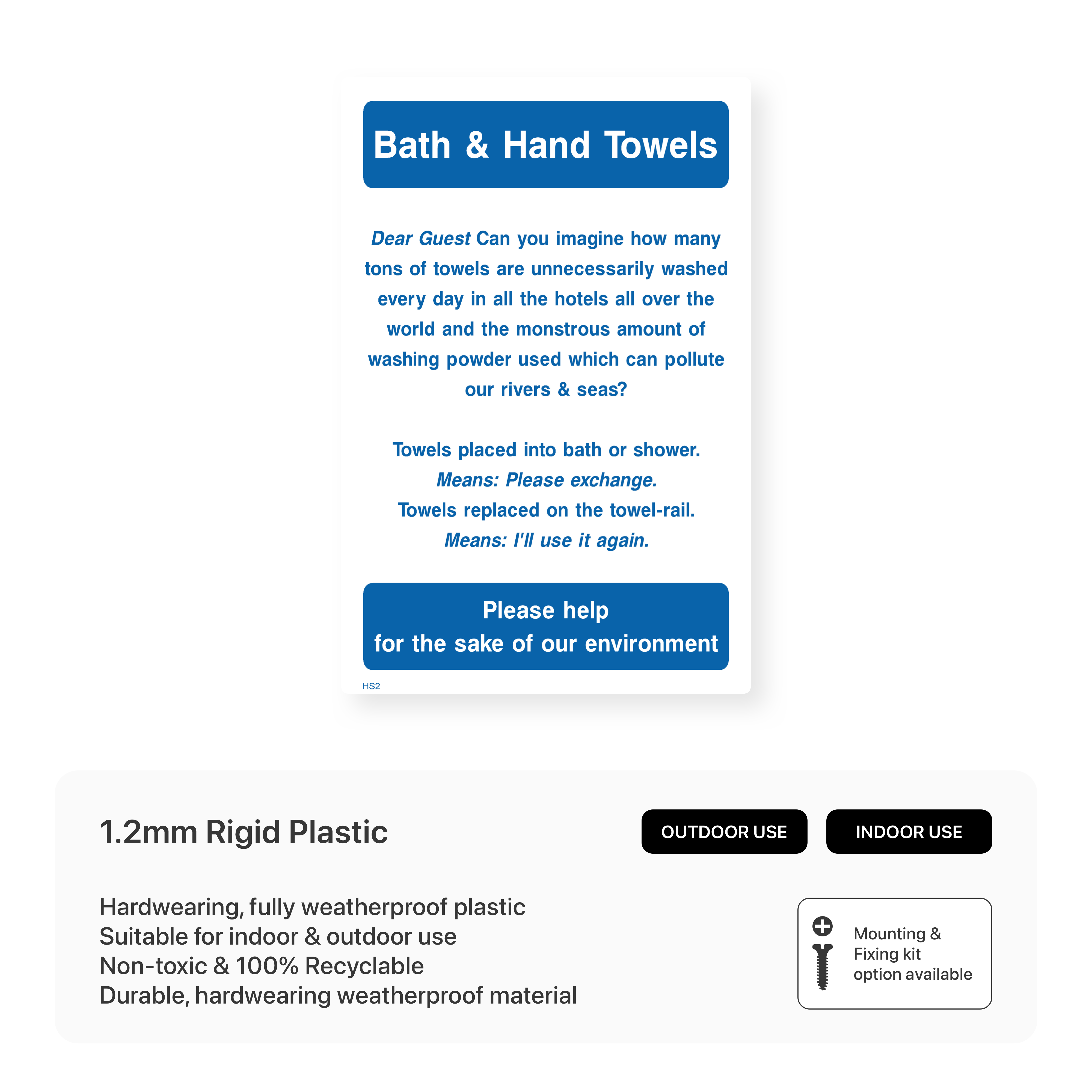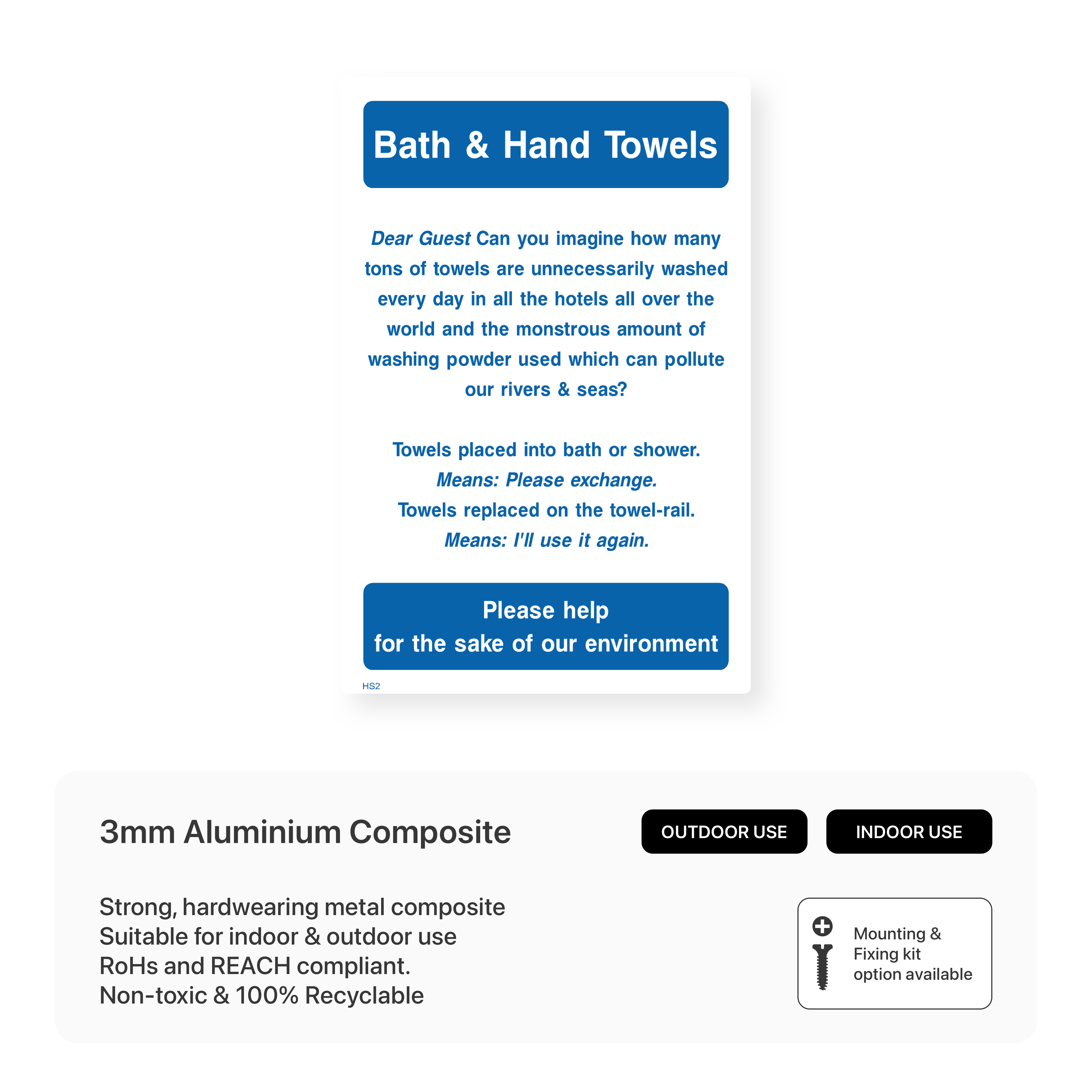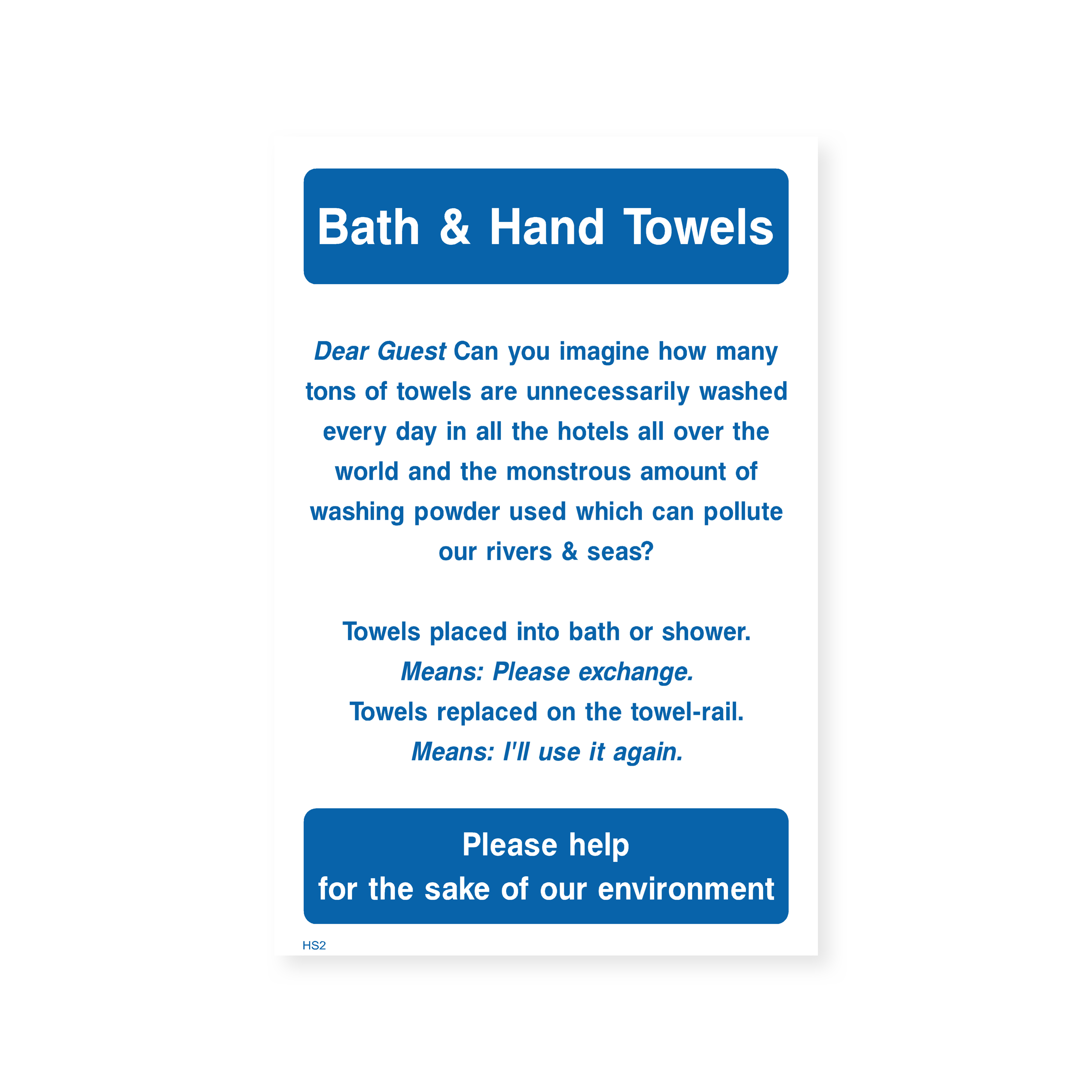 Clearly identify the location of bath and hand towels with this sign. Help guests easily find the amenities they need for a comfortable stay.